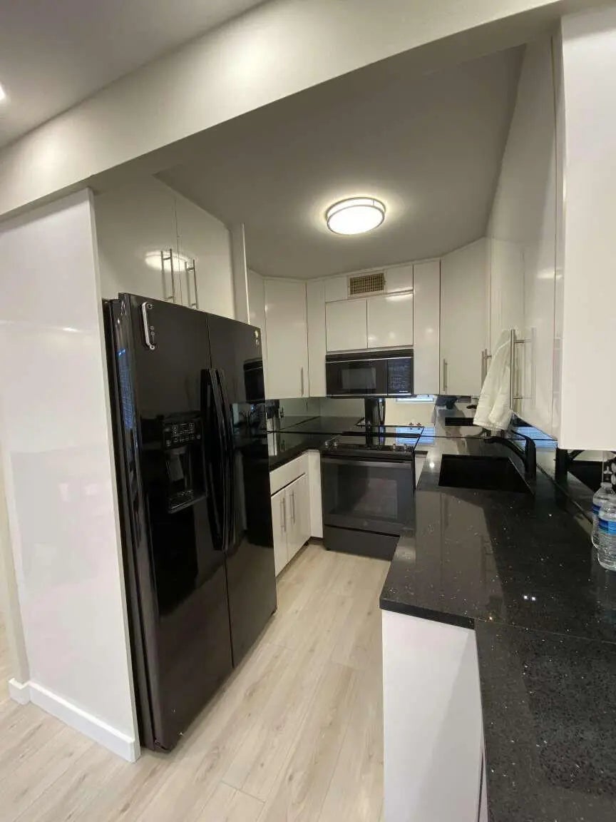 Renovated 2-bedroom condo in Century Village Boca Raton (55+ gated community). Beautiful lake view. Elevator building. Annual rental with an option to renew. Bright and spacious 2-bedroom, 1.5-bath condo recently renovated with high-quality updates, including new ceilings with modern spotlights, new flooring (high quility water-proved laminate, made in the USA), updated kitchen and bathrooms, and fresh paint throughout. Enjoy an enclosed balcony with a relaxing lake view. Located in a well-maintained elevator building on the 4th floor. Community amenities include clubhouse, pools, fitness center, theater, tennis courts, and free community buses to nearby shopping. Annual lease only with option to renew. No smoking, including medical marijuana. No pets. 55+ community. Association approval required. Easy to show. Quick approval process. Move-in ready. Well-maintained building in a quiet and friendly community.