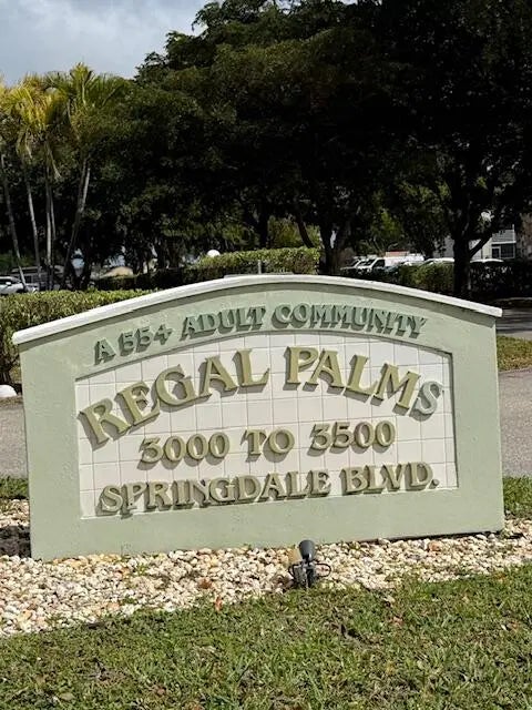 Great Value in Palm Springs - Minutes from West Palm Beach! Discover comfortable and convenient living in the welcoming 55+ community of Regal Palms, ideally located in the town of Palm Springs just west of Interstate 95 and only minutes from Palm Beach International Airport in nearby West Palm Beach. This bright second-floor condominium in the Eaton Building offers a comfortable 1-bedroom, 1½-bath layout with ceramic tile flooring throughout and an open floor plan where the living room, dining area, and kitchen flow together for easy living and entertaining. A convenient half bath for guests complements the spacious primary bedroom with a private full bath. Enjoy relaxing mornings or evenings on the enclosed screened patio just off the bedroom, overlooking the beautifully main courtyard.