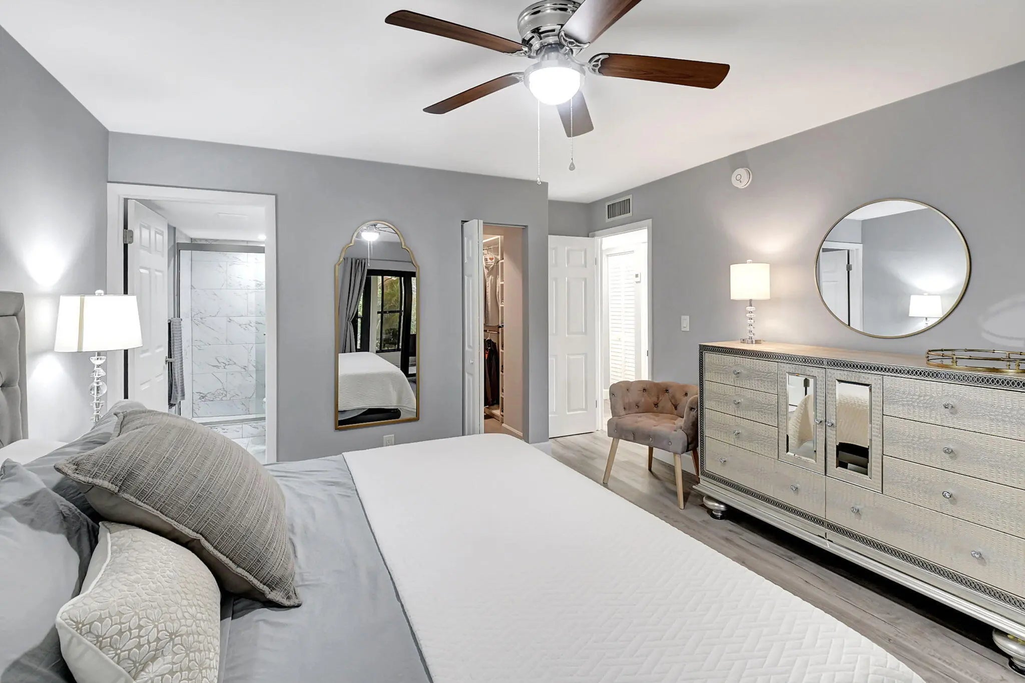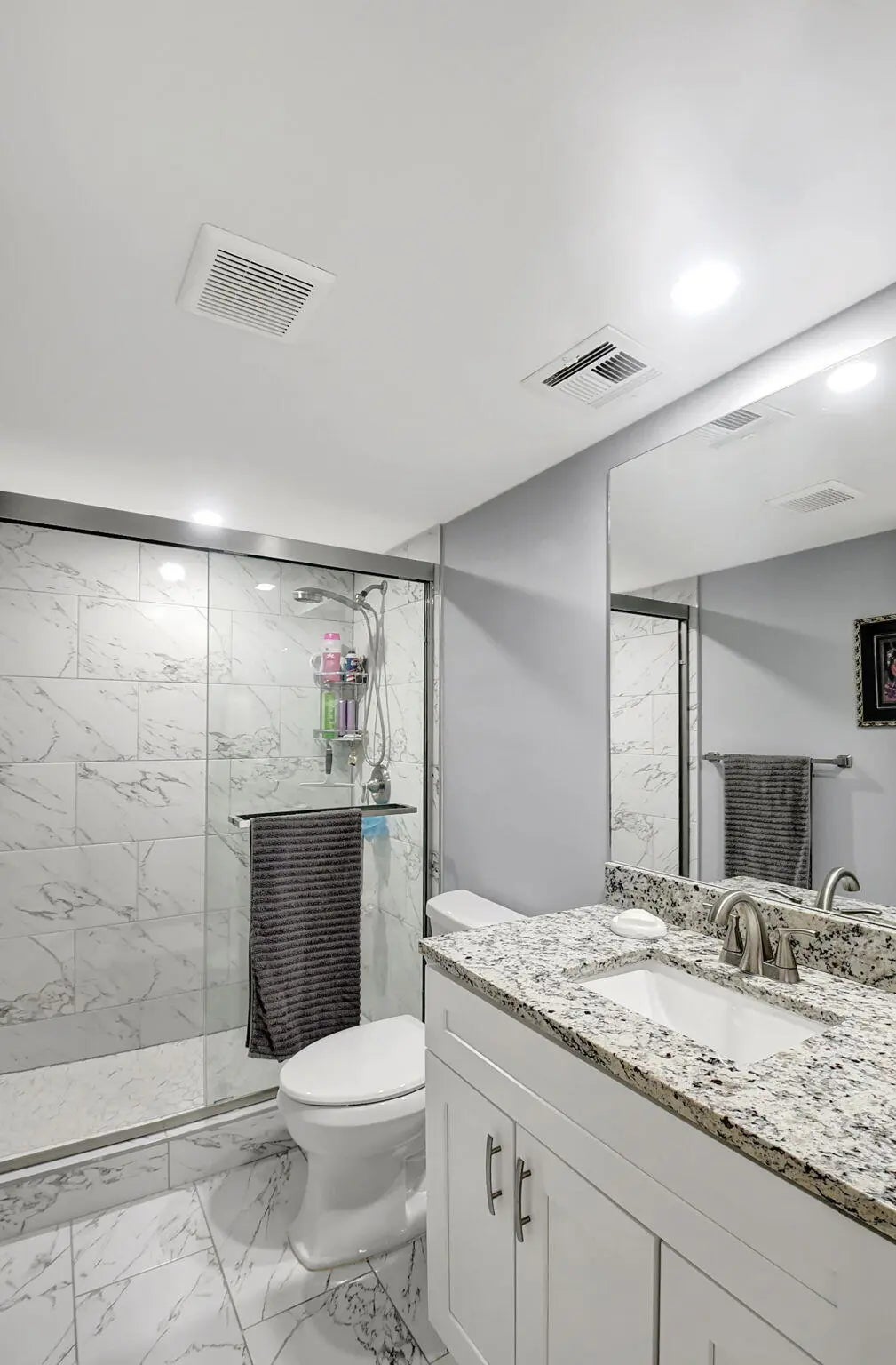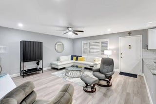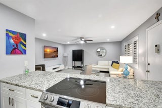 Welcome to your fully upgraded dream condo in Delray Beach! Best in Community! This impeccably remodeled 2/2 unit boasts modern upgrades, including impact glass, a brand-new AC, & a hot water heater. Revel in the serene lake view from your family room while enjoying meals prepared in the chic kitchen, complete w/stainless steel appliances, white shaker cabinets, & a tiled backsplash. Luxurious touches abound w/new faux wood luxury vinyl flooring throughout, complemented by lighted ceiling fans & fresh paint. The bathrooms exude elegance w/new tiles, shaker cabinets, & granite countertops, offering the pristine retreat you've always craved. Both bedrooms feature walk-in closets & sliding glass doors leading to your private screened & sliding glass-enclosed patio with a laundry/storage room. Plus, revel in peace of mind w/ a new Square D electrical panel & faux wood ceramic flooring. Enhance your space further w/ 4.5-inch shutters by Simply Shutters, boasting a lifetime warranty, & 2 spacious walk-in custom closets expertly designed by Closets by Design, also backed by a lifetime warranty. Don't miss out on this desirable Delray location! Must see top model!