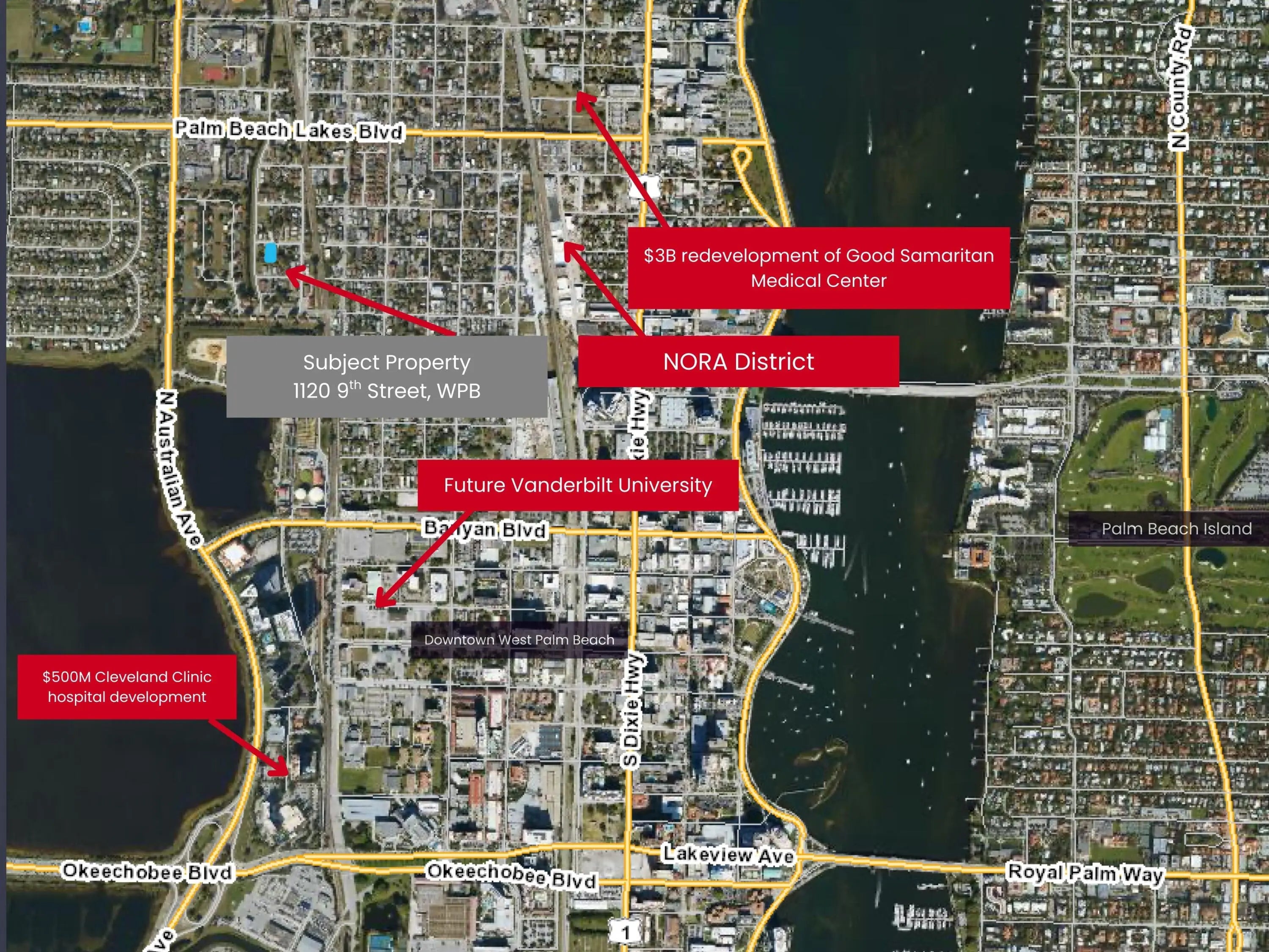 Exceptional build-ready 6,250 sq ft lot (50×125 ft) in the rapidly appreciating Northwest District. Includes fully approved 1,350 sq ft 3BR/2BA main residence PLANS & PERMITS, plus a two-story 800 sq ft 2BR/1.5BA ADU with Class B Special Use Permit from the Board of Zoning, allowing flexible rental or multigenerational living. Site plan: 3 parking spaces, room for a plunge pool, and three mature palm trees along the property boundary. City water/sewer, county impact fees waived for main residence. No liens; taxes current. Walking distance to planned Vanderbilt University, Train Station, NORA District, Good Samaritan Medical Center redevelopment, planned Cleveland Clinic hospital, Palm Beach Island & Intracoastal. A rare opportunity for builders, investors, or first-time homeowners.