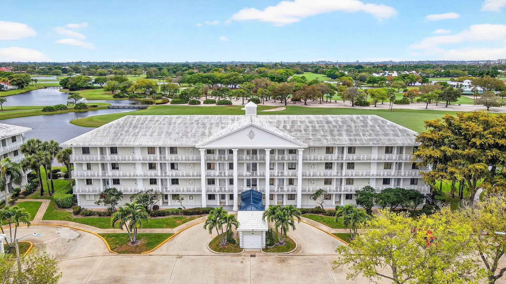 Welcome home to this exceptional premium corner penthouse in highly desirable Whitehall, Building 19, offering breathtaking panoramic views of the lake and golf course from both private balconies. This light filled residence combines comfort, space, and an unbeatable setting. Featuring 2 spacious bedrooms and 2 full bathrooms, this condo boasts an inviting eat in kitchen, a generous laundry room with abundant storage, and an open, airy layout perfect for relaxed living or entertaining. The corner penthouse location provides added privacy and sweeping views rarely available. Enjoy peace of mind with major upgrades already completed, including a new water heater (2025) and A/C system (2023). Monthly condo fees conveniently include water and cable, adding exceptional value. Whitehall is known for its beautifully maintained grounds and prime location, close to shopping, dining, and major roadways. Per association requirements a minimum 650 credit score, no pets. This is a rare opportunity to own a top floor, corner penthouse with stunning views in one of Whitehall's most sought after buildings. Schedule your showing today—this one will not last!