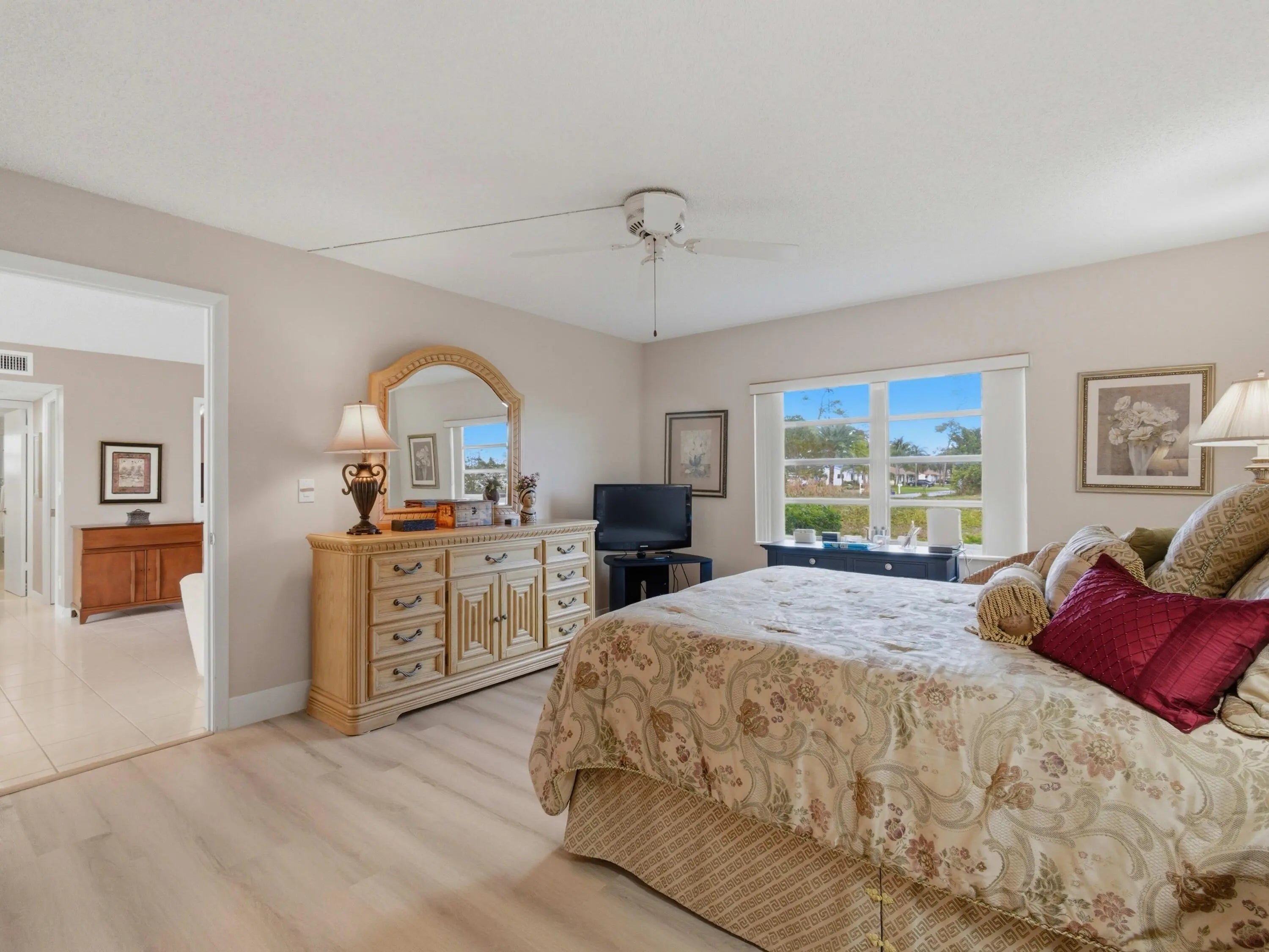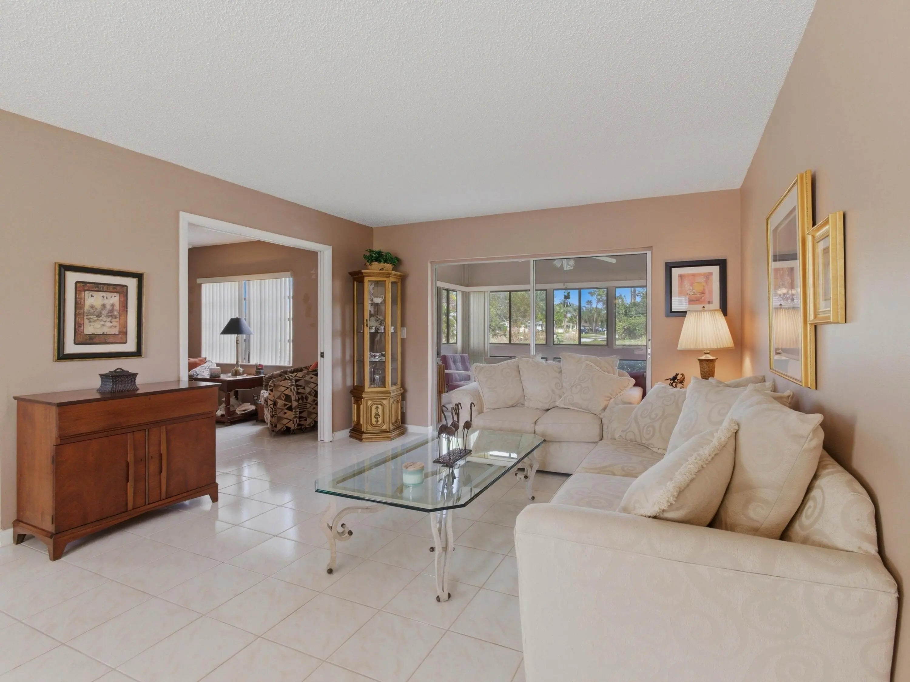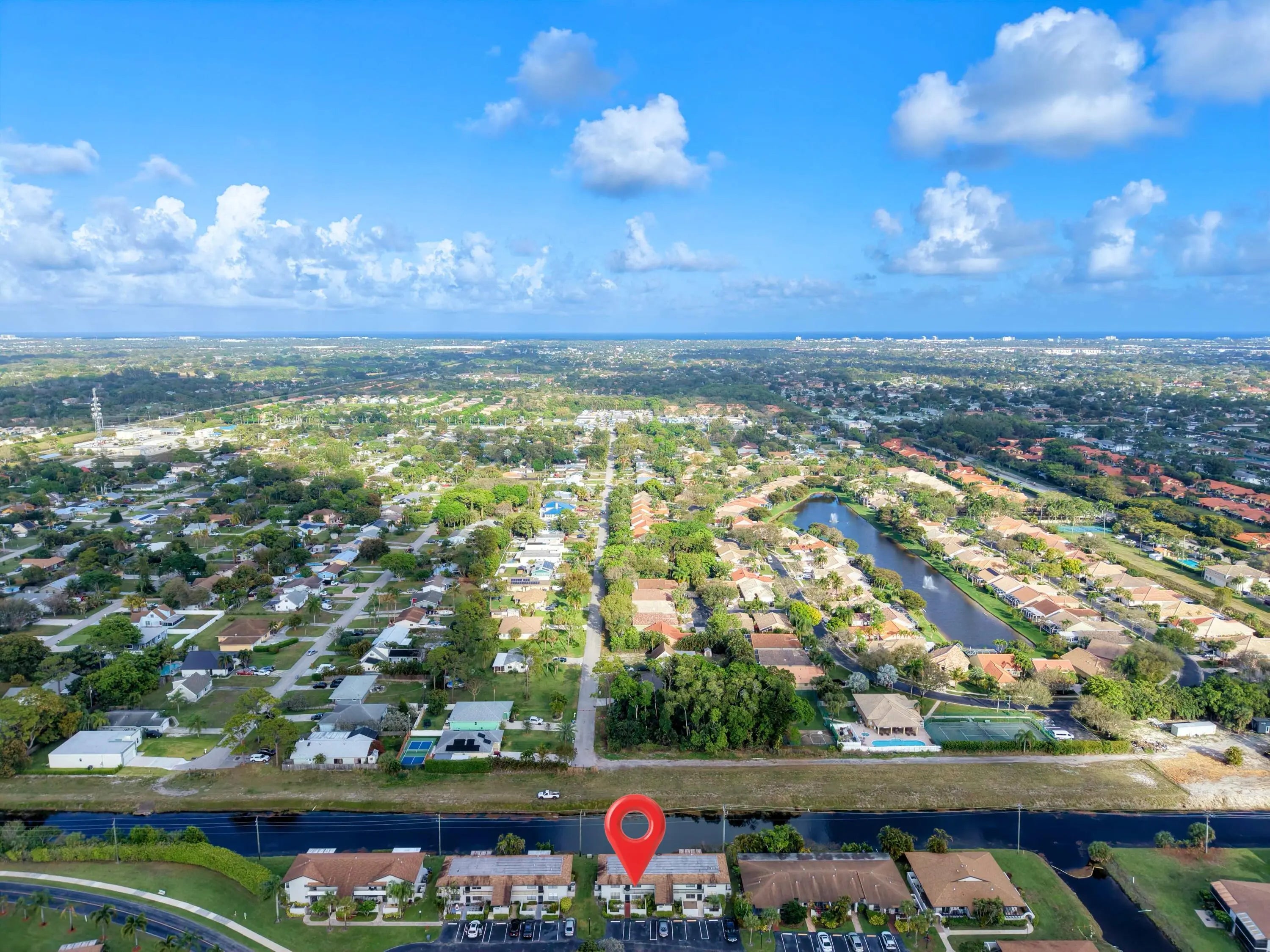 This well-maintained 2-bedroom, 2-bathroom home is conveniently located on the first floor of a four-unit building, offering both privacy and a peaceful canal view from the rear. The patio has been converted into a bright sunroom, expanding the living space and providing a comfortable area to enjoy year-round. Neutral ceramic tile flooring runs throughout the home, with beautiful laminate flooring in the primary bedroom, which also features a linen closet and a spacious walk-in closet for ample storage. The updated kitchen showcases granite countertops, wood cabinetry, stainless steel appliances, and a pantry for added convenience. Residents enjoy brand-new resort-style amenities, including a clubhouse with card rooms, billiards, an arts and crafts studio, a café, fitness center, tennis and pickleball courts, social room, swimming pool, lap pool, sauna, and a wide variety of social clubs and activities. The community is ideally located just minutes from Downtown Delray Beach and the beautiful Delray Beach coastline, as well as nearby golf courses, parks, theaters, cultural centers, shopping, and major airports.