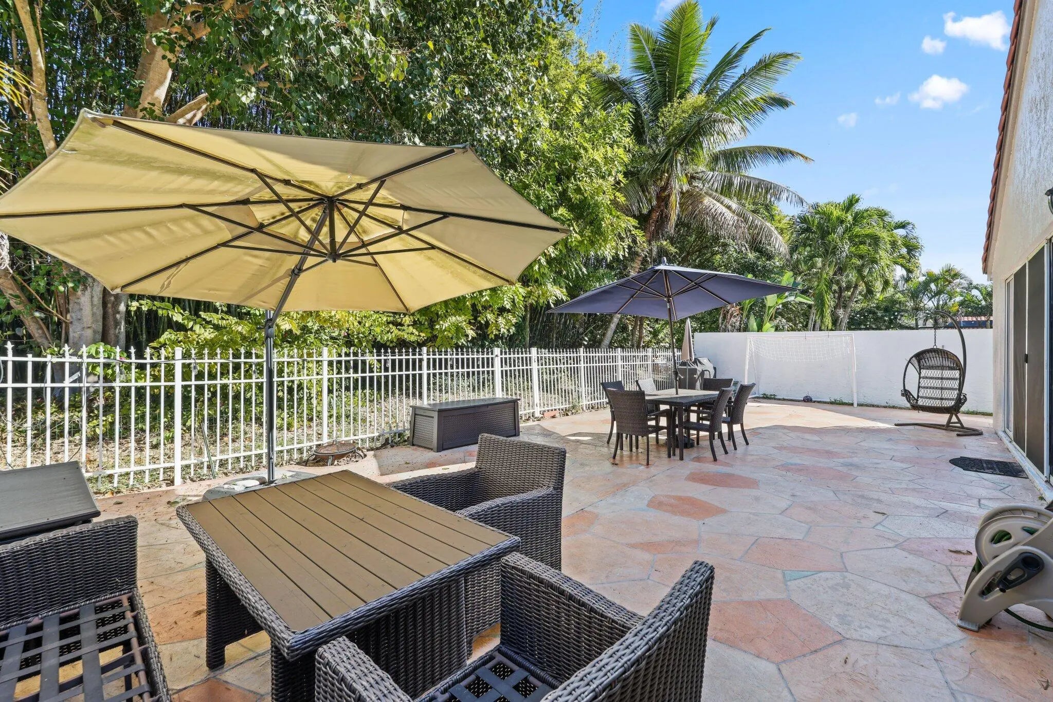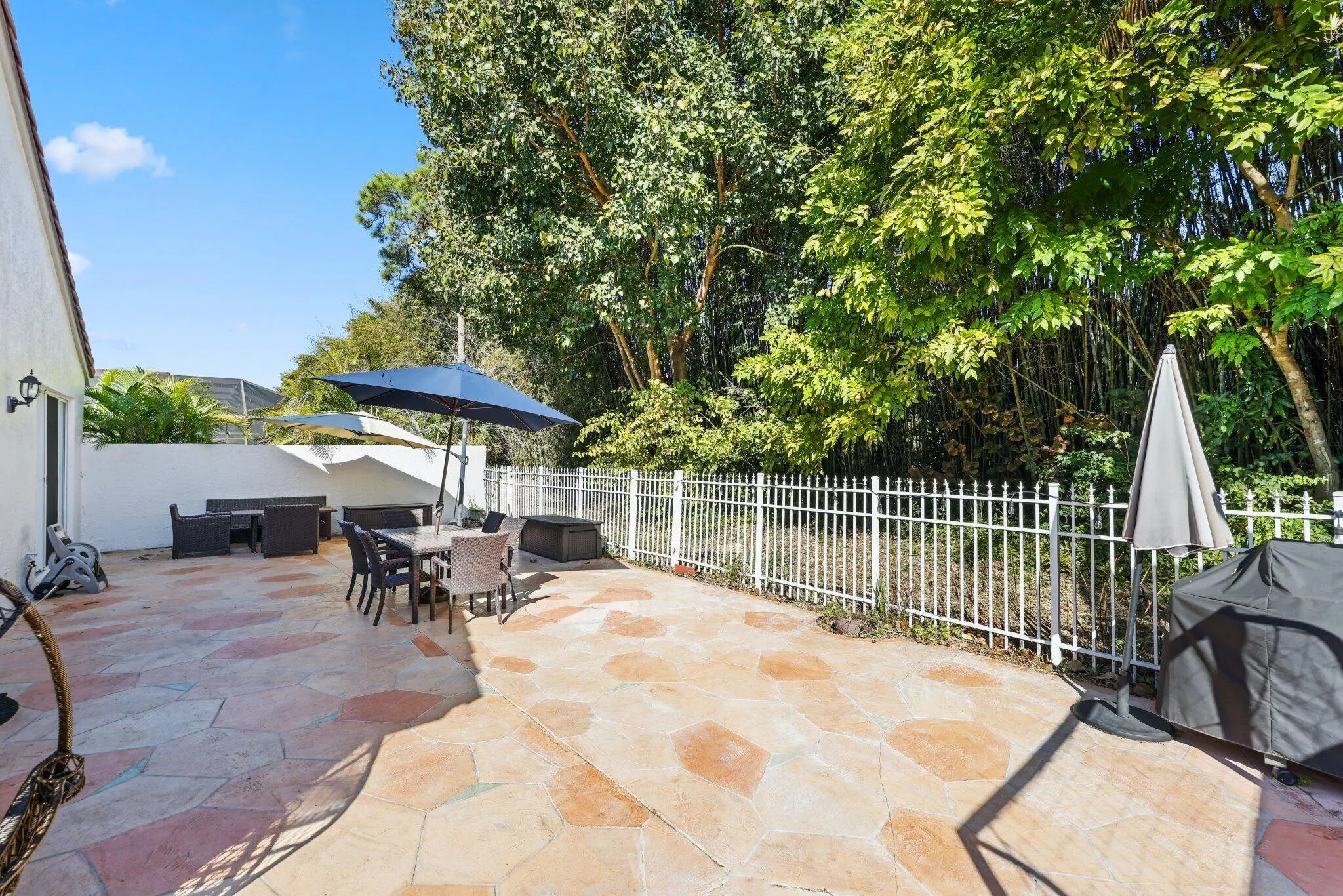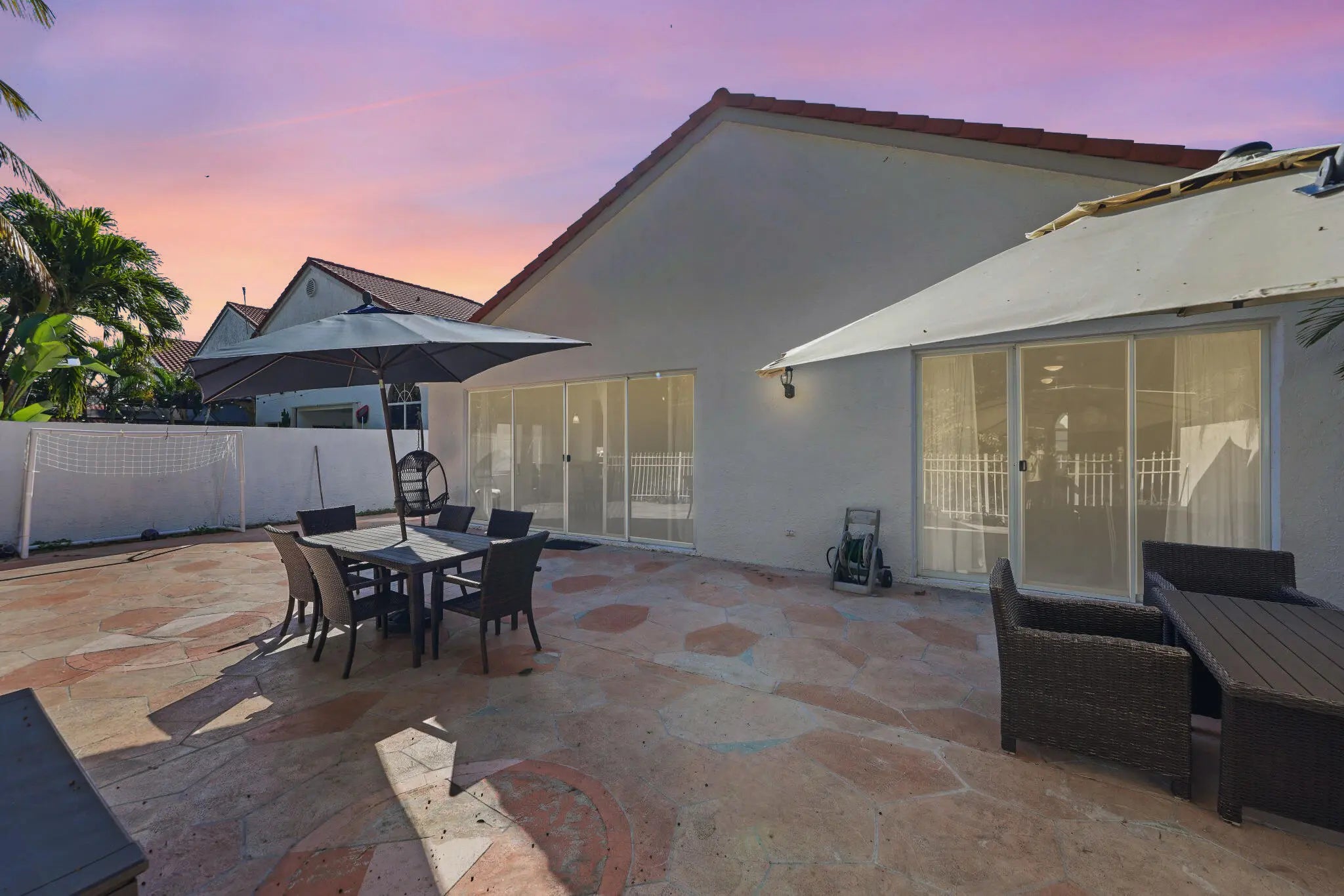 Beautiful 5-bedroom, 2.5-bath home in the gated Ventura section of Mission Bay in West Boca Raton offering approx. 2,395 sq ft with an open floor plan and dramatic vaulted ceilings. The home features a first-level king-size primary bedroom with en-suite bath, dual sinks, and walk-in shower—ideal for multigenerational living or guest privacy. Kitchen with granite counters, wood cabinets, and stainless appliances. Major updates include impact windows & doors (2019), HVAC (2021), and Mediterranean clay tile roof (2009). HOA maintains front lawn/exterior and includes internet, basic cable, and Mission Bay Club access with heated pool, spa, fitness center, sauna, steam room, pickleball, tennis, basketball, soccer fields, game room, and playground.
