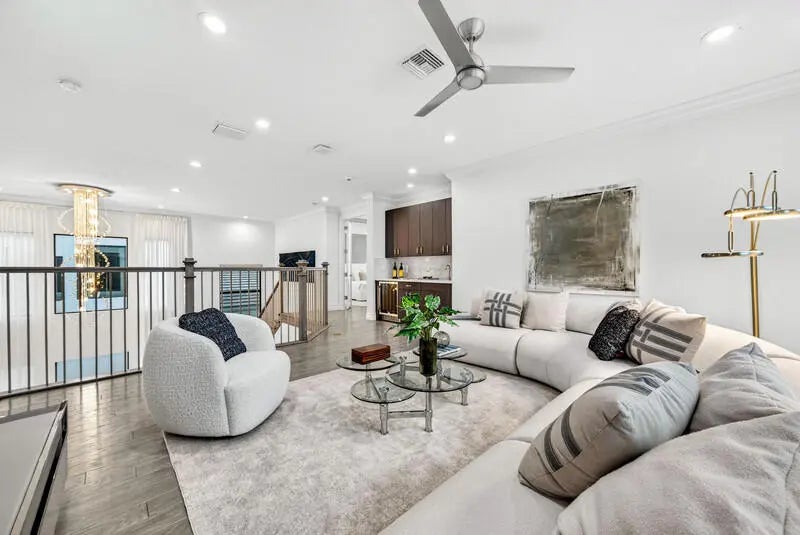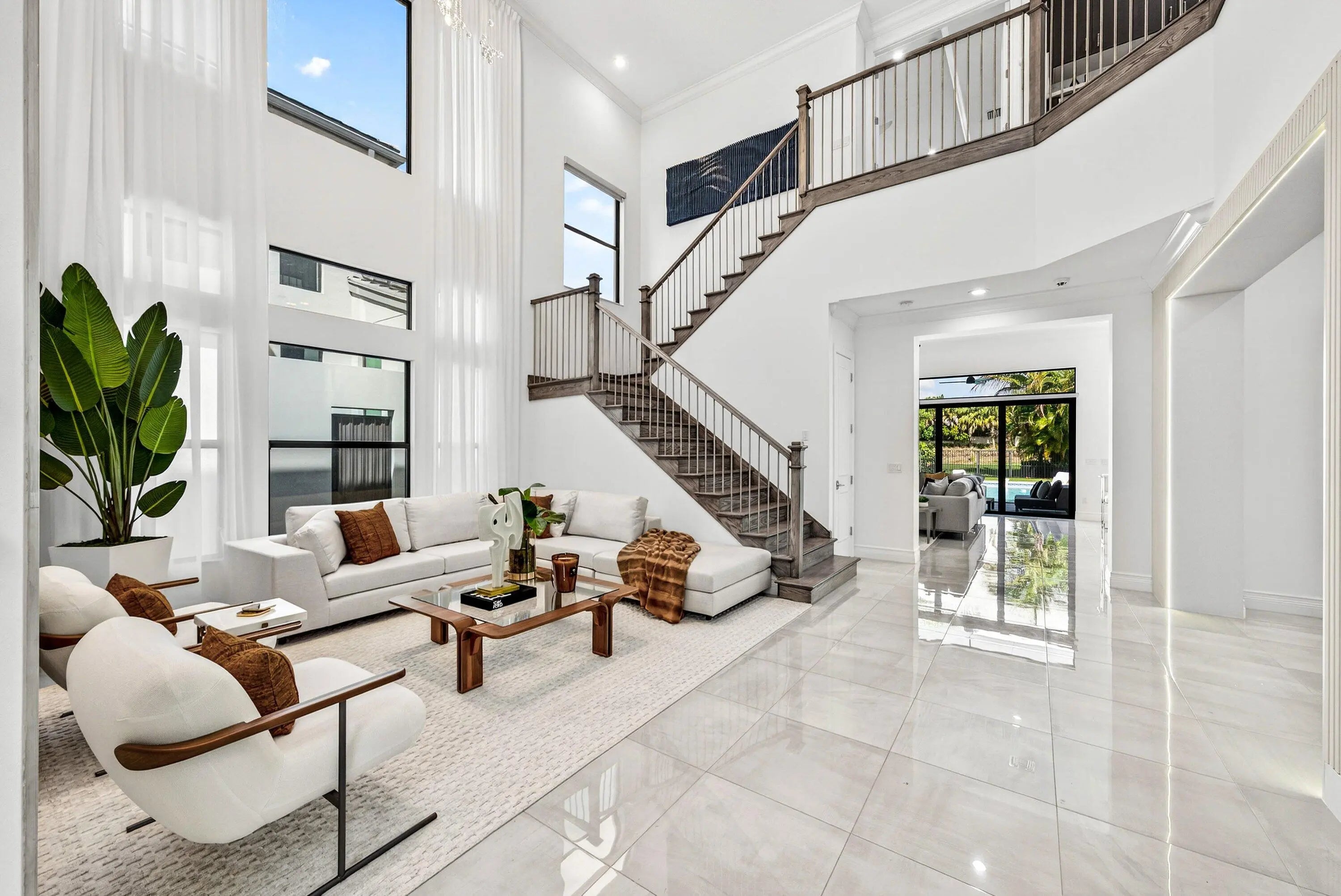Welcome to a truly turnkey, designer finished masterpiece newly reimagined by MICHAEL GRAY INTERIORS in the prestigious Boca Bridges. Set on an expansive lot with no rear neighbors, this Sanibel model offers over 5,330 sq ft of refined living with 5 ensuite bedrooms and 6.5 baths. Elegant interiors showcase a striking porcelain accent wall, upgraded chef's kitchen, custom millwork, Google smart home integration, Lutron lighting, and Sonos sound throughout. The private backyard features a saltwater pool and serene outdoor living. Boca Bridges offers resort-style living with no club dues, including a 27,000 sq ft clubhouse, gourmet restaurant, resort pools, state of the art fitness center, tennis, pickleball, indoor and outdoor basketball, splash park, and more.