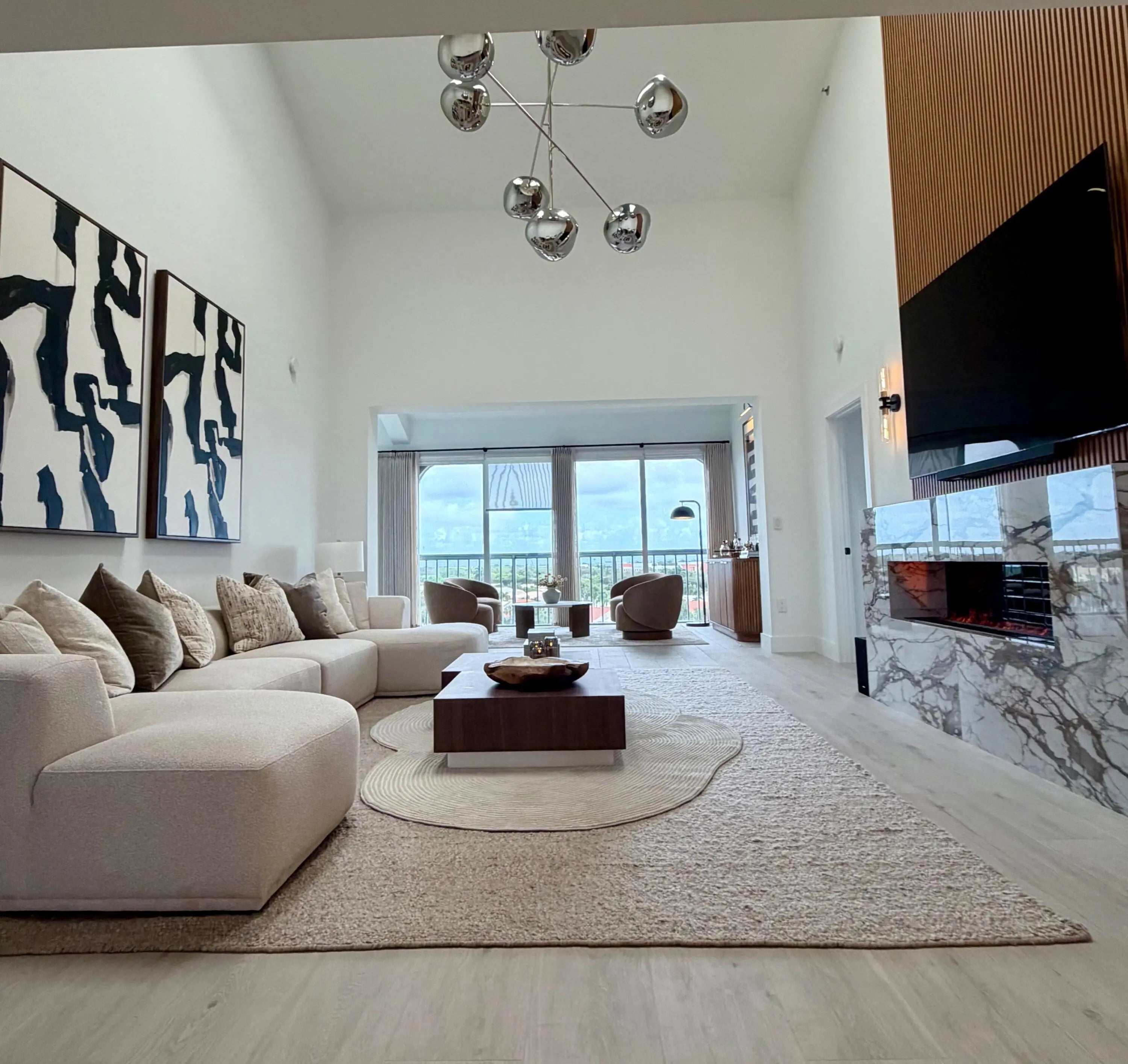 Stunning Penthouse just fully renovated including brand new bathrooms, new upscale appliances, wood floors and gorgeous upgrades throughout. Soaring 20 foot ceilings with views on both sides of the unit of the golf course and lake. Luxury rental, absolutely must-see unit. Offered fully furnished and move-in ready. Bonus room in unit includes office area as well as lounge seating. Secure building - elevator only serves both Penthouse units. Centrally located and close to highway access.