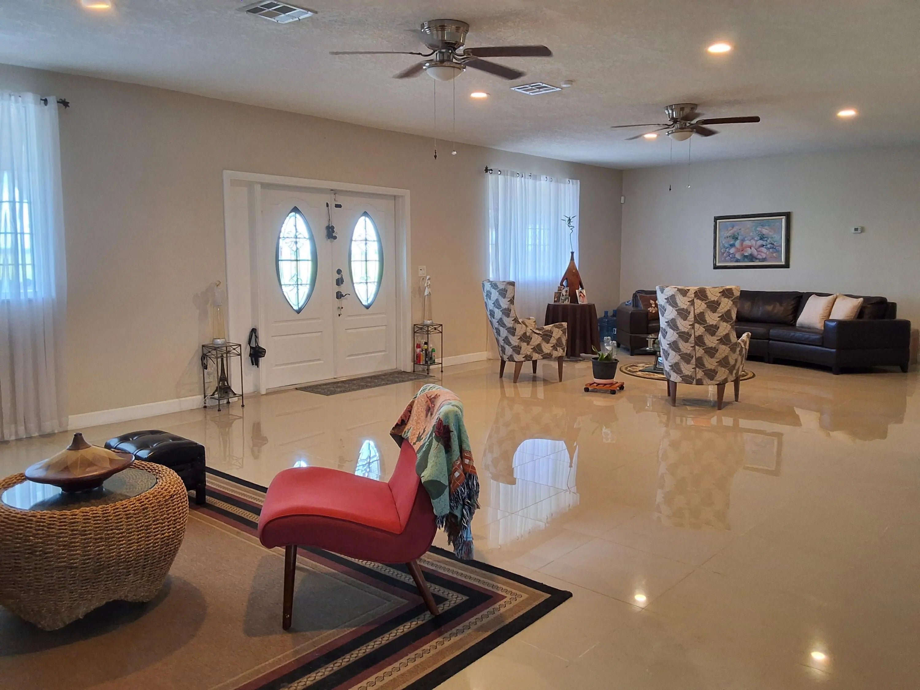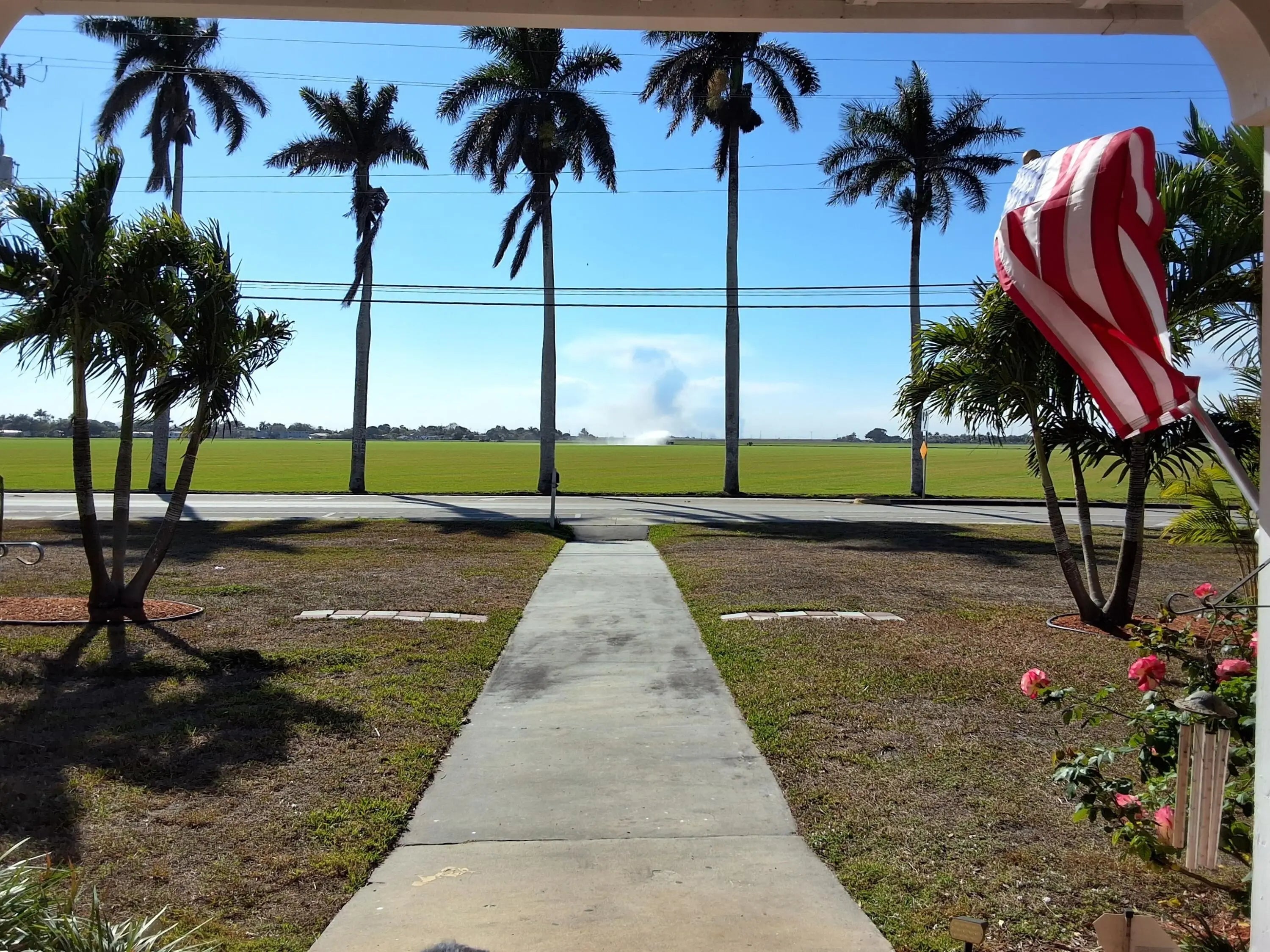 Enjoy stunning sunrises overlooking acres of cornfields from the covered Mexican tile porch, with unforgettable sunsets to close the day. Cross over your very own bridge and see Lake Okeechobee which covers 730 sq miles. This renovated single-story ranch home features mango, avocado, dragon fruit, soursop, lemon, and guava trees on the property. Horses welcome. CBS construction completely renovated, including 18" porcelain tile floors, fireplace, kitchen/appliances, master suite & bath, Three 2.5 ton AC units (2017), Two water heaters (2017), roof (2024). Impact fiberglass double doors in the front & 2 metal doors in rear. Attached shed for ride mower, storage space, tools, bikes etc.,, 12-foot Carolina double carport. A must see that won't last long.