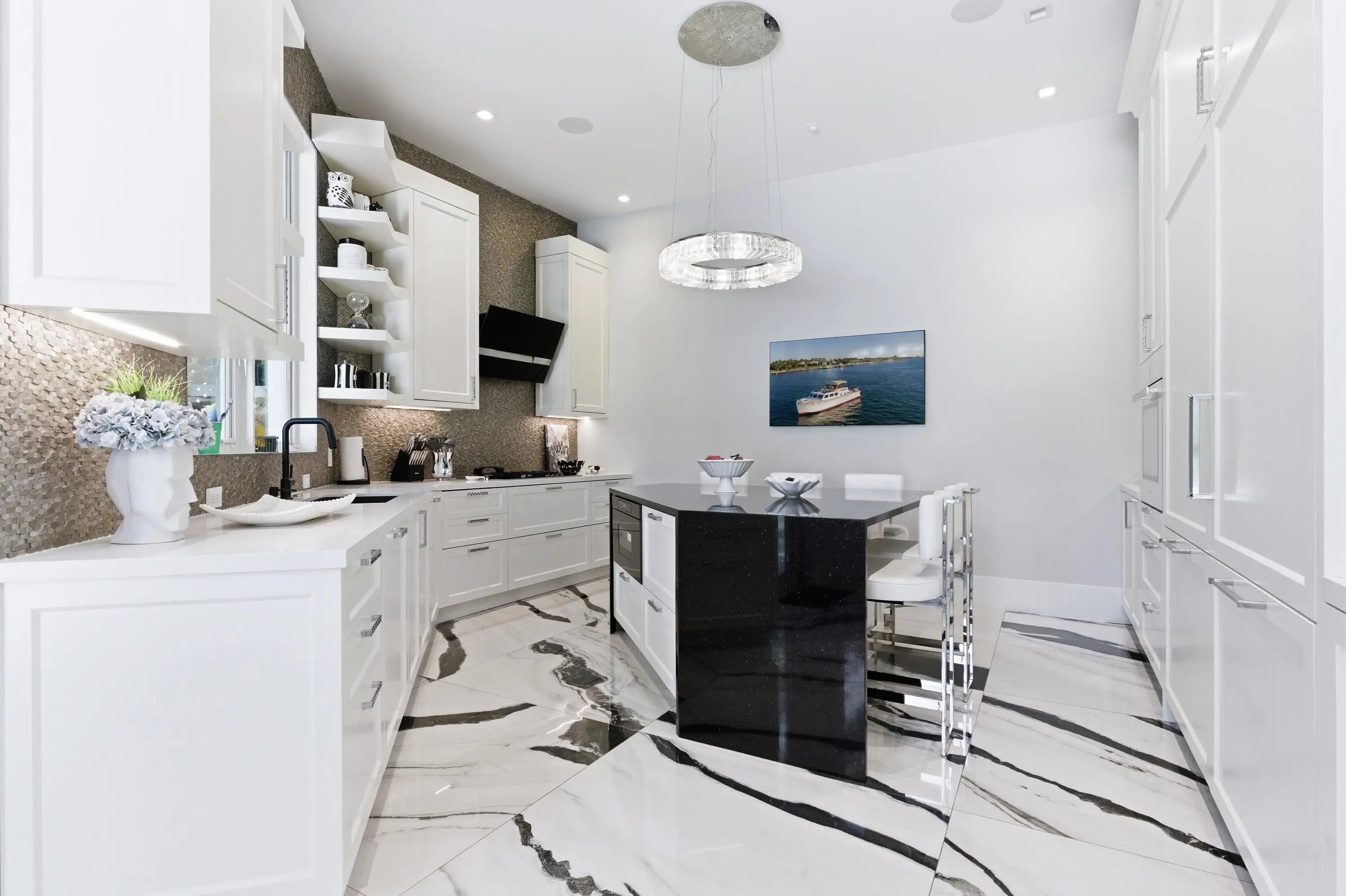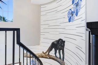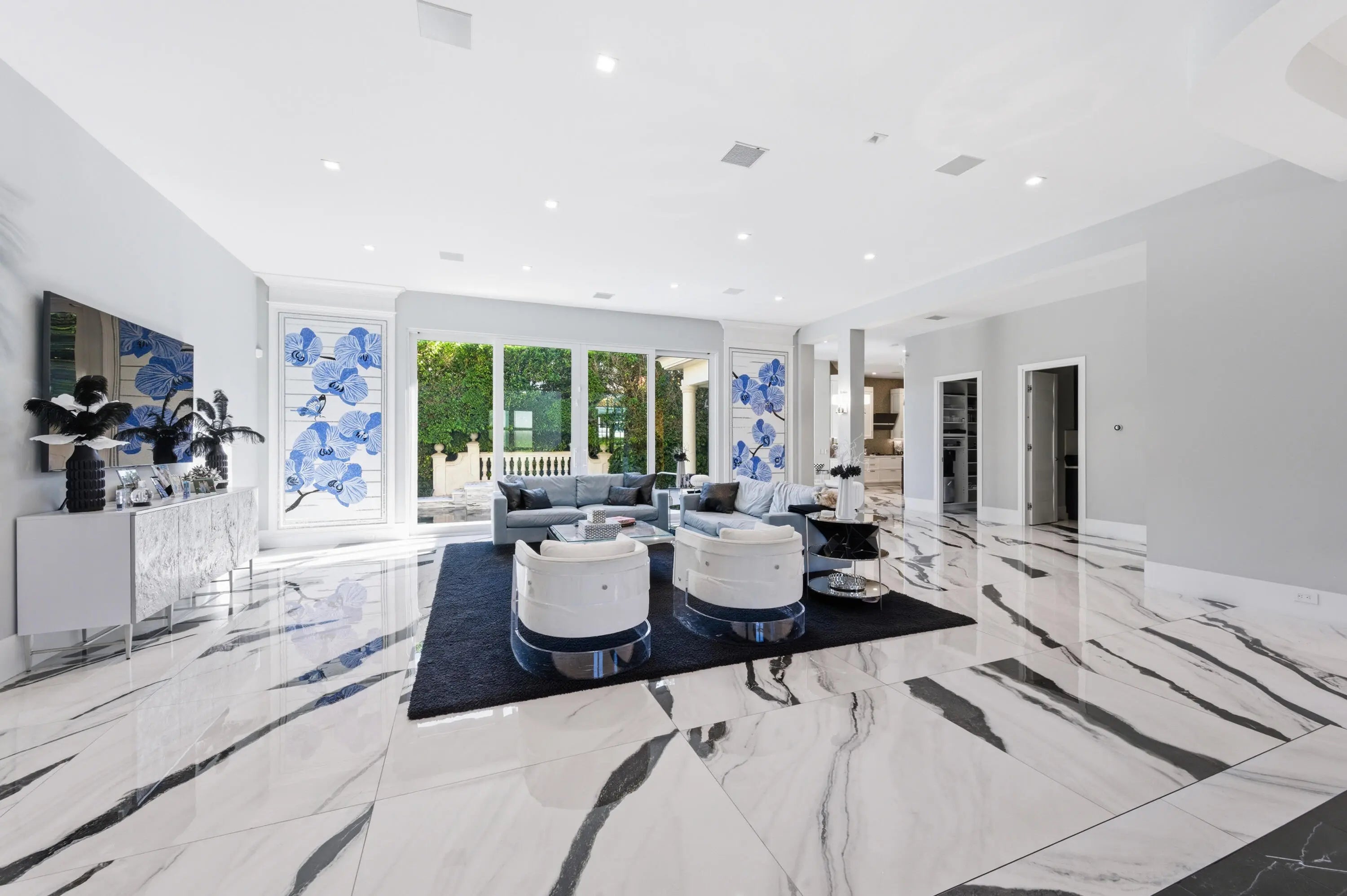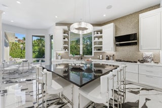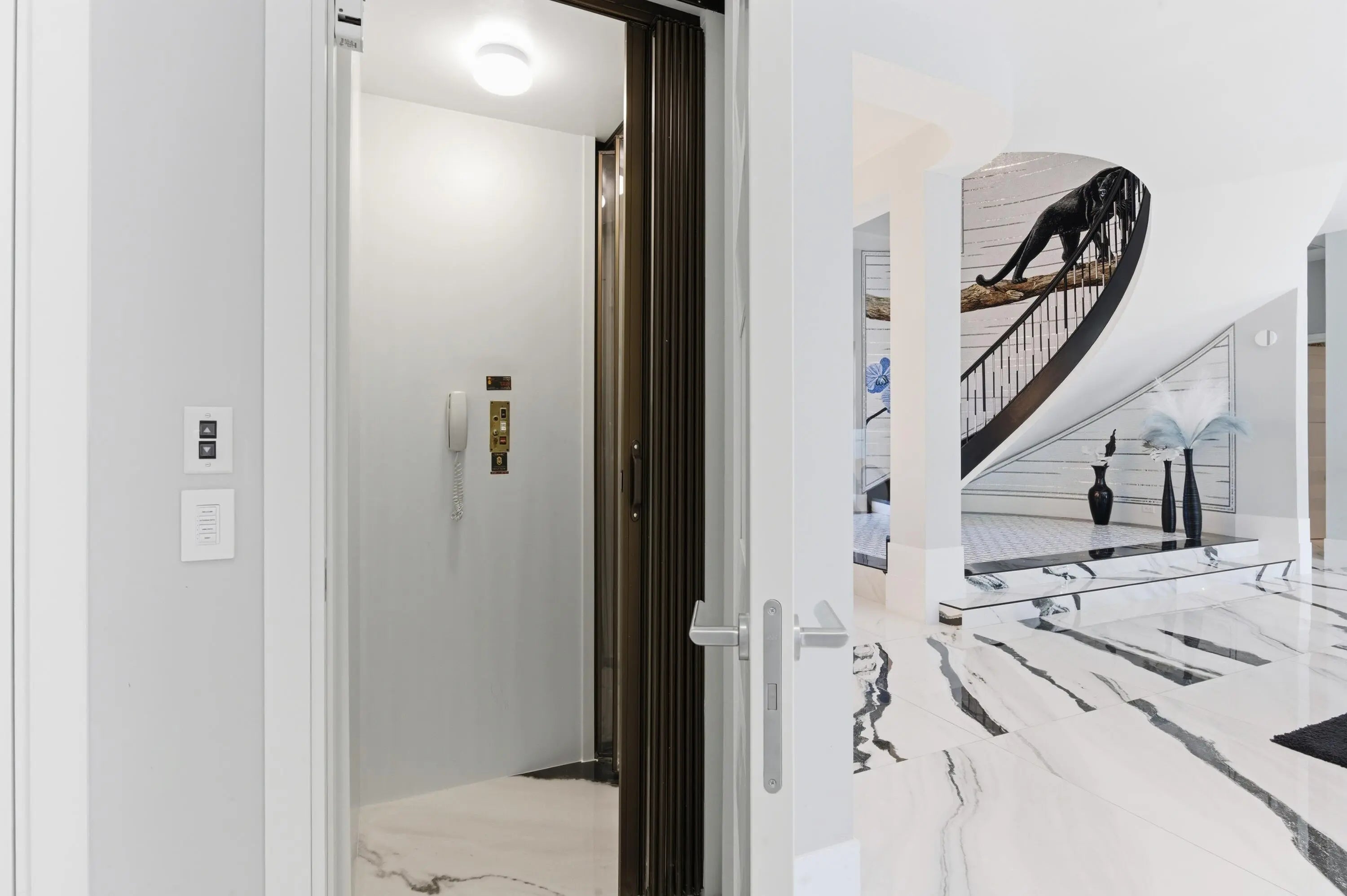 In-Town- Fabulous Southern Exposure Modern Mediterranean. This absolutely stunning, 5-bedroom, 5. 1-bath pool home has abundant light and was custom-renovated and reimagined for today's lifestyle. Fabulous home for entertaining with its open floor plan, 11.5 ceilings, library/den reinvented into a wine/bar opening to the pool with revolving wine display, wine cooler, and two icemakers. You will appreciate the spacious bedrooms all with large walk-in closets and ensuite baths and great eat-in kitchen with easy access to the pool and built-in outside grill. Laundry room with dual Miele washers/dryers. It's all new, including the elevator, roof, impact windows/doors, flooring (marble/tile), a new pool deck/surface, a two-car garage with a lift for the 3rd car, and room for your golf cart too