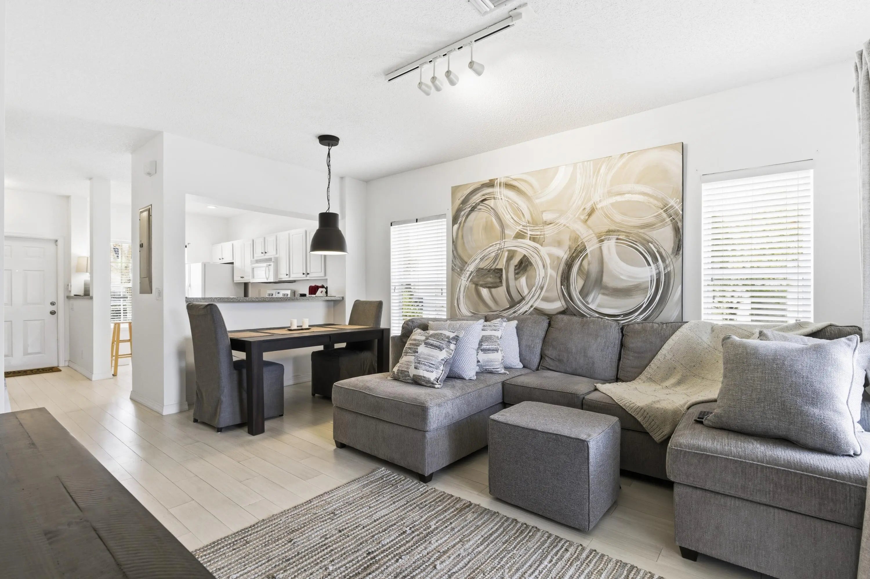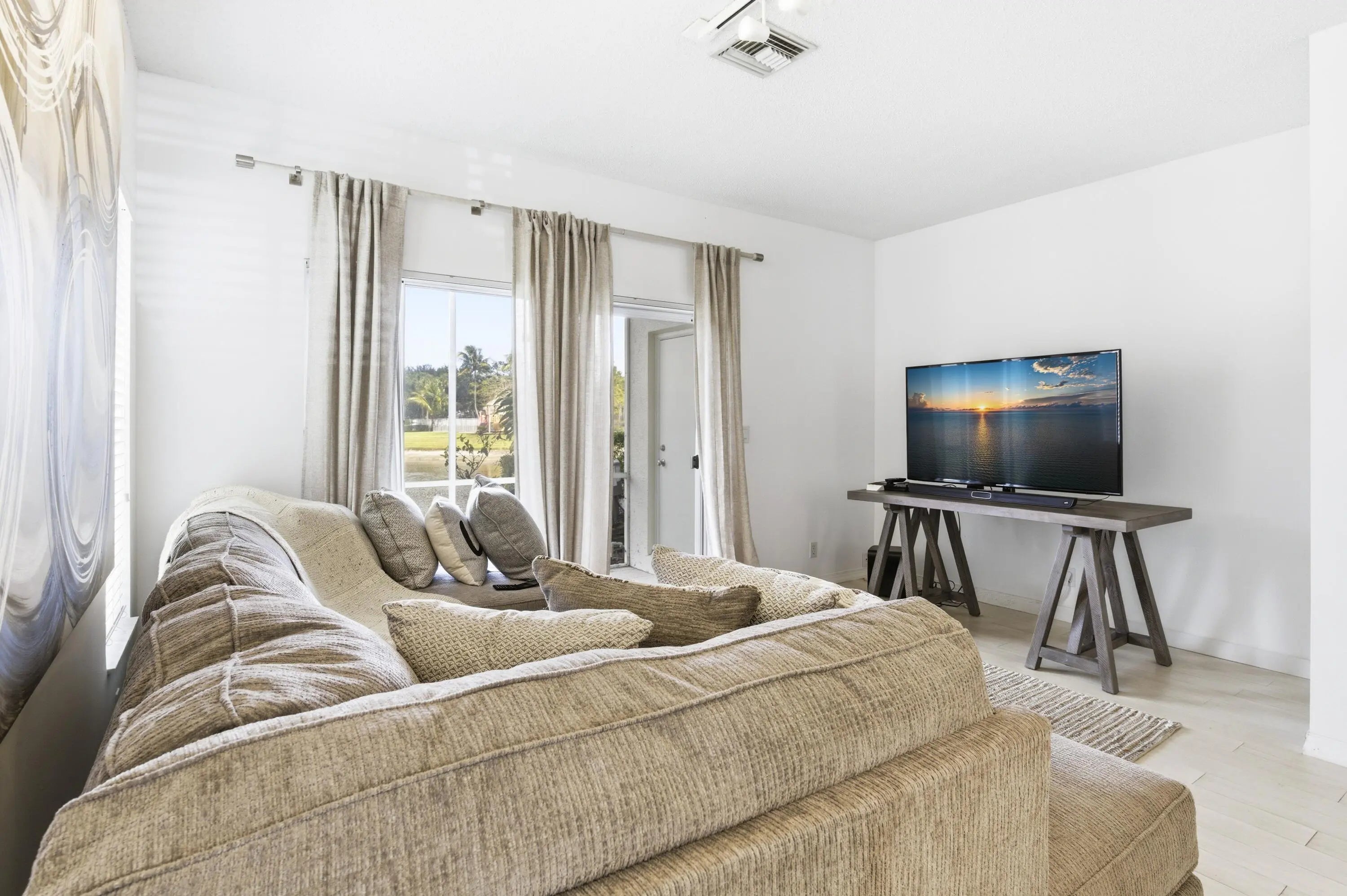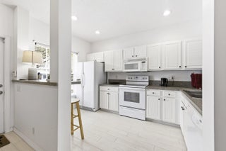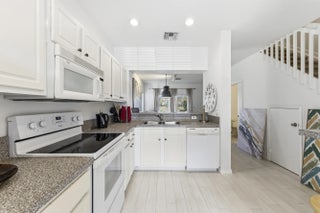 Beautiful two-story corner townhouse offering two bedrooms and two and a half bathrooms with serene lake views. From the moment you enter, you are welcomed by an abundance of natural light and peaceful water views visible from the front door, kitchen, and living area. The spacious kitchen features ample cabinetry and generous countertop space, opening into the dining and living areas, creating a comfortable layout for everyday living or entertaining. Enjoy relaxing mornings or quiet evenings on the screened patio overlooking the lake. The corner location allows for additional windows and bright natural light throughout the home. Light colored flooring flows throughout both the first and second floors, creating a fresh and airy feel. The washer and dryer are conveniently located upstairs The primary bedroom is generously sized and features beautiful lake views along with an ensuite bathroom complete with a double vanity and step-in shower. The second bedroom is also spacious and offers its own private ensuite bathroom, giving both bedrooms the comfort and privacy of dual primary suites. Ceiling fan lights are installed in the bedrooms, and the bathrooms have been tastefully updated. The home was painted in 2021 and the flooring was replaced in 2022. Jonathan's Cove is a highly desirable gated community offering a pool, playground, picnic area, sidewalks, and beautiful water views throughout the neighborhood. The association fee includes cable, exterior maintenance, and landscaping, providing convenient and low-maintenance living. Ideally located close to shopping, restaurants, hospitals, and everyday conveniences. Just a short drive to downtown West Palm Beach, with quick access to I-95 and the Florida Turnpike. Only about 10 minutes to Palm Beach International Airport and the beautiful South Florida beaches.