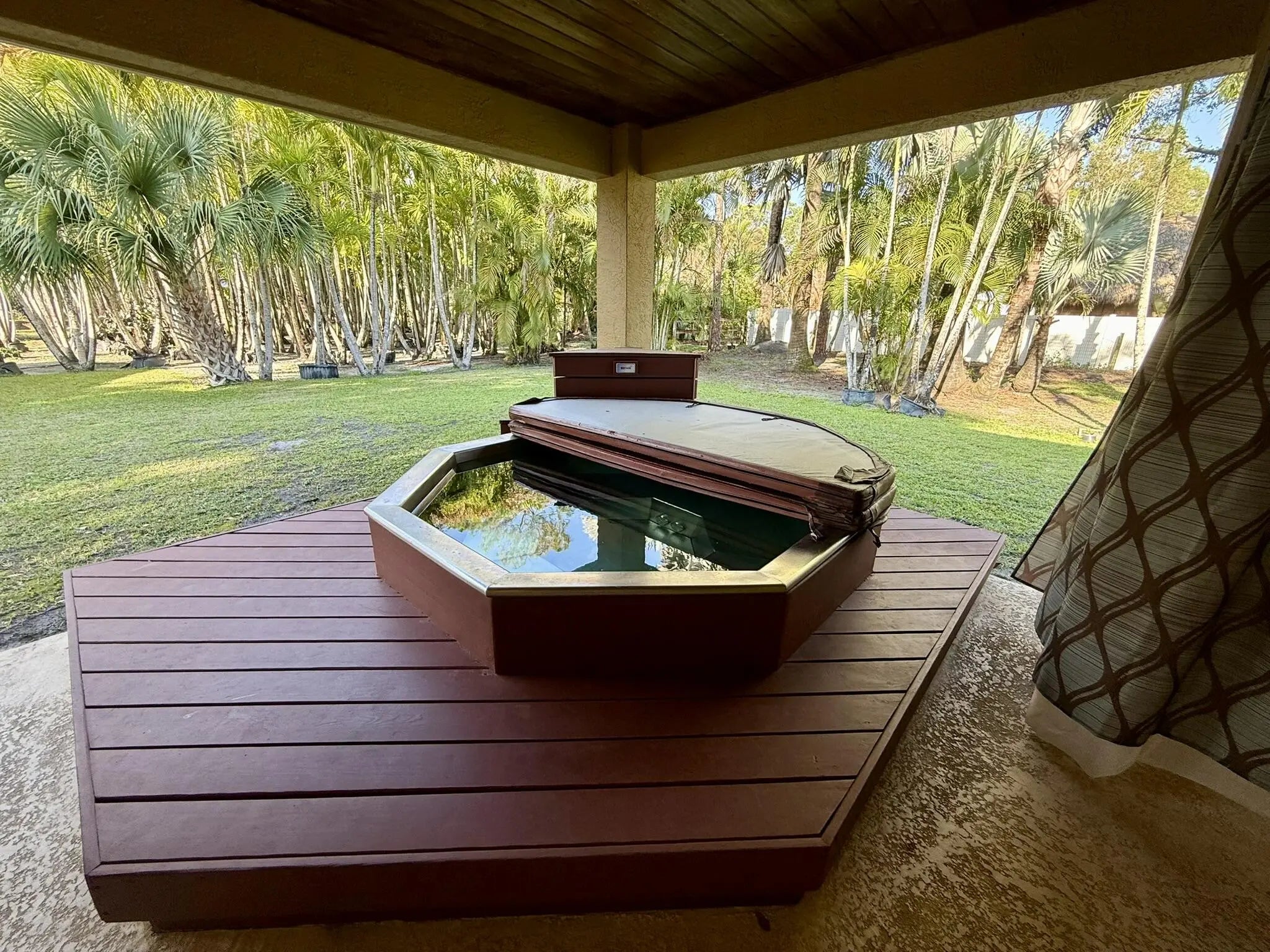 2014 renovated estate 2023 with guest cottage. $50k custom pool credit offered. Rare, fully renovated, 2-building estate on a paved road in Jupiter Farms. This is not a standard build; it is a full 2014 CBS-rebuilt fortress featuring concrete-filled, steel-reinforced walls, spray foam insulation, and full hurricane-impact protection for unmatched durability and ultra-low insurance costs. The main residence offers a chef's kitchen with thick marble, soaring ceilings, and a primary spa suite with a two-person granite shower. Outside, enjoy a high-elevation 1.25-acre gated lot with a covered grill patio and a rare, stainless-steel built-in 8-person hot tub. A detached 465 sq ft guest house (rebuilt 2023) with a private sauna—perfect for high-end rental income or a professional home office.