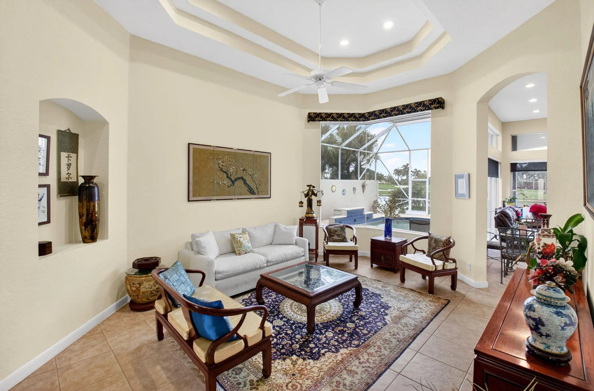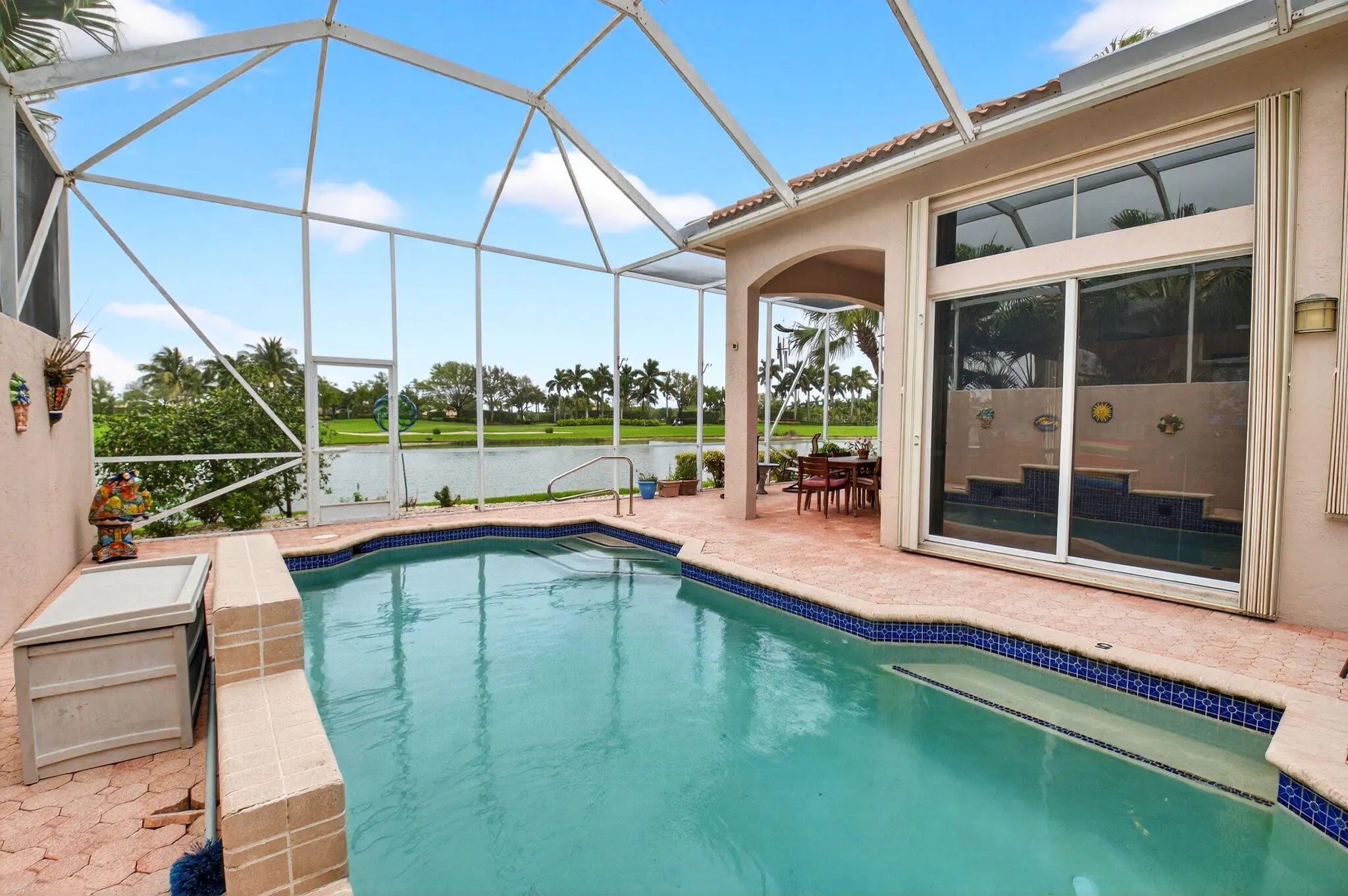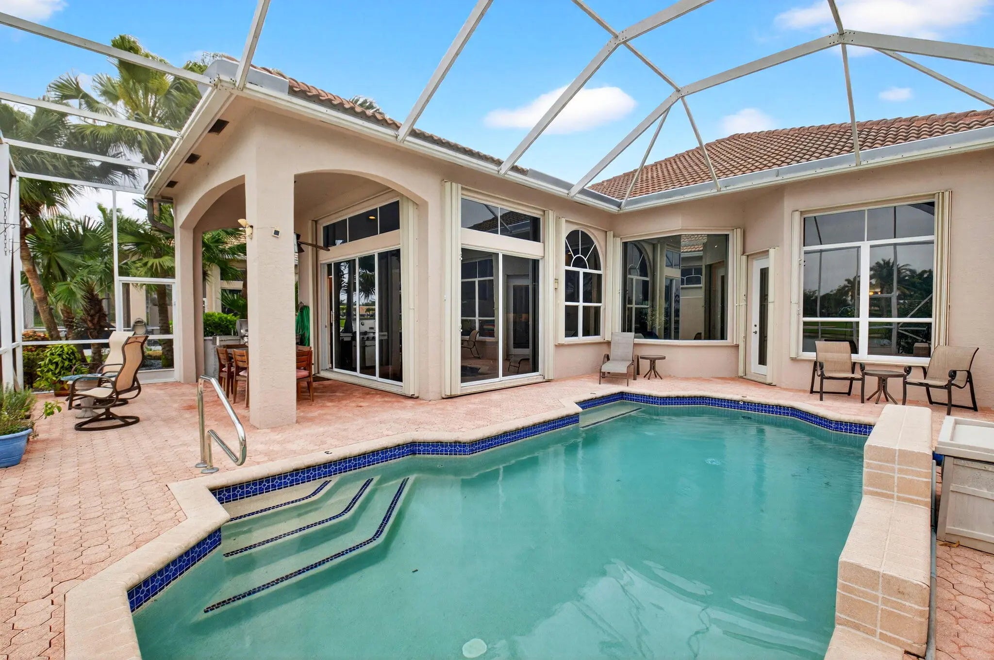 Welcome to the section for the best views in Aberdeen! Turnberry Isle has a reputation of having the best golf, water & sunset views. The 3BR/2.5BA/2car Chelsea is the largest home in the Fairways-3249 total sq ft. Enter this popular model through double glass doors. Enjoy a large living room, spacious den with a casual dining & separate dining room. The triple split floorplan offers guests privacy & room to roam. Roof replaced 2021, AC 2020, accordion shutters are present for hurricane protection. The pool is private & has a heater (not warrantied to work). There is a covered & screened lanai so you can enjoy your outdoors during rain showers. An excellent chef has lived & worked in this kitchen with granite stone counters & wood cabinetry. see more... A convenient wine frig also conveys. The garage also has a chest freezer that conveys. A therapeutic walk-in tub is in the primary bath as well as a huge walk-in shower & 2 sinks. A separate water closet is excellent for privacy. The primary bedroom also has 2 walk-in closets, a sitting area & a door out to your private pool. The 2nd bedroom has an ensuite full bath. A 3rd half bath is next to the office/3rd Br. There are numerous high hats giving the home a bright ambiance. The safe in the primary bedroom is attached to the floor in the closet but is non-functional. Aberdeen is a mandatory membership club, please see attachments for fee info. Aberdeen features a challenging & immaculate Jim Fazio 18-hole golf course, 14 har-tru tennis courts, 6 pickleball courts, state of the art fitness, 3 pools at main clubhouse, 3 golf & 3 racquet pros, golf & tennis pro shops, 2 bocce ball courts league play for all sports, card rooms, 2 restaurants with indoor & outdoor dining, the sunset lounge with daily happy hour & complimentary hors d'oeuvres, entertainment, & tons of clubs within a club. Buyer/Buyers agent to verify all info contained herein.