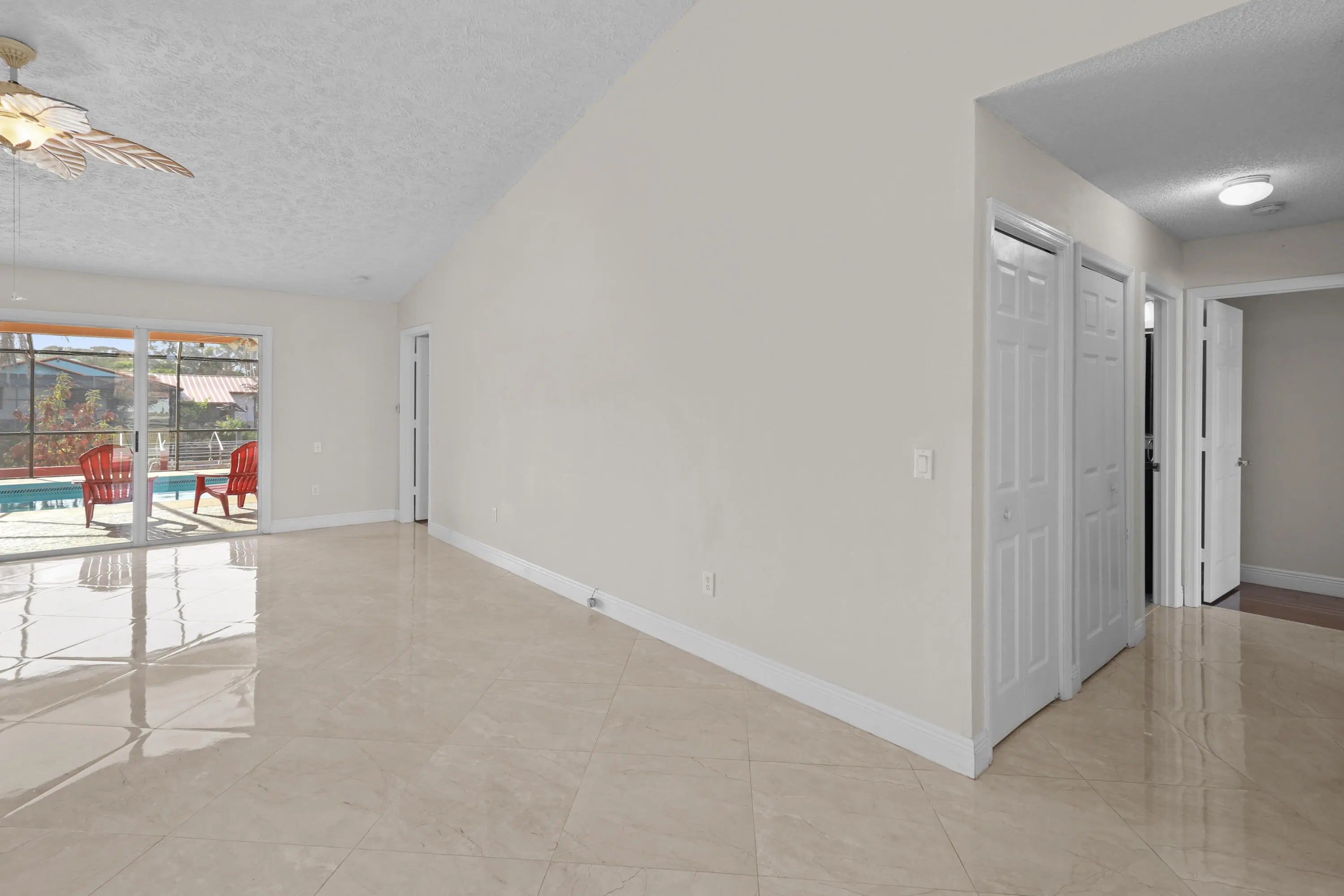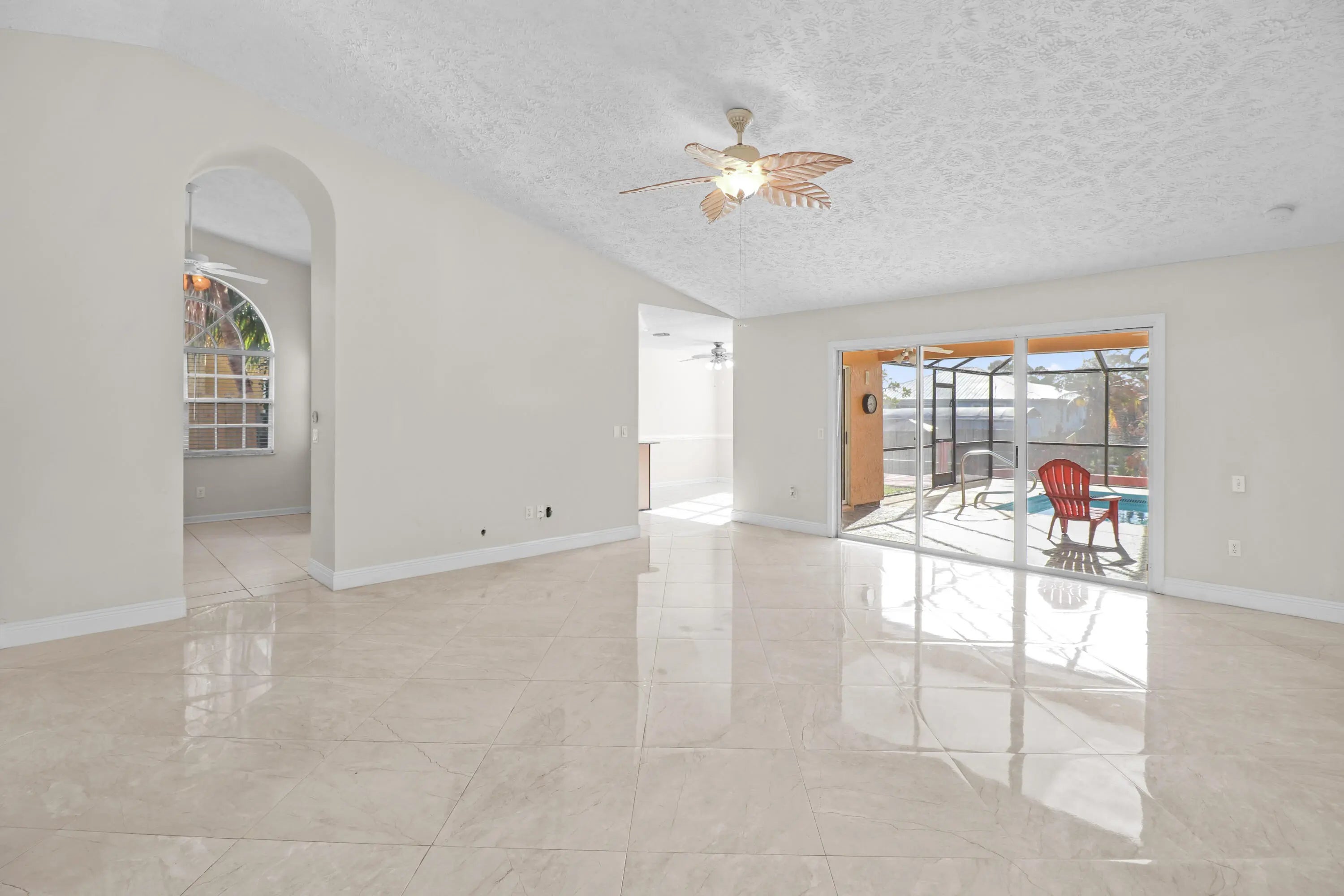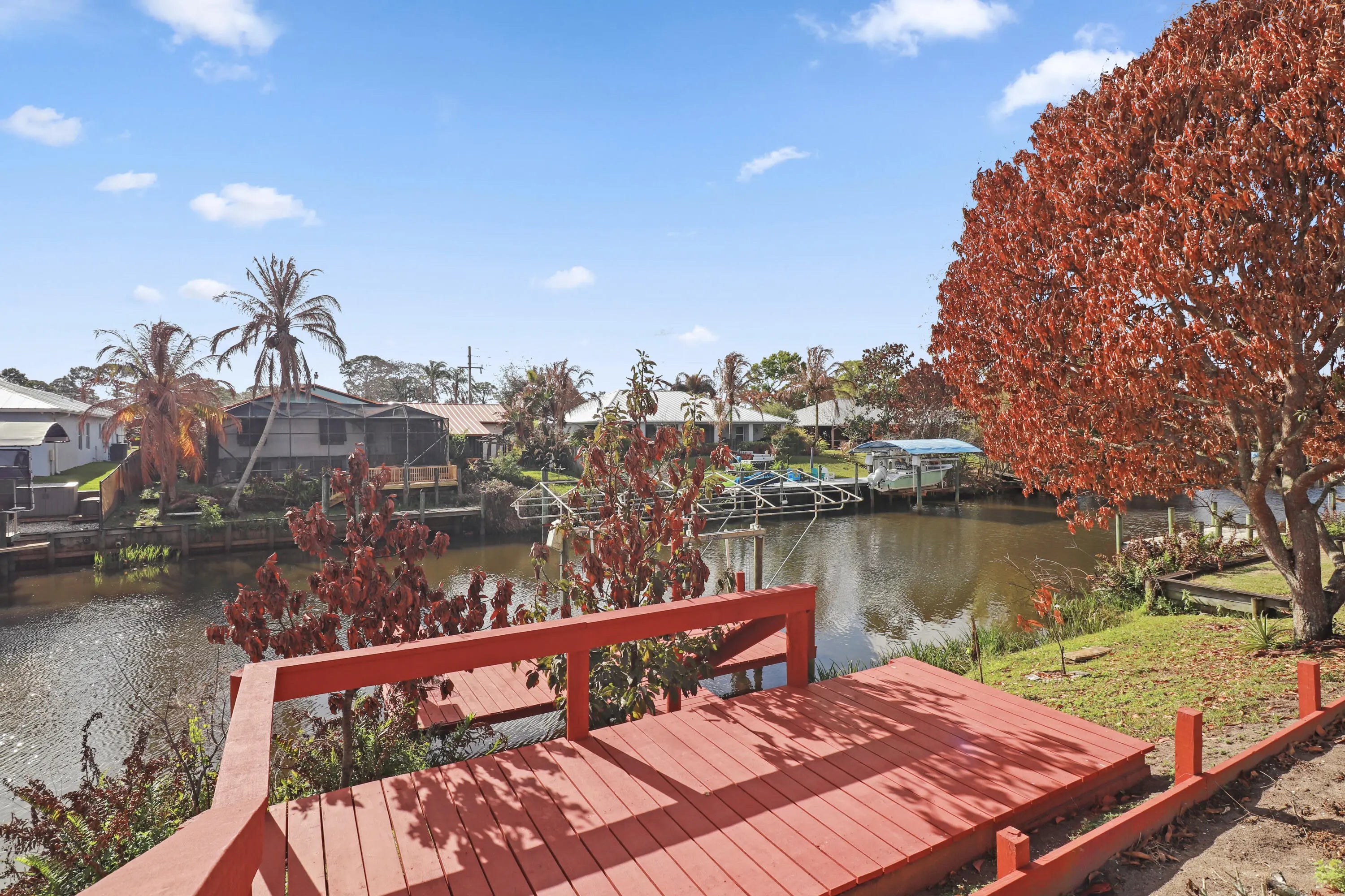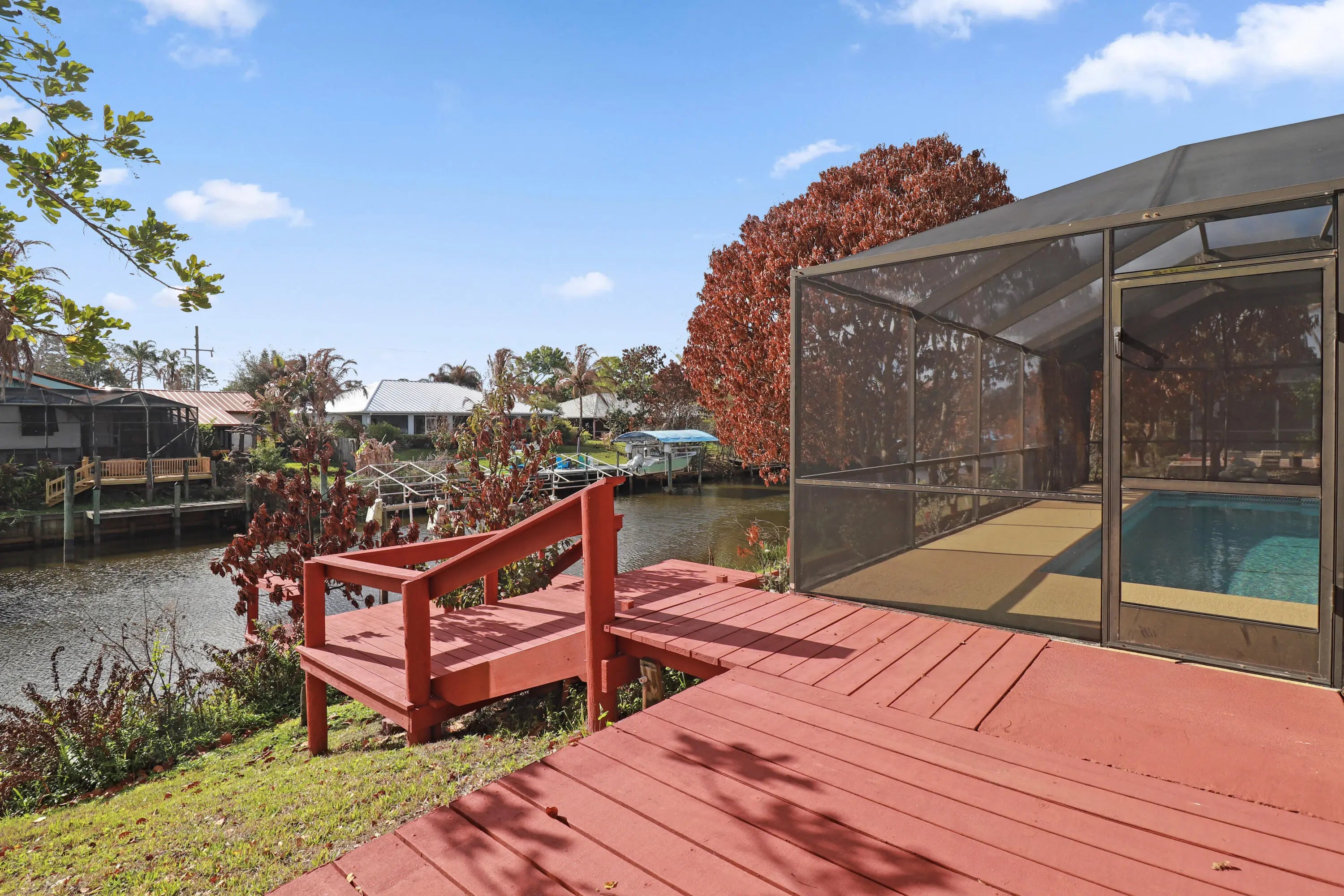 Calling all boaters, this beautiful pool home features a screened-in pool, ample patio space for entertaining, and access to the Treasure Coast's coveted waterways! Inside, this spacious property offers tile flooring throughout, a spacious kitchen with granite countertops & stainless steel appliances, and peaceful views of your private boat dock. The spacious primary suite includes a stunning bathroom, and vaulted ceilings enhance the bright and open feel of the living space. An oversized driveway provides room for a boat or RV, while two storage sheds offer extra storage. Call today tour this unique waterfront rental opportunity!