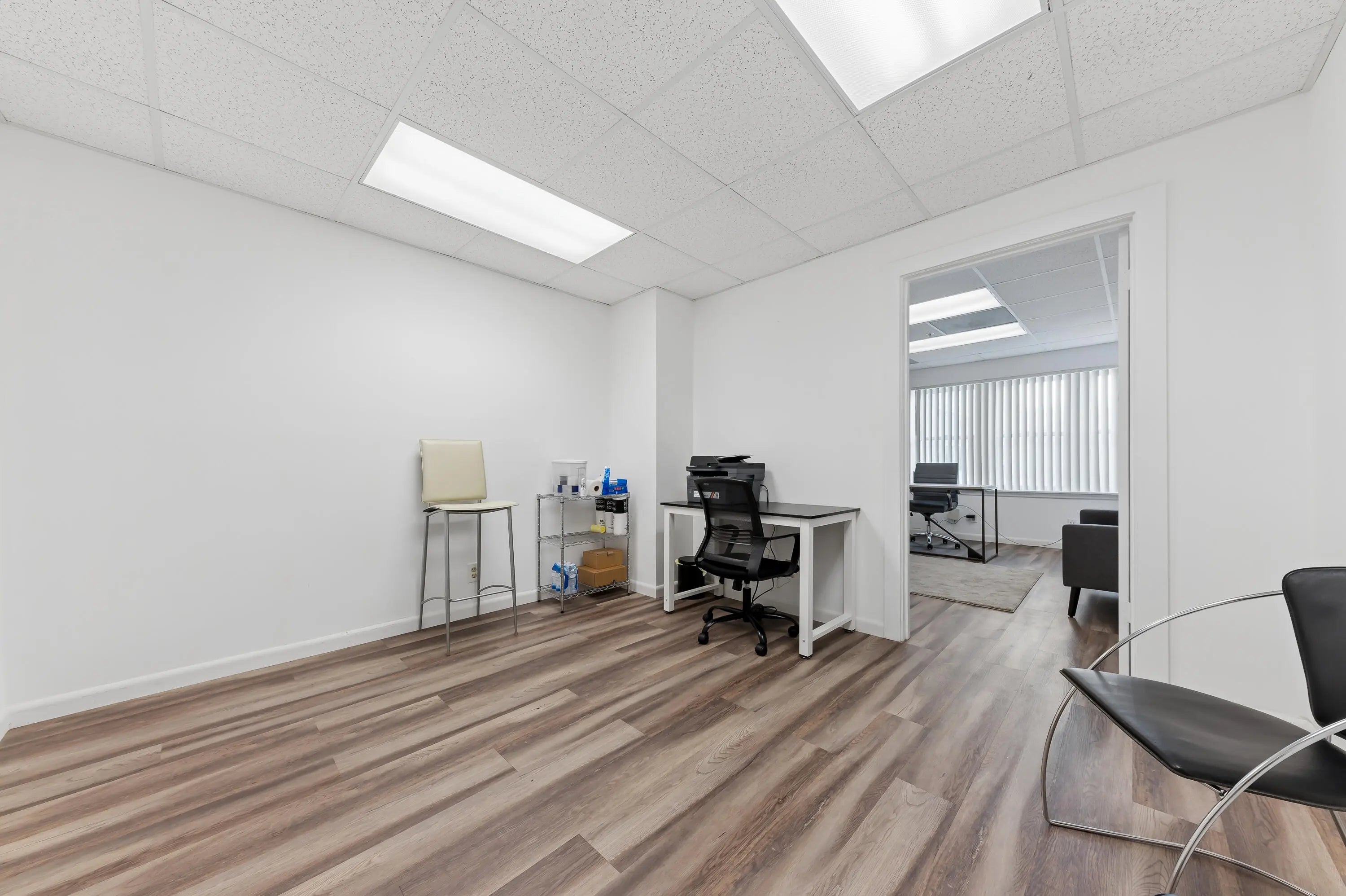 Modern Office Condo in Downtown West Palm Beach Turnkey 400 sq ft office suite with a private workspace and reception area. Well-maintained and move-in ready, located in the heart of the Flagler Financial District with 24/7 access. Walking distance to the courthouse, Clematis, and Brightline. Rent includes electricity and high-speed internet, ideal for professionals seeking a central, functional office space.
