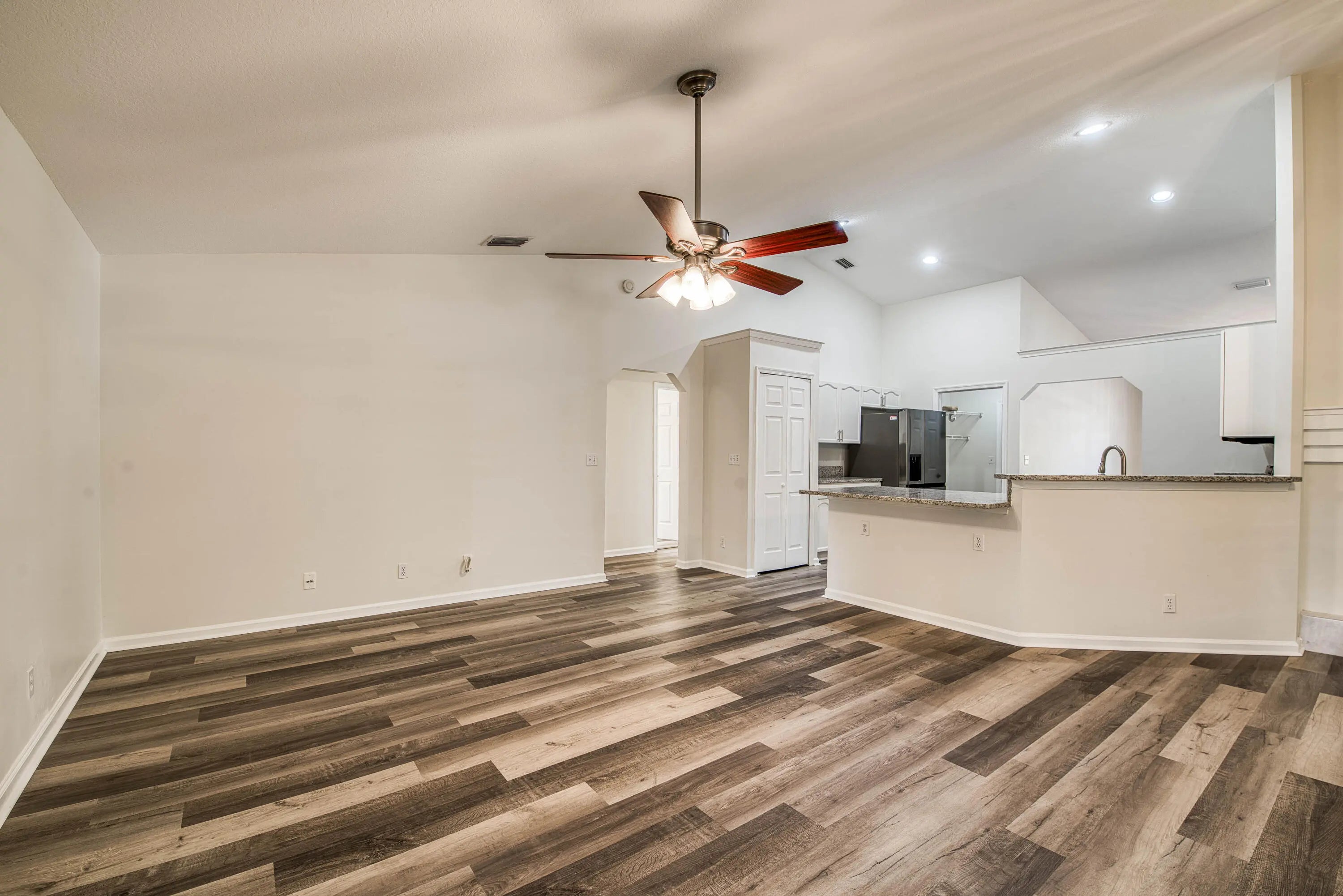 Spacious 5BR/3BA home situated on an acre in The Acreage with no HOA. The home features an open-concept layout with generous living spaces and a split-bedroom floor plan. Recent upgrades include a 2018 roof, A/C units replaced in 2019 and 2020, a 2024 water heater, freshly painted interior and exterior, vinyl flooring throughout, newer kitchen appliances, and updated kitchen countertops. The kitchen opens to the family room and breakfast nook, while the enclosed and extended patio with tile floors, split A/C, and additional kitchen space offers flexible use for entertaining or multi-generational living. Located near local parks and just minutes from the growing restaurants and shops of Westlake and Avenir.