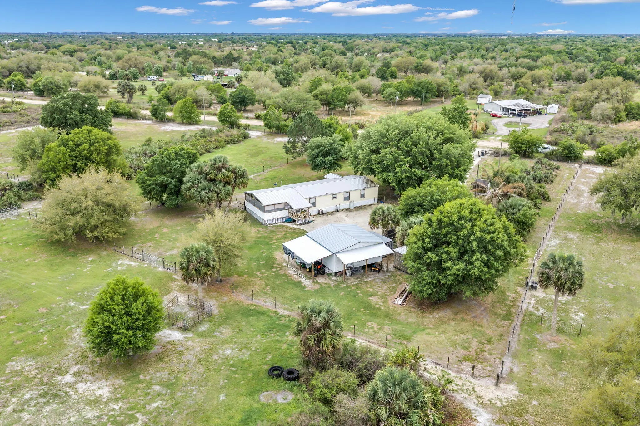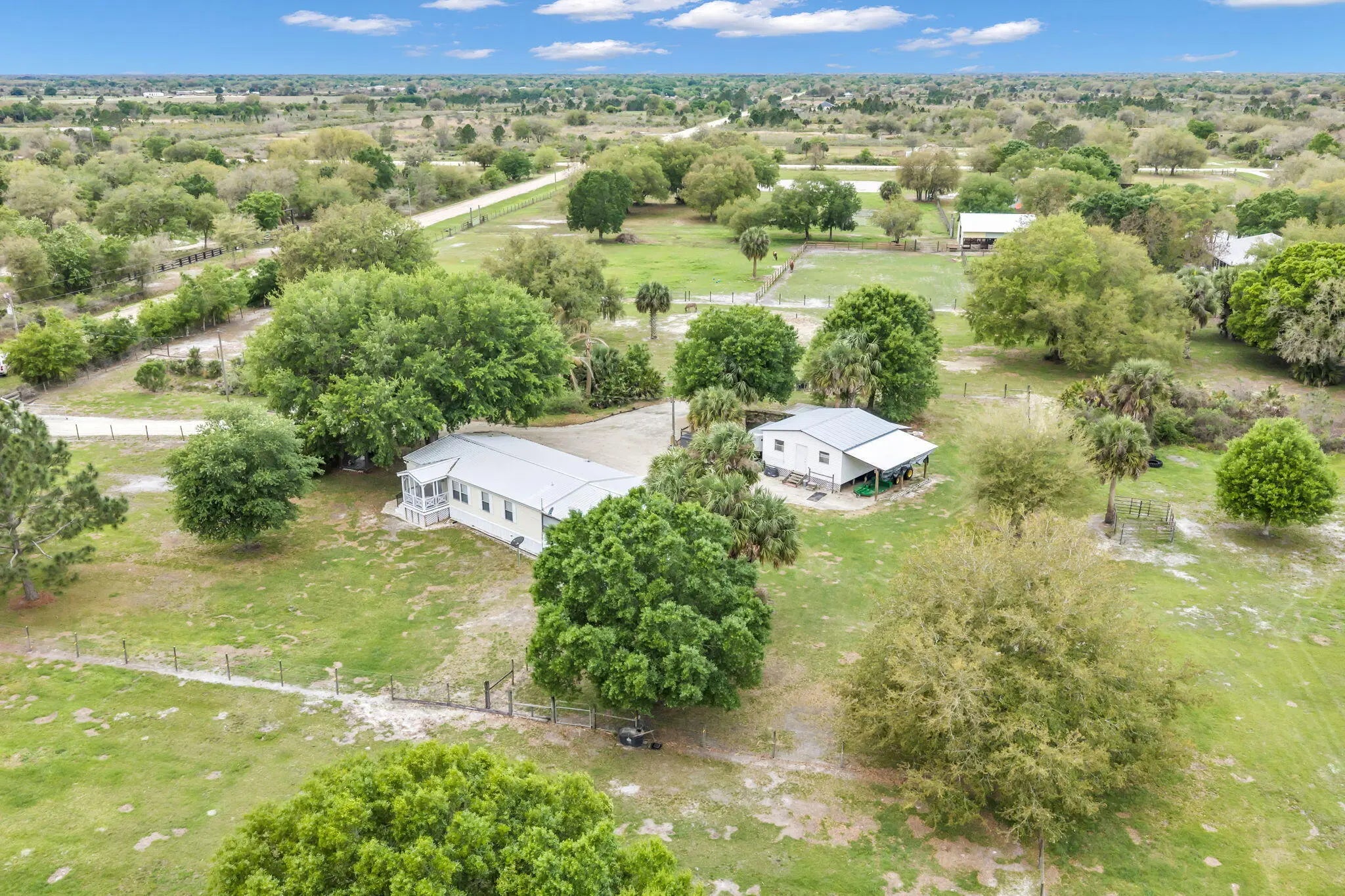 Enjoy country living on this beautiful 10-acre property in Okeechobee! This fully usable parcel features a 3-bedroom, 2-bath manufactured home with 1,296 sq ft of living space. The property is fenced and ideal for livestock, horses, or agricultural use, with plenty of open pasture and mature trees for shade and privacy. Inside, the home offers a split-bedroom floor plan, laminate and vinyl flooring, and central air and heat. Equipped with well and septic, plus natural gas available. No HOA and plenty of room to expand, add structures, or create your ideal rural retreat. A great opportunity to own acreage in a peaceful setting!