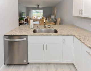 Adorable waterfront villa filled with natural light! This inviting home features an updated kitchen with a beautiful granite countertop that opens seamlessly to the living area—perfect for everyday living and entertaining. The interior boasts ceramic plank flooring throughout and two modern walk-in showers for added comfort and style. Start your mornings with coffee or unwind in the evening on the screened patio, where you can enjoy serene, wide lake views. A charming retreat with relaxing waterfront scenery!