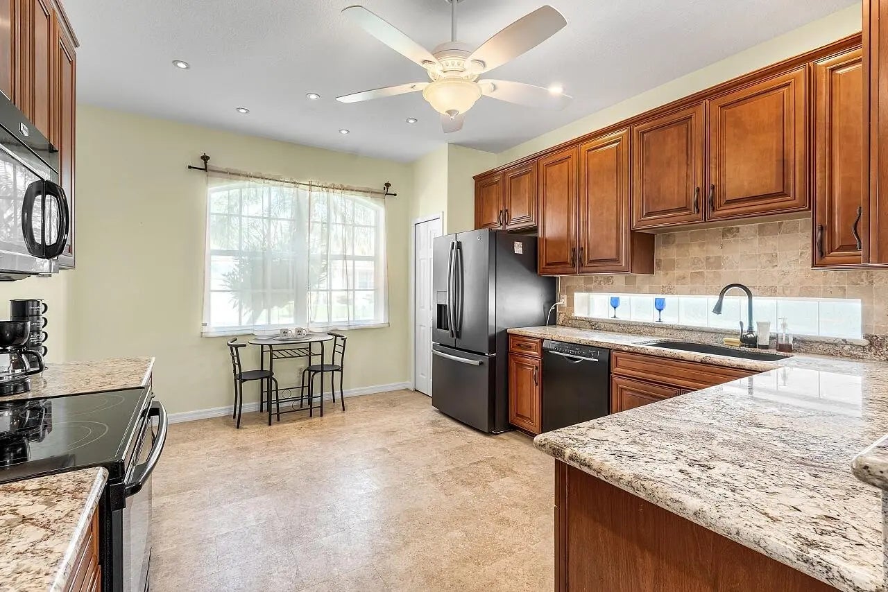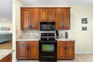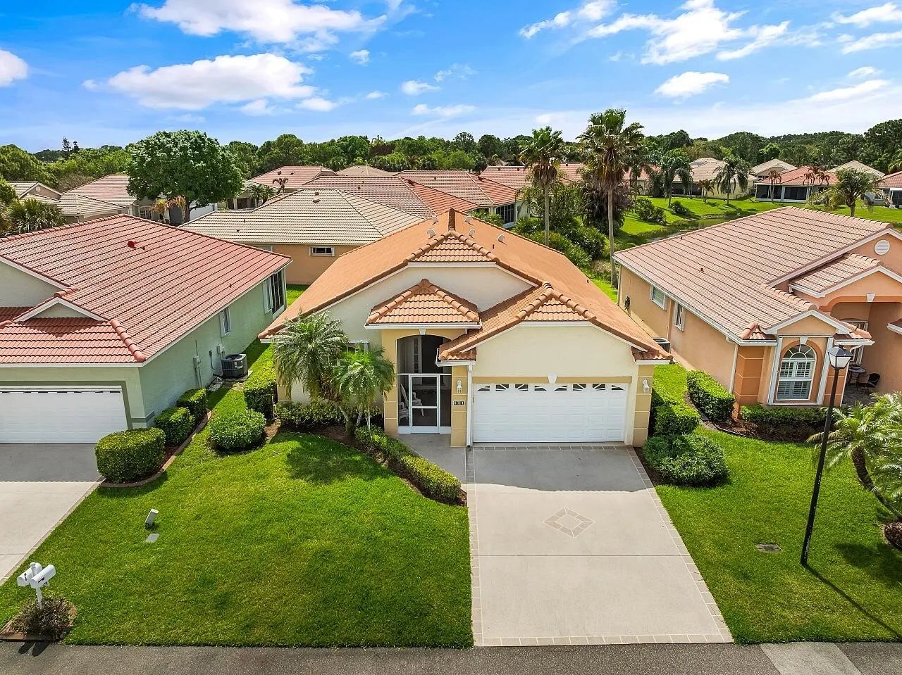Move right into this beautiful 2 bedroom, 2 bath CBS home in the desirable Isle of Madeira. Enjoy an open floor plan, updated kitchen with 42" wood cabinets and granite, and renovated bathrooms. Wood and tile flooring throughout, with new carpet only in the primary bedroom. Relax on the tiled, screened lanai with peaceful lake views and ideal southern exposure. Additional features include a 2021 barrel tile roof, accordion shutters, screened front porch, and an interior laundry room with extra storage. Kings Isle offers resort-style amenities, including a clubhouse, pool, fitness center, pickleball, tennis, and endless social activities and is located in the heart of St. Lucie West near shopping, dining, and I 95. A well-maintained, move-in-ready gem in a premier active-adult community. This home is turnkey with a full price offer (Excluding the car and personal belongings).