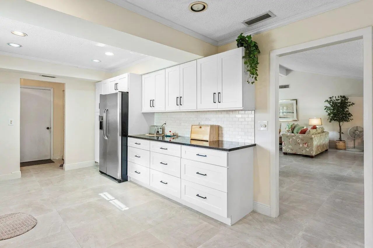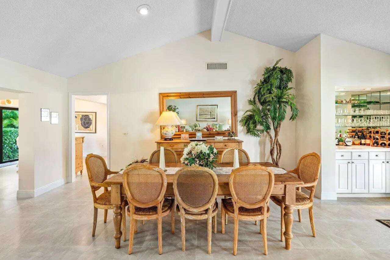 Discover the ultimate blend of elegance and effortless living in this 3BR/2BA villa in the popular Shelldrake area of Quail Ridge. Step through beautiful French doors into a warm foyer featuring a custom-built-in bar and cabinetry—perfect for entertaining. The home offers sleek tile flooring throughout for modern style and easy maintenance. Enjoy serene, picturesque tropical garden views from the living spaces, creating a private oasis atmosphere. Ideally located just steps from the area pool and community amenities, this residence offers the perfect balance of relaxation and recreation. Quail Ridge is a mandatory membership private club community offering a world-class lifestyle, including two championship golf course, premier tennis and pickleball, spa and fitness & a fabulous clubhouse.