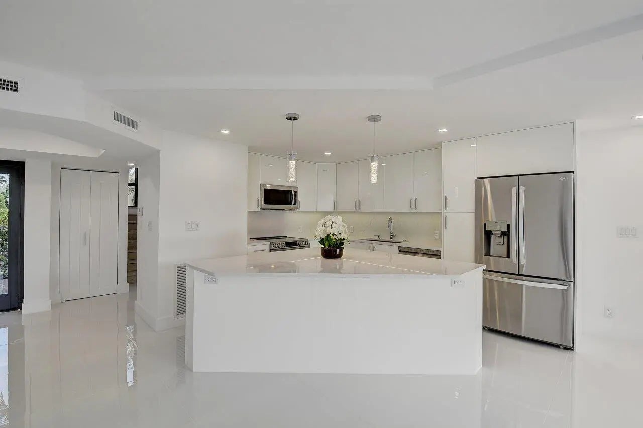 Brand New Modern Luxury in Bridgewood | Boca West Experience unparalleled elegance in this completely renovated 3-bedroom, 3-bathroom residence in the sought-after Bridgewood section of Boca West. This home has been reimagined with a chef's kitchen featuring a massive quartz island, custom cabinetry, and brand-new high-end appliances. The open-concept layout is defined by soaring vaulted ceilings and designer fixtures. Convenience meets luxury with the primary suite located on the ground floor, featuring a spa-like ensuite with premium finishes. Enjoy sweeping western sunset views from your private patio and terrace, perfect for entertaining. With a dedicated laundry room, assigned parking, and every surface brand new, this home is the gold standard for Country Club living.