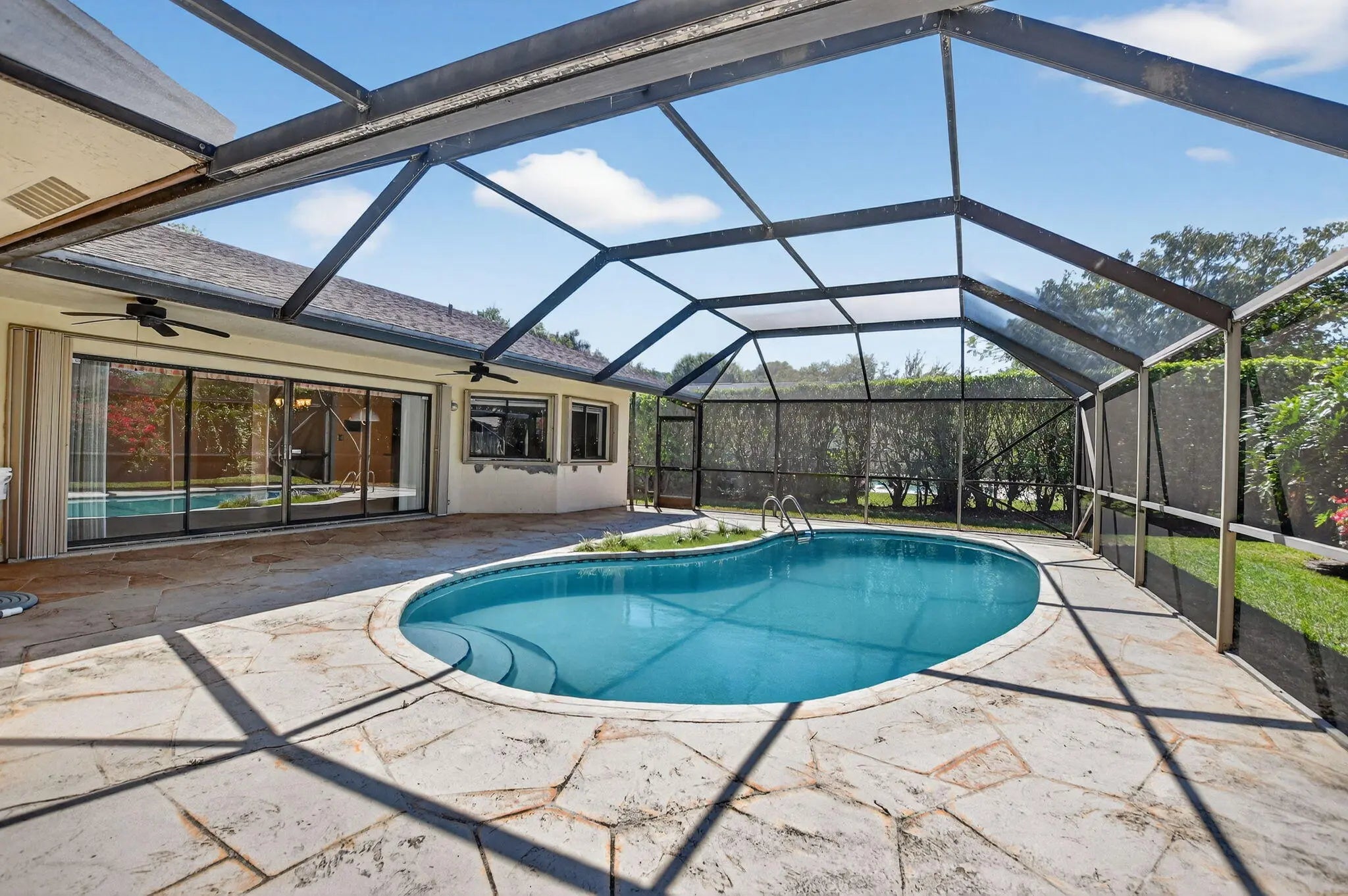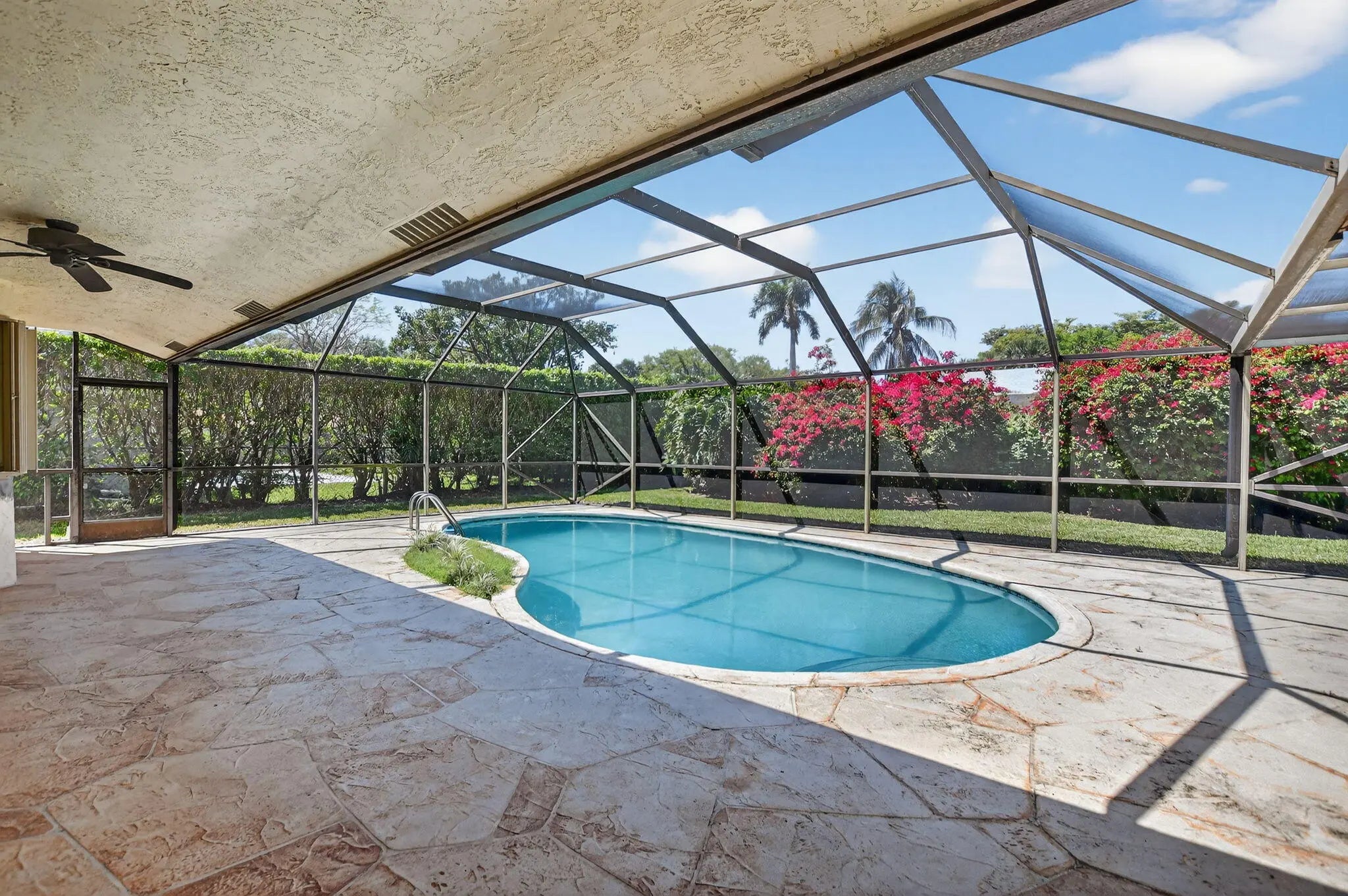 This 1 story, 4 bedroom, 2 bathroom home features high ceilings providing lots of natural light, a private screened in pool with extra yard space, 2 car garage, and separate family room and living room spaces. Both the primary bedroom and bathroom have direct pool access. The home is conveniently located in Central Boca Raton in the low HOA Strathmore neighborhood. Come add your personal touch and make this home yours! AC 2018, Water Heater 2012, newly updated irrigation system. Zoned for A+ schools and located close to St. Andrews & Pinecrest.