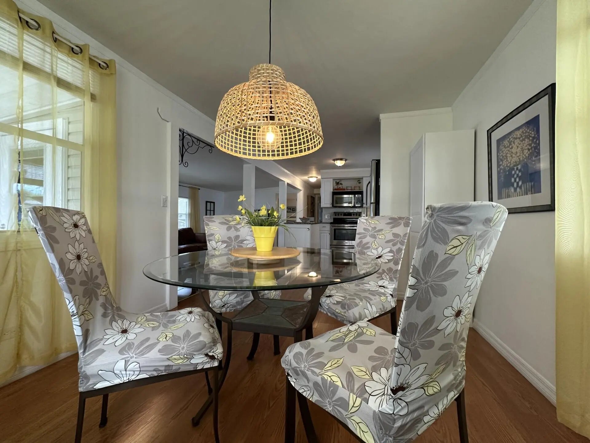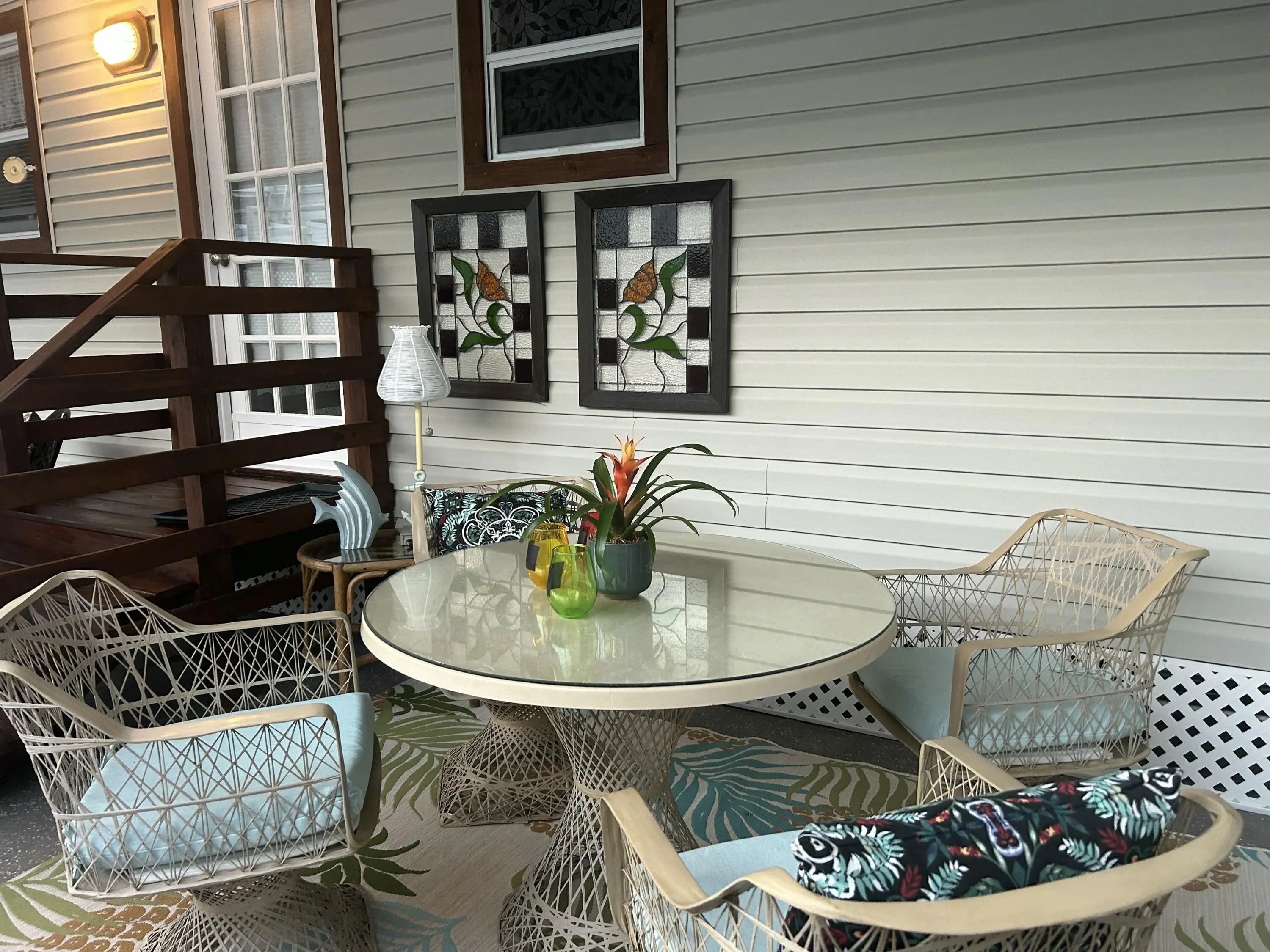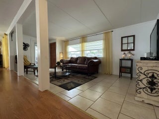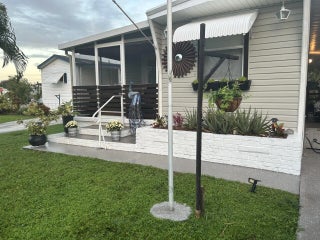 Lovely furnished 2-bedroom, 1-bath mobile home where you own the land—no lot rent! This well-maintained property features an updated kitchen and bathroom, stainless steel appliances, and a convenient kitchen island. Newer A/C and water heater about 1 year old. Enjoy a nice, screened Florida room at the front, plus additional outdoor living space under the carport—perfect for relaxing or entertaining. The driveway has been redone with epoxy for a clean, and durable finished look. A very large shed includes a washer and dryer, along with extra storage space in the back. Located in a desirable 55+ community offering great amenities, including pools, golf, shuffleboard, and more. Low monthly fees make this an affordable option for seasonal or year-round living. Conveniently situated near resta