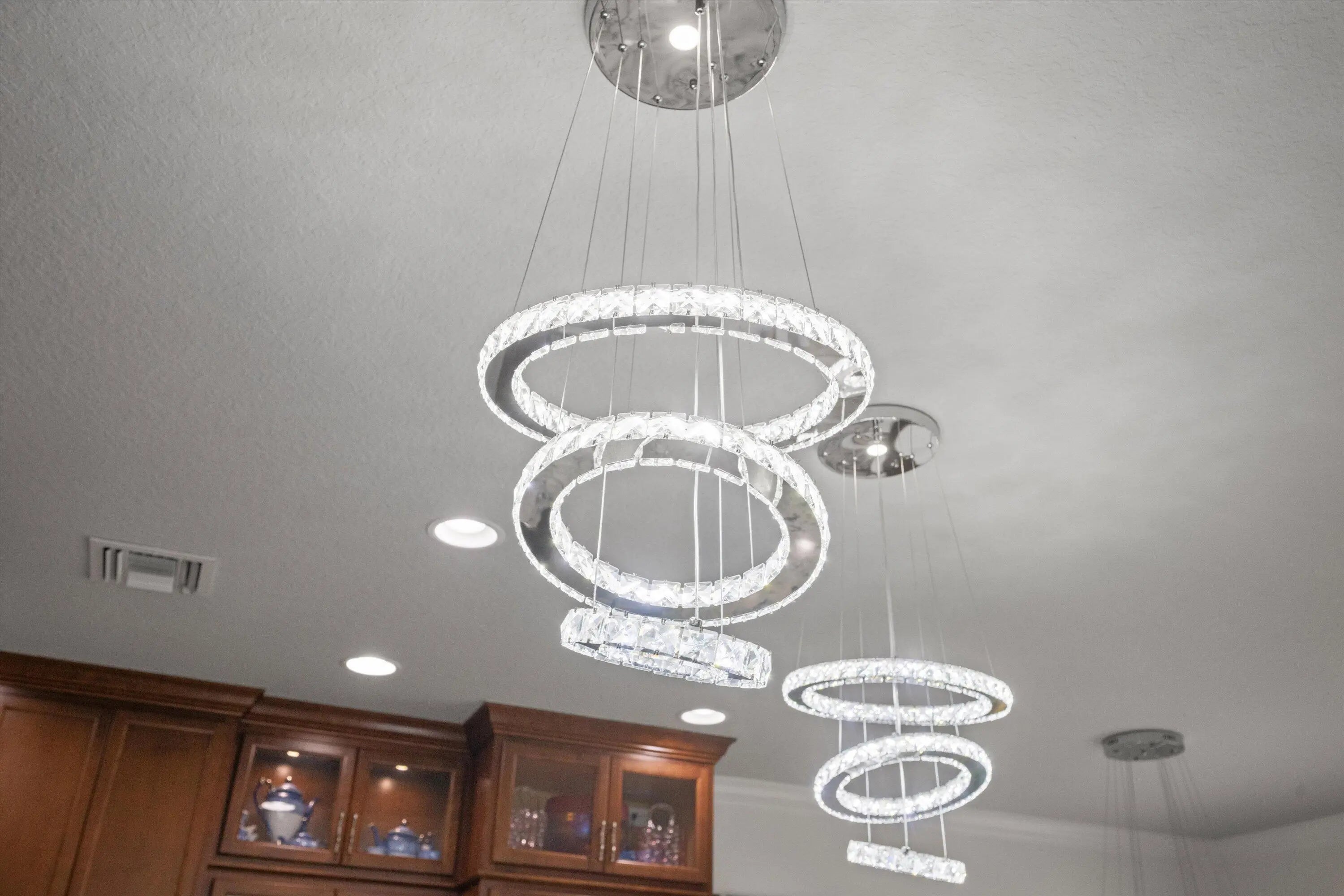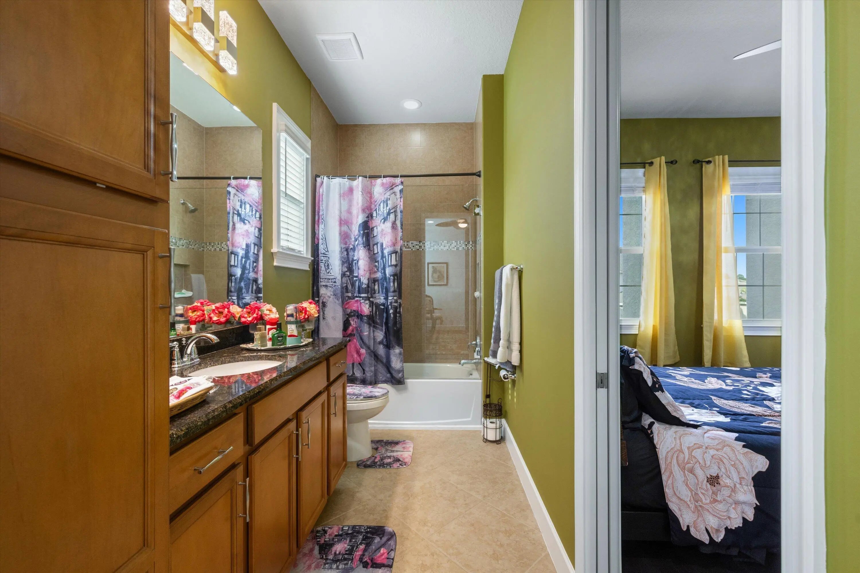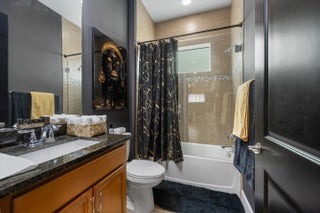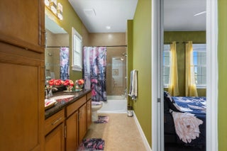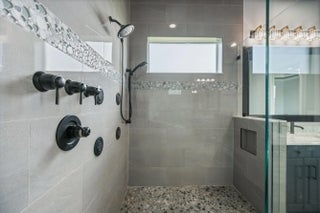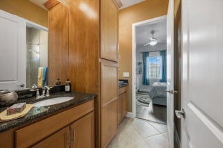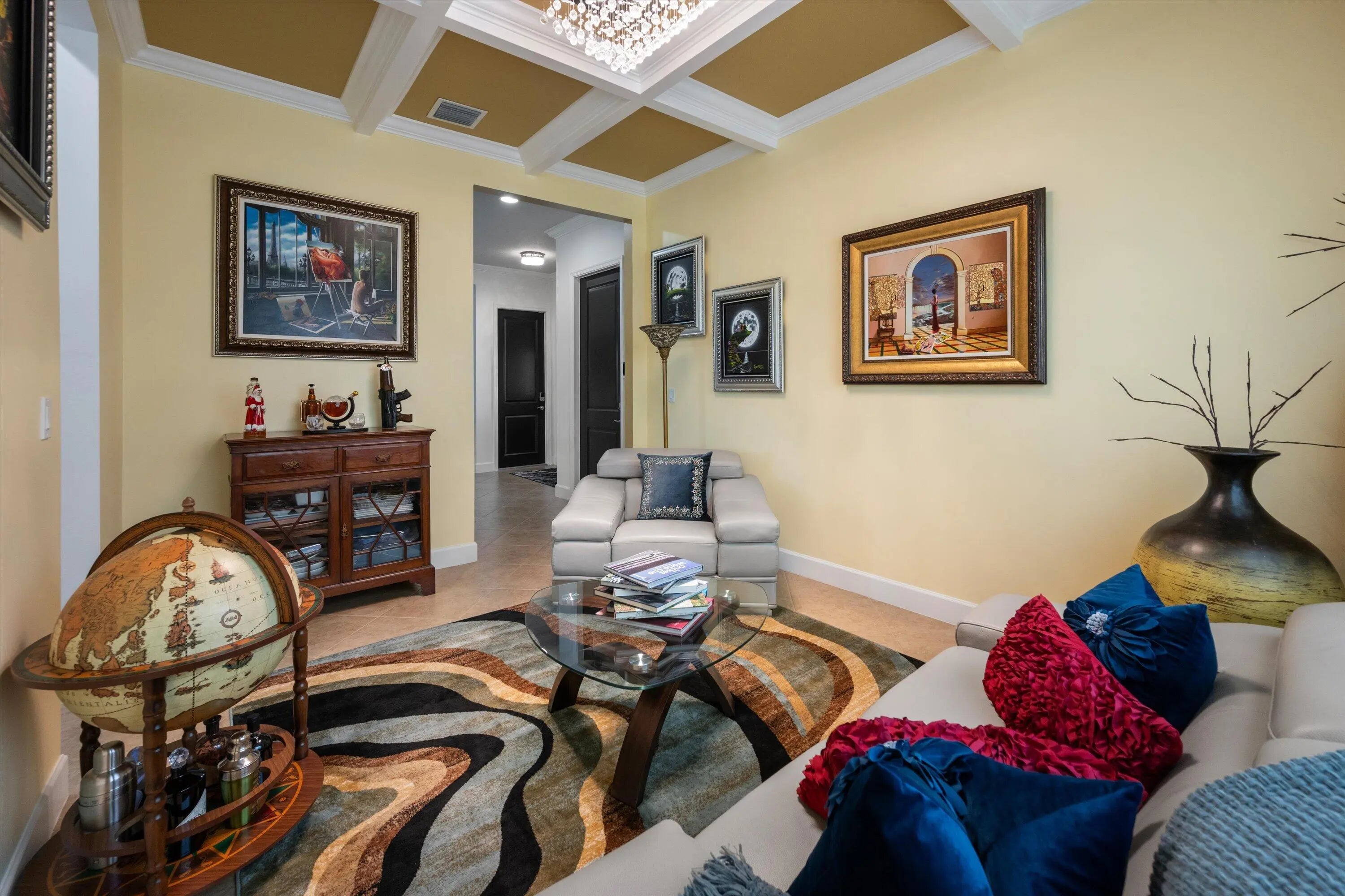 True showstopper. This exceptional five-bedroom lakefront residence stands apart with custom finishes and design details not typically found in Westlake's newer construction homes. A grand double etched-glass entry with bespoke wood ceiling, opens to a striking wood staircase with custom inlay and rich engineered wood flooring that extends through the office, staircase, and entire second level, all complemented by crown molding throughout. A refined front living space with dramatic coffered beam ceilings, private office with double glass doors, spacious family room, and a reimagined dining area create a layout that is both elegant and functional. The fully upgraded kitchen impresses with ceiling-height cabinetry with glass accents, quartz countertops with a bold mitered edge, a decorative wood-paneled island, double ovens, cooktop, upgraded appliances, wine cooler, and reverse osmosis system. A beautifully finished butler's pantry with glass-front cabinetry and quartz counters, along with a custom-built pantry, adds exceptional storage and style. Upstairs, a generous loft leads to five bedrooms, including a stunning primary suite with lake views, custom drapery, and a dramatic navy designer ceiling accented with detailed double crown molding. The spa-like primary bath features a frameless glass shower, dual square sinks, upgraded lighting, wood-look tile flooring, and a smart toilet with built in bidet, auto flush, heated seat and air-drying function. Enjoy exceptional outdoor living with a covered lanai featuring a custom wood ceiling, plus an extended screened-in patio enclosure—perfect for relaxing or entertaining while taking in the serene lake views—enhanced by electric retractable awnings. Additional highlights include a three-car garage with epoxy flooring and overhead storage, impact windows and doors, keyless entry, and custom trim work throughout. Residents enjoy resort-style amenities including Adventure Park with lagoon pool, waterslide, splash pad, fitness trail, dog park, playground, and more.
