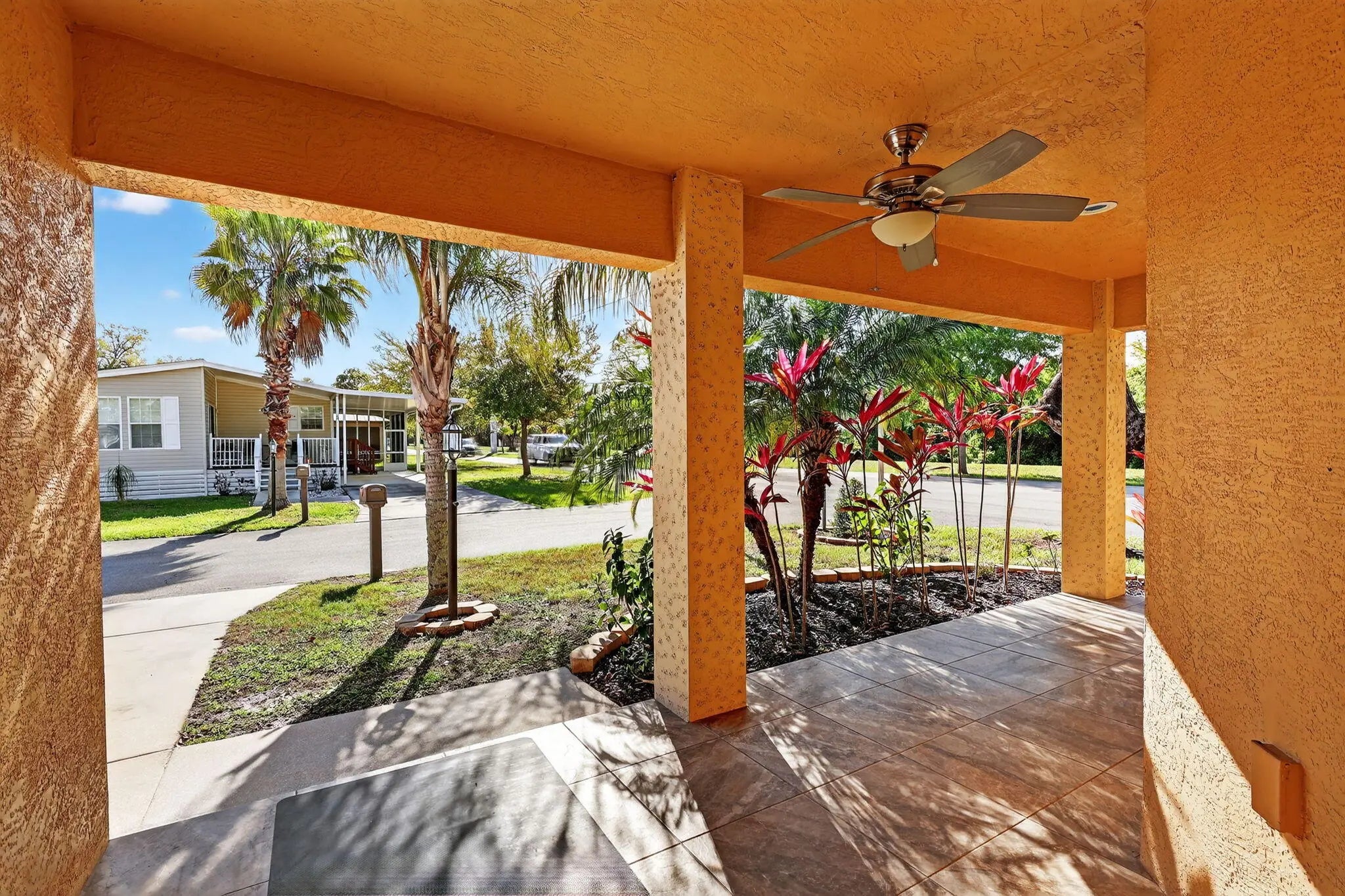 ELEGANT,DURABLE,SAFE &AFFORDABLE this 2019 2bed/2bath home is BUILTtoLAST w/ Concrete Block Construction, IMPACT WINDOWS & MetalRoof built on 5/8'' Plywood for maxstrength. Corner Lot w/ tropical foliage for FrontPorch Privacy. Step inside &beauty continues w/ one of largest potential living space offered; OpenConcept,GRANITECounters, PlantationShutters for lighting & temp control, SS Appl, new Fridge, Garage w/ overheadStorage, Master w/ Walk-in Closet & dbl Sink Ensuite, LRG Window/Screened Lanai great for Grilling,Greenroom,Den,bedroom& more. PRIMELOCATION; beach,shopping,mall,grocery, bank,hospital,postal &more! Lot Lease 779.45 incl trash, lawn,Clubhouse w/Activities, Private FREEGolf,Heated Pool,Spa,Fitness,Pickleball,Tennis, Shuffleboard,Bocce,Library, Bingo, MahJong,Workshop &more!