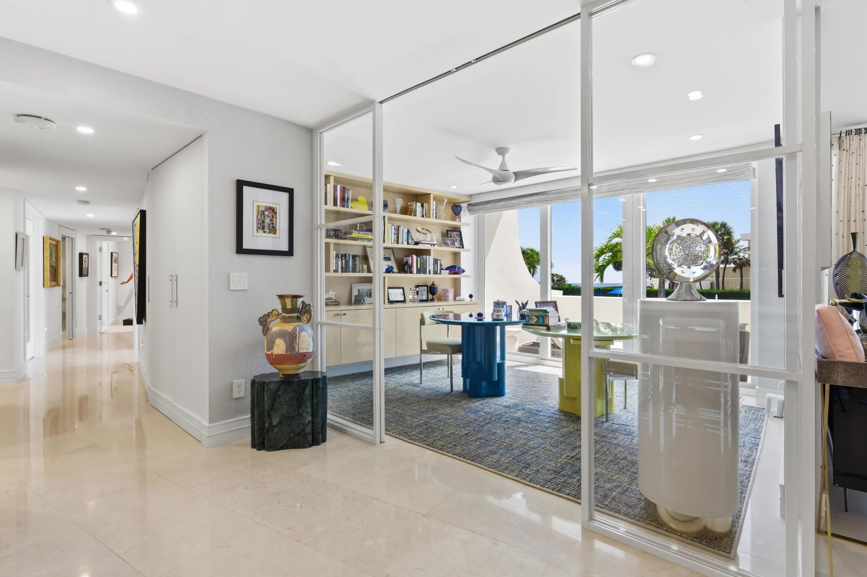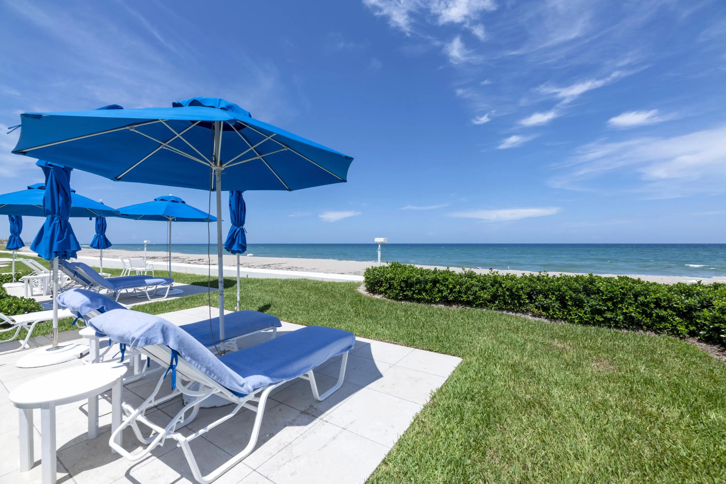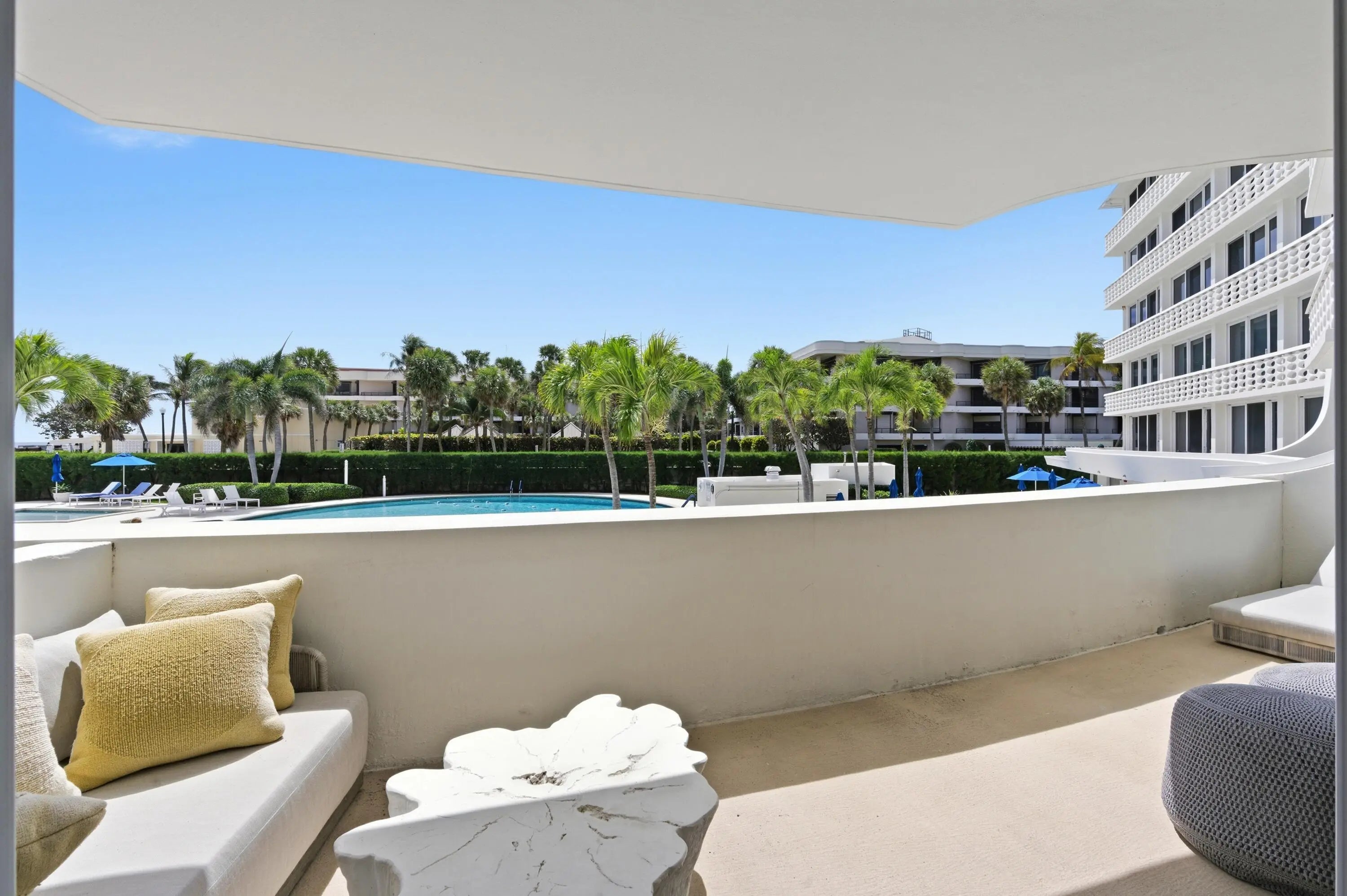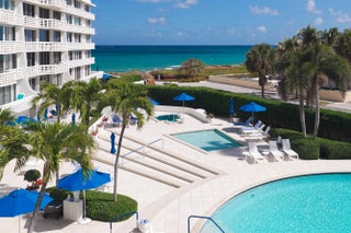This beautifully renovated four-bedroom, four-bathroom residence with a separate den offers over 3,000 square feet of refined coastal living within 100 Sun & Surf, one of Palm Beach's most sought-after oceanfront condominiums, and represents one of the building's larger and more flexible floor plans. This unique layout created by combining two units offers expansive living space rarely found within the building. Light-filled interiors capture views toward the Atlantic and open to approximately 400 square feet of private balconies that bring in ocean breezes. Meticulously renovated with exceptional materials and craftsmanship, the home offers a truly move-in-ready opportunity. The open kitchen features Cambria quartz countertops and premium Sub-Zero and Wolf appliances. Marble and limestone flooring, beautifully finished quartz bathrooms, and designer plumbing fixtures from Kohler, Toto, Grohe, and Duravit reflect the quality of the finishes throughout. Extensive custom millwork and built-ins provide exceptional storage while maintaining clean architectural lines. Modern comforts include integrated smart home technology, Lutron lighting, Somfy motorized shades, hurricane-impact glass doors, and a separate laundry room. 100 Sun & Surf is one of only three direct oceanfront condominium buildings in the Town of Palm Beach and enjoys a coveted "in town" location just moments from Worth Avenue, the Lake Trail, The Breakers, and Palm Beach's renowned restaurants and cultural venues. Residents enjoy full-service amenities including 24/7 doorman, valet parking, a fitness center, club room, and a resort-style pool and spa with dedicated attendants, along with direct access to one of Palm Beach's most beautiful stretches of beach. An exceptional opportunity to enjoy refined oceanfront living in one of Palm Beach's most sought-after buildings. 100 AND 130 SUNRISE AVENUE | PALM BEACH Sun and Surf is one of Palm Beach's premier resort-style buildings directly on the Ocean, and ideally located in town just a short way from The Royal, the supermarket and the shops and restaurants on the newly developed Royal Poinciana Way. Designed by Palm Beach architect Eugene Lawrence, and built by Arnold Construction in the late 1960s, the 6-acre, 240 unit complex featured restaurants, beauty shop and a spa. Today, its striking pierced white undulating balconies offer unmatched views of the Ocean, town and pool. And like the original, the Sun and Surf is one of Palm Beach's only building's offering resort-style amenities. Situated directly on the Ocean, the Sun and Surf offers residents direct beach access, two beautiful pools with umbrellas and chaise lounges. Each of the Sun and Surf's two buildings has its own intimate pool, set in a tropical oasis with the backdrop of estate homes, which is classic Palm Beach and quite tranquil. Pool and beach attendants stand waiting to assist with a beach towel or an ice cold glass of lemon-infused water. The luxury amenities include doorman with 24/7 security, valet, concierge, gym, spa, and luxurious cabanas overlooking the pool and the beach. Pool and beach cabanas come with some residences or often can be purchased separately from residents of the building, and are a luxurious way to spend the day. Sun and Surf residences have views over the pool, town and Ocean. The highly sought-after oceanfront condos are stunning with expansive views and premium prices - and only thing better is one with a matching cabana. The Sun and Surf offers the quintessential Palm Beach lifestyle direct on the sand.