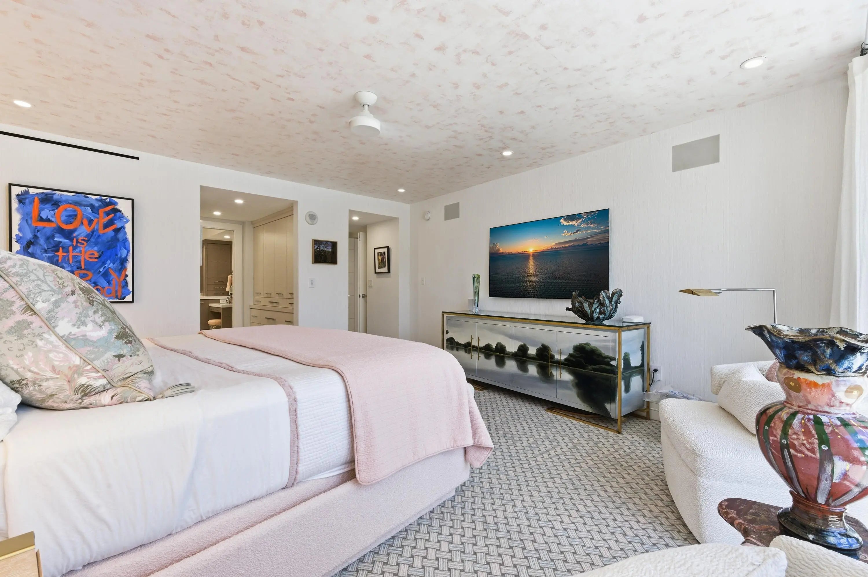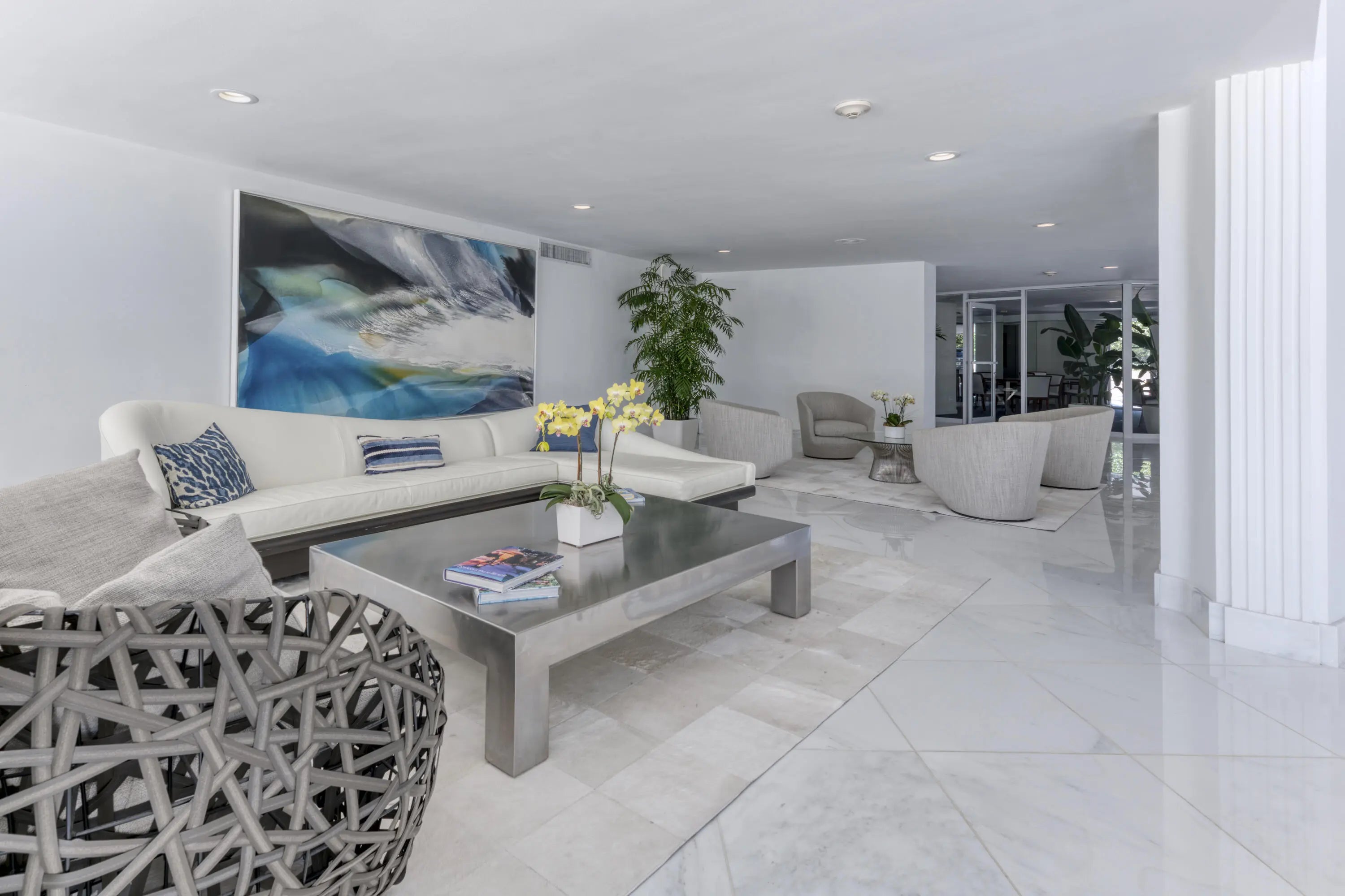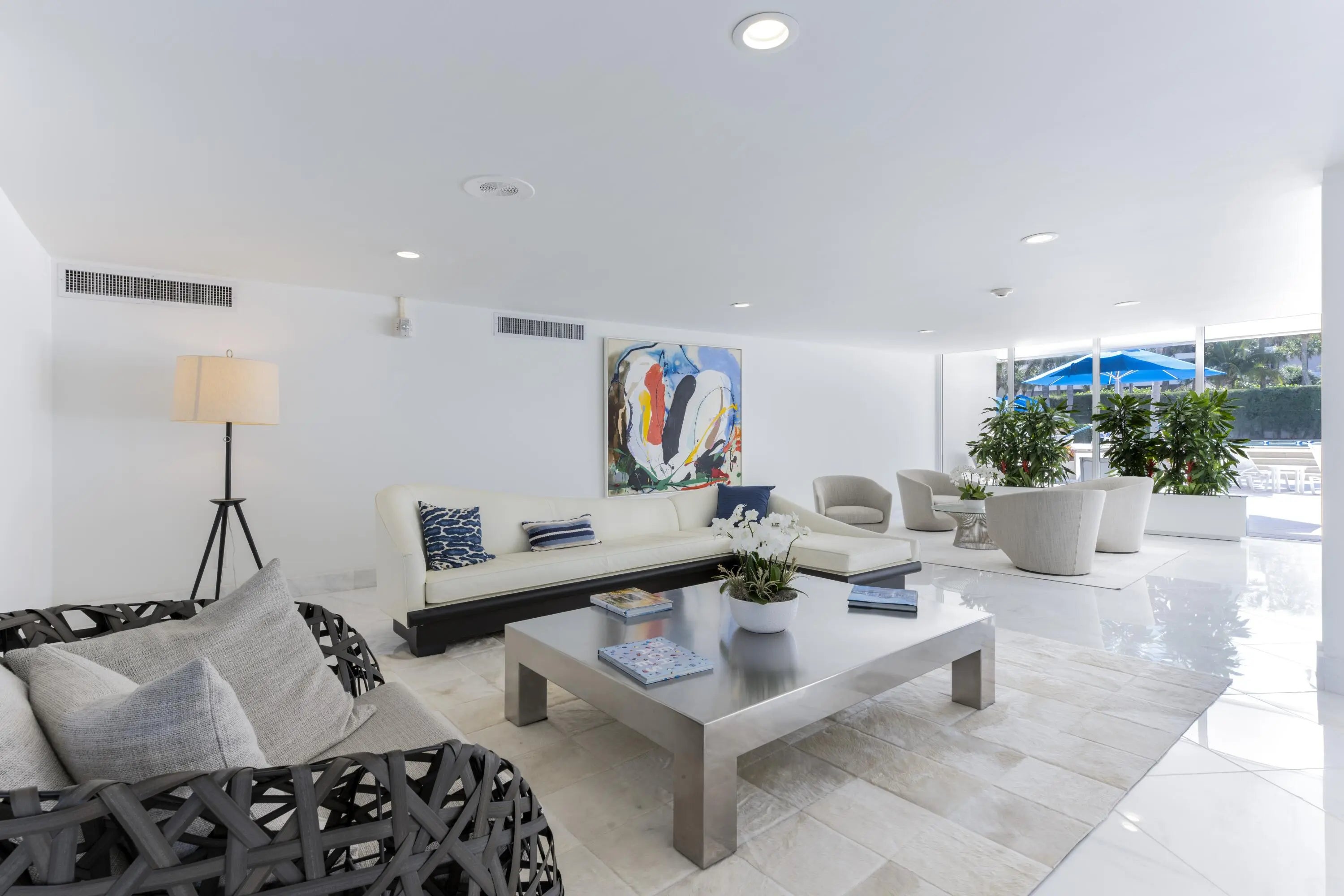 This beautifully renovated four-bedroom, four-bathroom residence with a separate den offers over 3,000 square feet of refined coastal living within 100 Sun & Surf, one of Palm Beach's most sought-after oceanfront condominiums, and represents one of the building's larger and more flexible floor plans. This unique layout created by combining two units offers expansive living space rarely found within the building. Light-filled interiors capture views toward the Atlantic and open to approximately 400 square feet of private balconies that bring in ocean breezes. Meticulously renovated with exceptional materials and craftsmanship, the home offers a truly move-in-ready opportunity. The open kitchen features Cambria quartz countertops and premium Sub-Zero and Wolf appliances. Marble and limestone flooring, beautifully finished quartz bathrooms, and designer plumbing fixtures from Kohler, Toto, Grohe, and Duravit reflect the quality of the finishes throughout. Extensive custom millwork and built-ins provide exceptional storage while maintaining clean architectural lines. Modern comforts include integrated smart home technology, Lutron lighting, Somfy motorized shades, hurricane-impact glass doors, and a separate laundry room. 100 Sun & Surf is one of only three direct oceanfront condominium buildings in the Town of Palm Beach and enjoys a coveted "in town" location just moments from Worth Avenue, the Lake Trail, The Breakers, and Palm Beach's renowned restaurants and cultural venues. Residents enjoy full-service amenities including 24/7 doorman, valet parking, a fitness center, club room, and a resort-style pool and spa with dedicated attendants, along with direct access to one of Palm Beach's most beautiful stretches of beach. An exceptional opportunity to enjoy refined oceanfront living in one of Palm Beach's most sought-after buildings. 100 AND 130 SUNRISE AVENUE | PALM BEACH Sun and Surf is one of Palm Beach's premier resort-style buildings directly on the Ocean, and ideally located in town just a short way from The Royal, the supermarket and the shops and restaurants on the newly developed Royal Poinciana Way. Designed by Palm Beach architect Eugene Lawrence, and built by Arnold Construction in the late 1960s, the 6-acre, 240 unit complex featured restaurants, beauty shop and a spa. Today, its striking pierced white undulating balconies offer unmatched views of the Ocean, town and pool. And like the original, the Sun and Surf is one of Palm Beach's only building's offering resort-style amenities. Situated directly on the Ocean, the Sun and Surf offers residents direct beach access, two beautiful pools with umbrellas and chaise lounges. Each of the Sun and Surf's two buildings has its own intimate pool, set in a tropical oasis with the backdrop of estate homes, which is classic Palm Beach and quite tranquil. Pool and beach attendants stand waiting to assist with a beach towel or an ice cold glass of lemon-infused water. The luxury amenities include doorman with 24/7 security, valet, concierge, gym, spa, and luxurious cabanas overlooking the pool and the beach. Pool and beach cabanas come with some residences or often can be purchased separately from residents of the building, and are a luxurious way to spend the day. Sun and Surf residences have views over the pool, town and Ocean. The highly sought-after oceanfront condos are stunning with expansive views and premium prices - and only thing better is one with a matching cabana. The Sun and Surf offers the quintessential Palm Beach lifestyle direct on the sand.