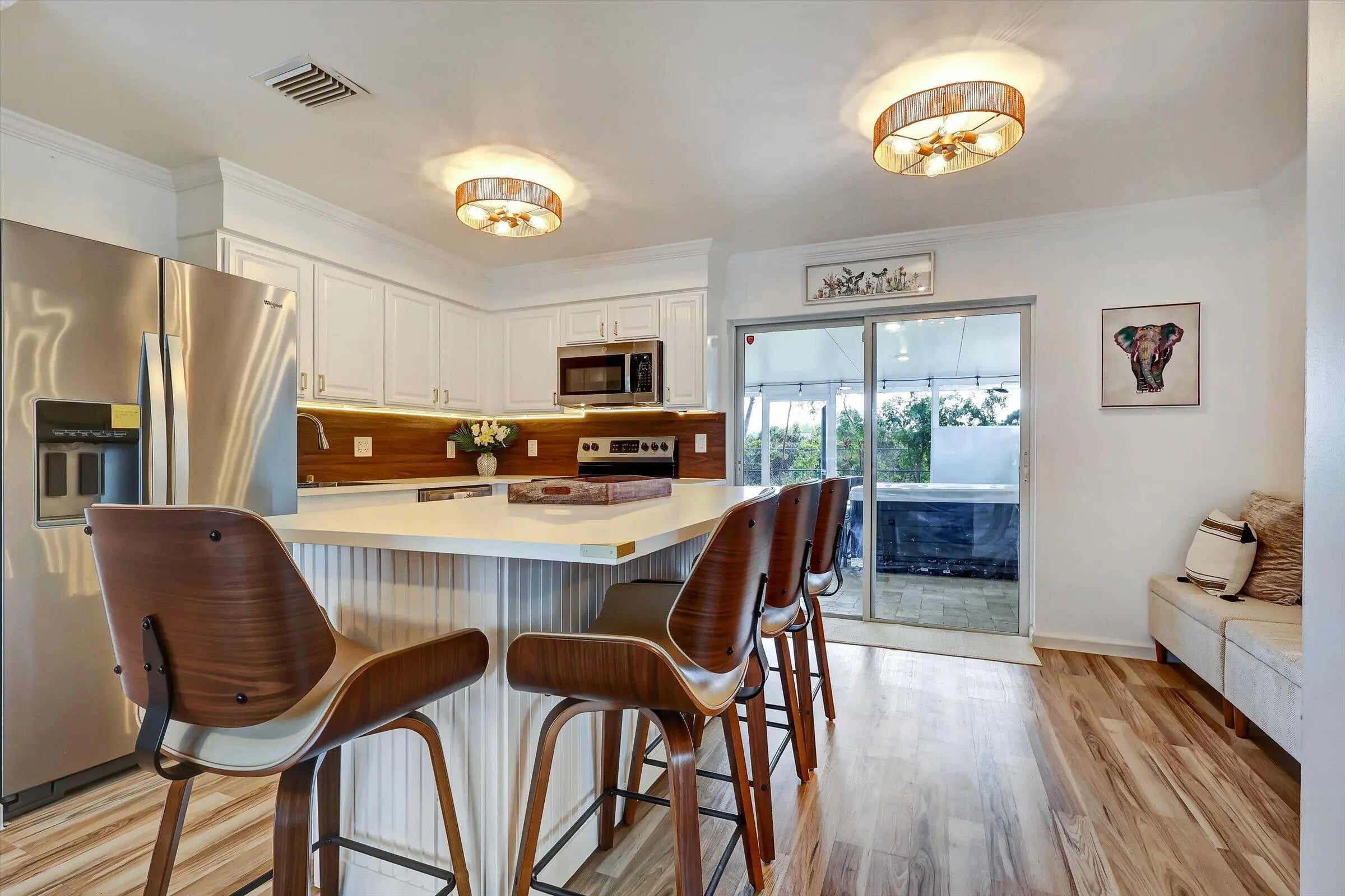 YOUR PRIVATE TURNKEY OASIS. Fully furnished, NO HOA, very quiet 3/2 offering approx. 1,200 sqft plus 430+ sqft screened outdoor living. Heated WELLIS SPA, large fenced backyard with no rear neighbors and rare PRIVACY. Bright, comfortable layout with seamless indoor outdoor flow, ideal for relaxing or entertaining. Move in ready or immediately rentable. Prime condition with 2024 AC and 2016 roof. Zoned for The Conservatory School at North Palm Beach, a sought after public magnet for gifted and music programs (K 8). Quiet yet convenient location minutes to beaches, shopping, dining and I 95. A must see to appreciate the setting, comfort and lifestyle. ALL furniture and essentials included, making the home move in or guest ready from day one. The screened porch with natural Travertine flooring extends daily living. Appliances updated between 2020 and 2025. Convenient access to parks, beaches, marina, dining, shopping and nearby schools and universities.