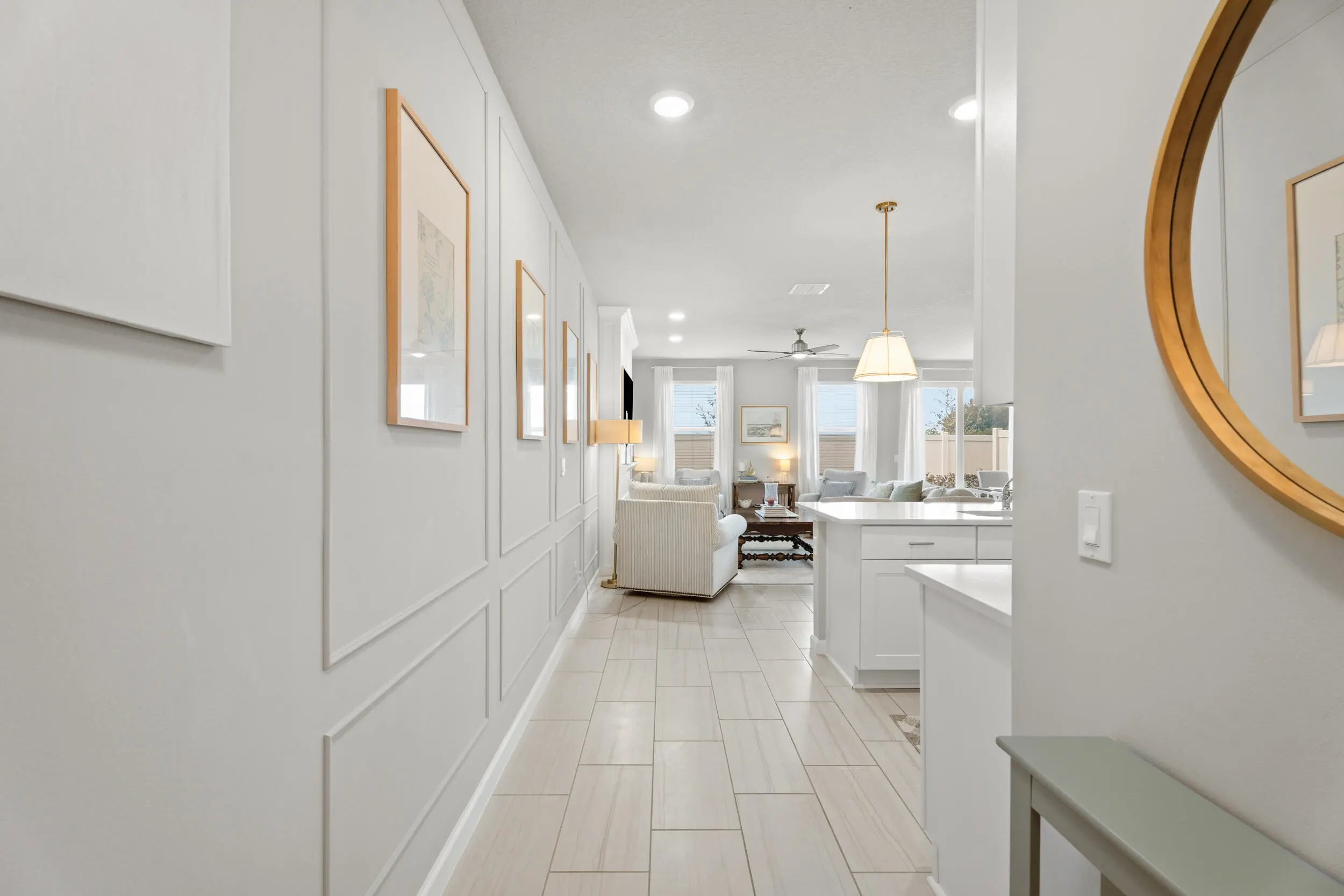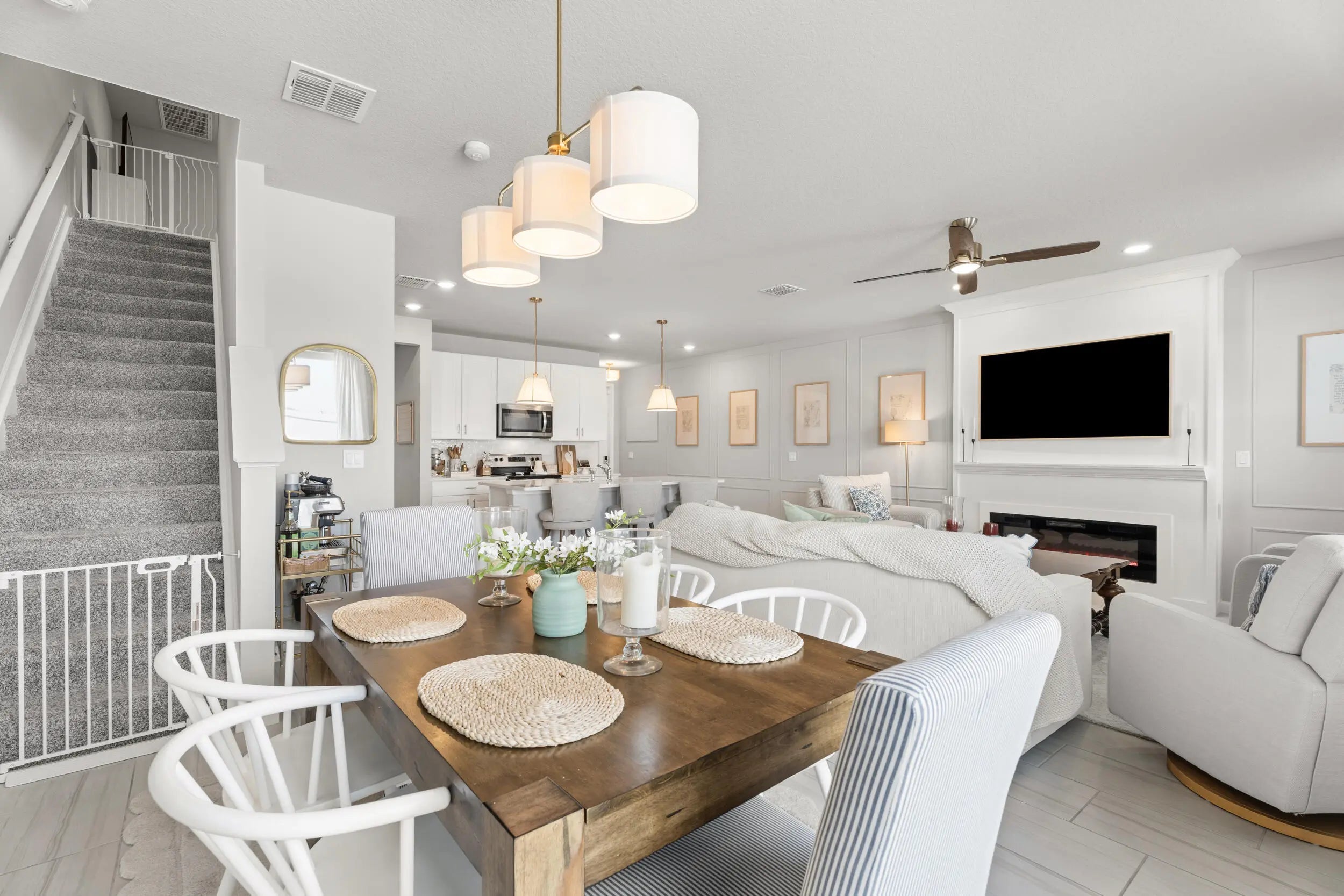 This 2024-built, 3-bedroom, 2.5-bath residence with a 2-car garage offers 1,808 sq ft of bright, open living with clean lines and effortless flow throughout. A versatile loft provides the ideal flex space for a home office or additional living area, while a fireplace anchors the living room, adding warmth and a refined focal point. Complete impact glass offers peace of mind, and energy-efficient construction enhances long-term comfort and savings. Located within the gated community of Edgewater Pointe, residents enjoy a private pool and cabana, just minutes from beaches, top-rated schools, and downtown Stuart. Finished with the Sleek Package featuring 42" white cabinetry, Simply White quartz countertops, 12" x 24" Skybridge Gray tile, and multi-tone tweed carpet for a clean, modern feel.