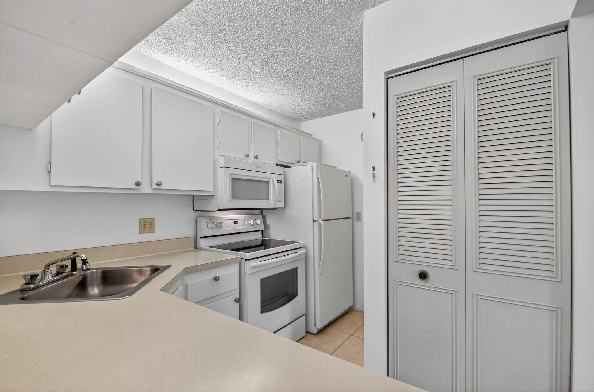 Come home to your all-ages, 2-bed/2-bath 2nd floor condo. The kitchen cabinetry has just been refinished in bright white. The living area is tiled while there is comfy carpet in the bedrooms to wake up to. Need some fresh air and peace? Step out onto your tiled, covered balcony. Your (25 lb. maximum weight) dog is welcome in this pet friendly community. Pine Ridge North II has lovely landscaping with mature trees and a lake. Amenities include a pool, tennis courts, shuffleboard and a grilling/picnic area. Okeeheelee Park is close by offering events and activities on a regular basis. Shopping centers, restaurants, entertainment venues, schools, highways are easily accessible.