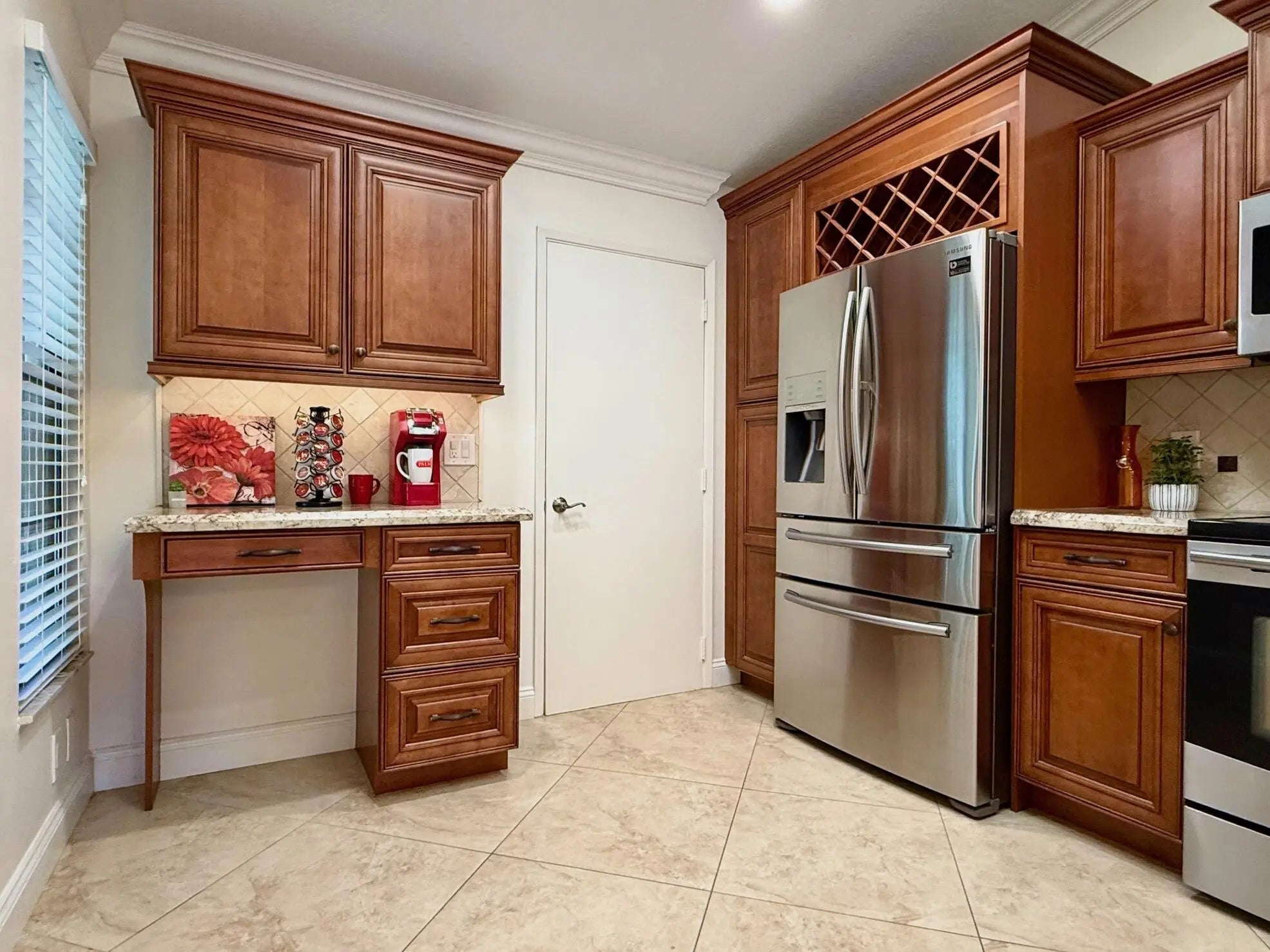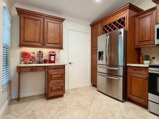 Updated 2-Bedroom, 2-Bath Villa in Palm Chase - Freshly Painted! Gorgeous Kitchen with Wood Cabinets, Granite Countertops & Stainless-Steel Appliances +Coffee Bar with Desk. Counter Dining. Open Living/Dining Area. Tiled Throughout with Laminate Flooring in the Primary Bedroom. Recently Updated Master Bathroom with Large Vanity, Linen Cabinet & Plenty of Counter Space. Shower with River Rock & Glass Doors. Private Views from Lanai. Full Coverage Accordion Hurricane Shutters & Upgraded Electrical Panel. Garage has a TESLA Charger. Palm Chase is a Desirable 55+ Community with a Beautiful 1/4-mile Drive to a Gated Entrance. Clubhouse offers a Heated/Cooled Pool, 2 New Pickleball Courts, Tennis, Bocce as well as a Billiards Room, Card Rooms, 2 Fitness Rooms, Ping Pong & More! ESA Pets Allowed.