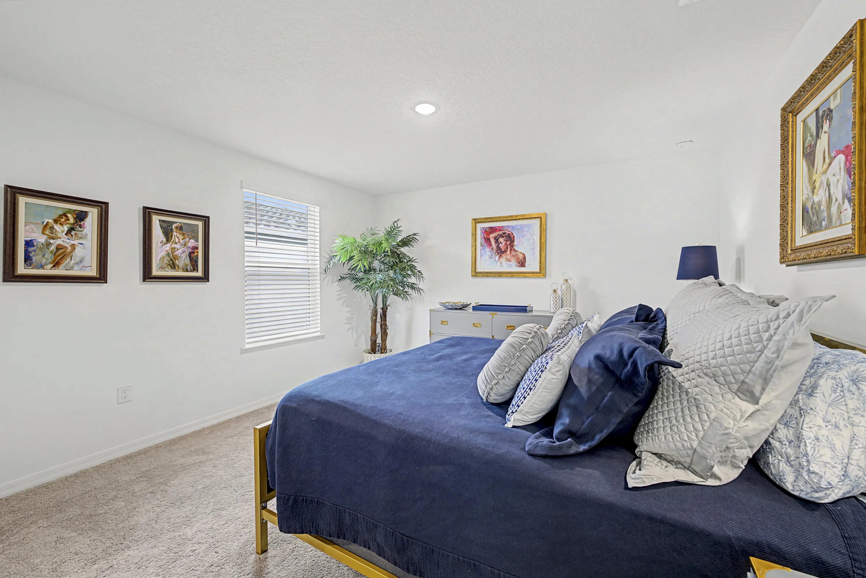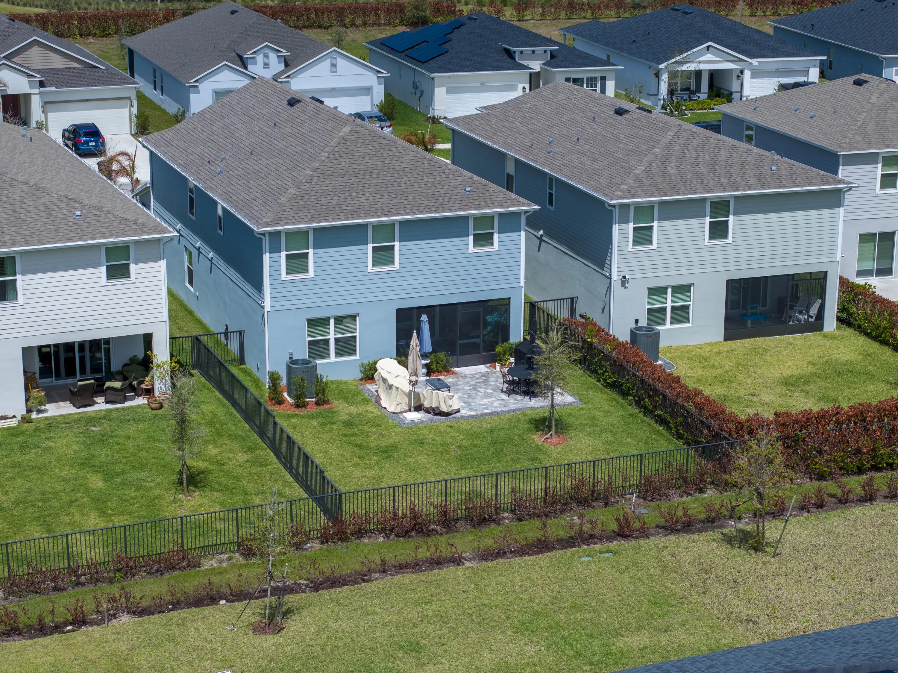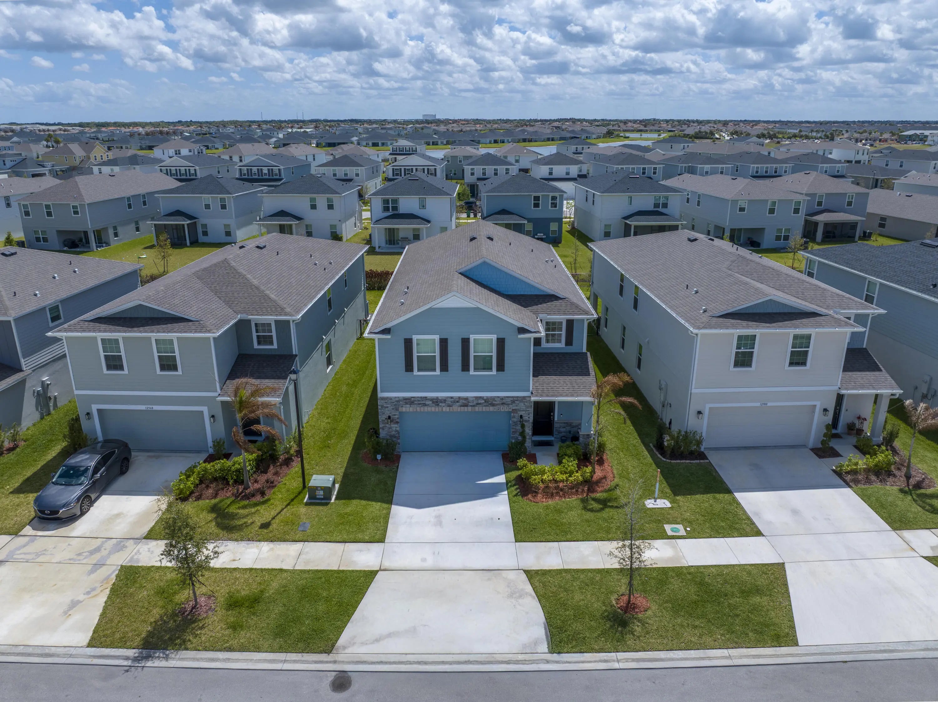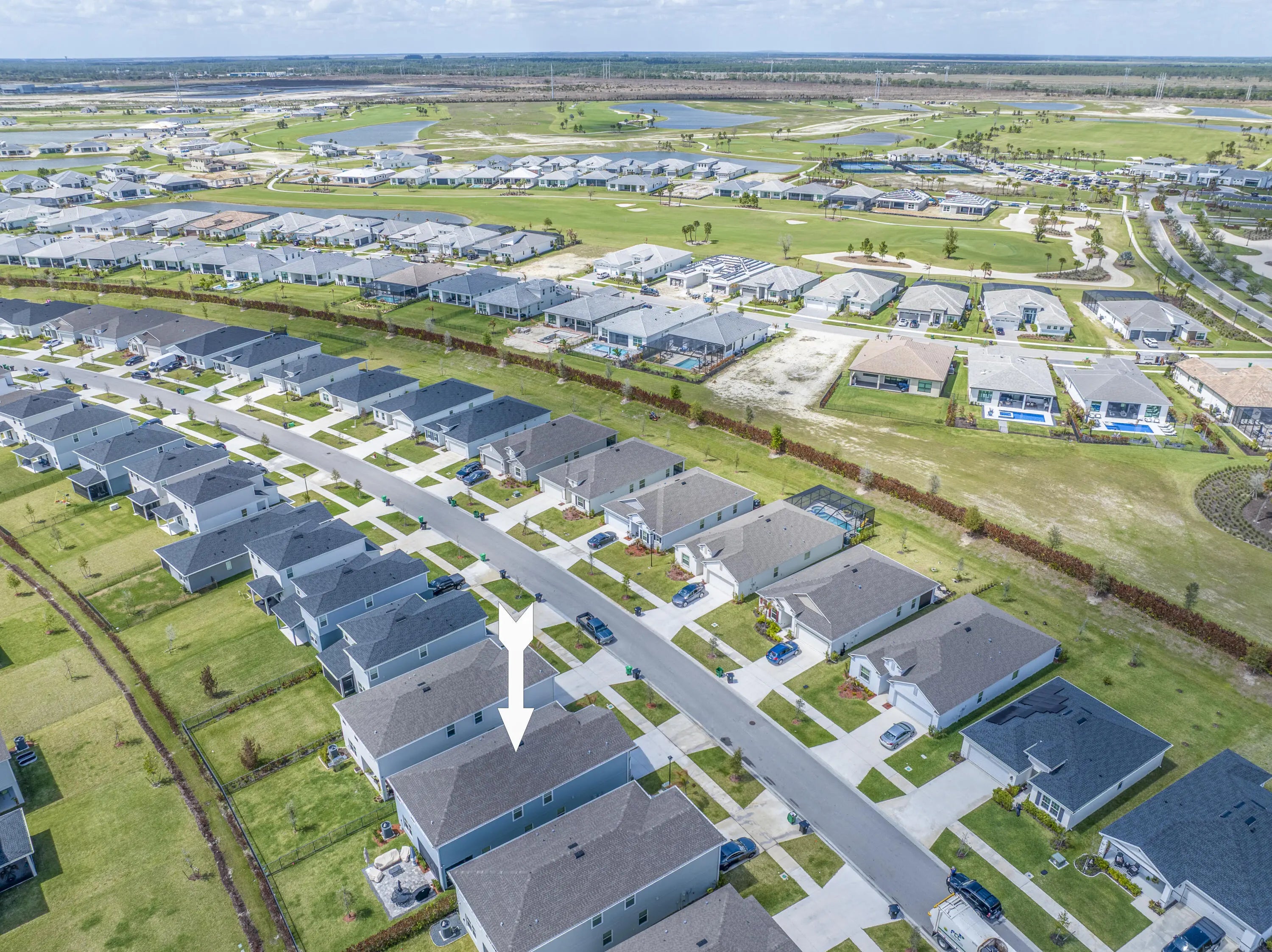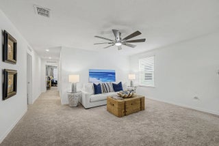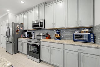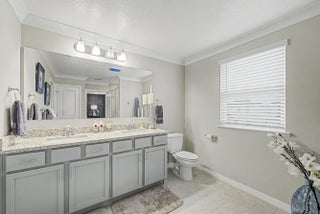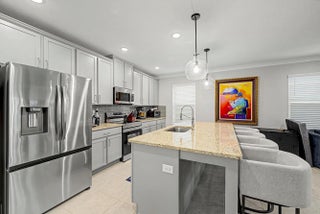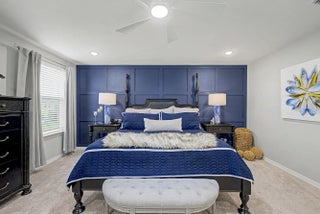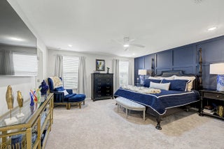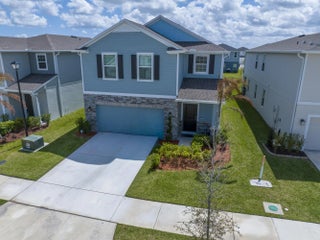 Stunning 2024-built two-story home in Port St. Lucie featuring 5 bedrooms and 5 baths (4 full, 1 half), including rare dual primary suites—one upstairs and one down perfect for multi-generational living or guests. Bright open floor plan with foyer chandelier, high hat lighting, custom woodwork, crown molding, tile flooring, and window treatments throughout. Gourmet kitchen boasts upgraded appliances, tile backsplash, modern faucet, cabinet hardware, and custom pantry shelving. Exterior offers full impact windows/doors, gutters, fenced yard, screened lanai, paver patio, stone façade, carriage lights, and epoxy garage floor. Move-in ready!