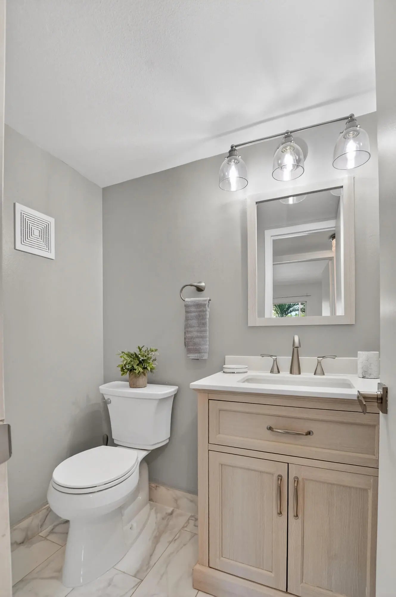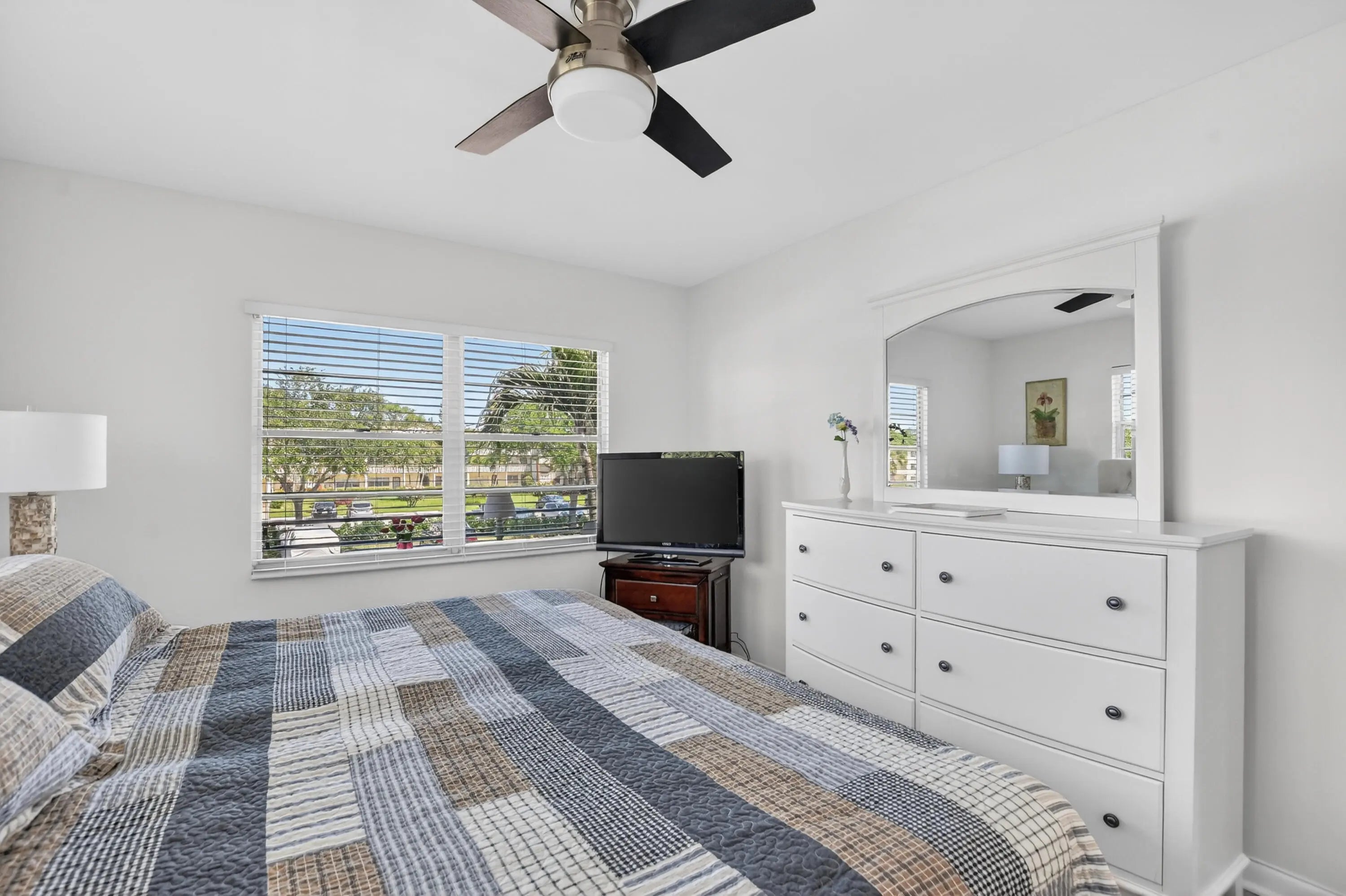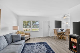 Beautifully renovated 2nd floor corner condo in Century Village Boca! This bright, modern unit features kitchen dining layout with custom whitewood cabinetry, quartzite countertops, tile backsplash, and stainless-steel appliances. The windows in the living area creates excellent flow and natural light. The home offers a fresh, contemporary look with neutral freshly walls and ceramic tile in the kitchen and bathroom. Beautiful light wood look flooring throughout. Spacious living and dining areas provide comfortable everyday living and entertaining space. The condo includes 1.5 renovated bathrooms, The renovated accessible shower with bench, has a l warranty from bath fitters. Both bedrooms enjoy outdoor views, also visible from the enclosed lanai. The lanai offers a peaceful and light filled and deck-like flooring. 2022 Air Conditioner Upgraded, Electrical Panel, Renovated shower, full shower seat, high gloss acrylic, safety bar, lifetime warranty Safety Bars in Bathrooms 'All closets custom built out, pantry added to kitchen. 2023 Screening on Balcony ,All closets custom built out, pantry added to kitchen. 2023 Water heater and Fan added to dining area. The beautiful furniture in this condo is negotiable. Century Village Boca is a premier 55+ community with exceptional amenities, including multiple pools, fitness center, tennis, pickleball, biking and walking paths, clubs, classes, and a complimentary internal bus system with connections to city transit. Move in ready and beautifully updated—don't miss this opportunity!
