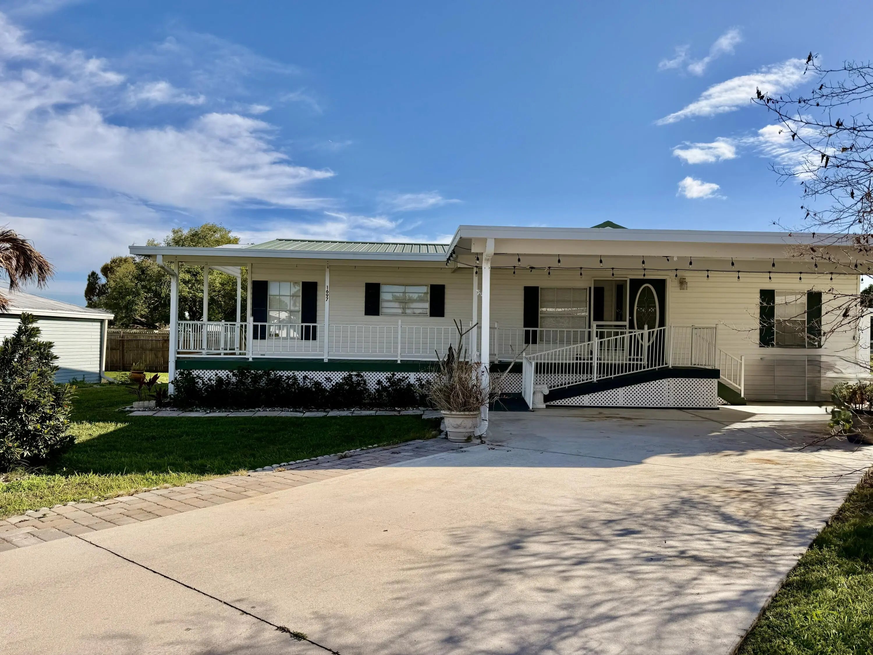 SEMINOLE COVE SENSATION! Beautifully updated 3 Bd/ 2 Ba -Top Notch -HOMES OF MERIT. Lovely open concept and split plan. NEW LVP flooring throughout. NEW white Shaker cabinets with brushed gold hardware. Granite counters, Pantry and NEW appliances. Sweet breakfast nook. Master suite has separate shower and soaking tub. Covered front porch with ramp and steps. 1296 SF under air- 2157 TLA. Storage Room. 2023 HVAC, Metal Roof. Covered parking. Perfection on a cul-de-sac! This HAPPY HOME Awaits YOU! Dimensions are approximate, must measure for exact.