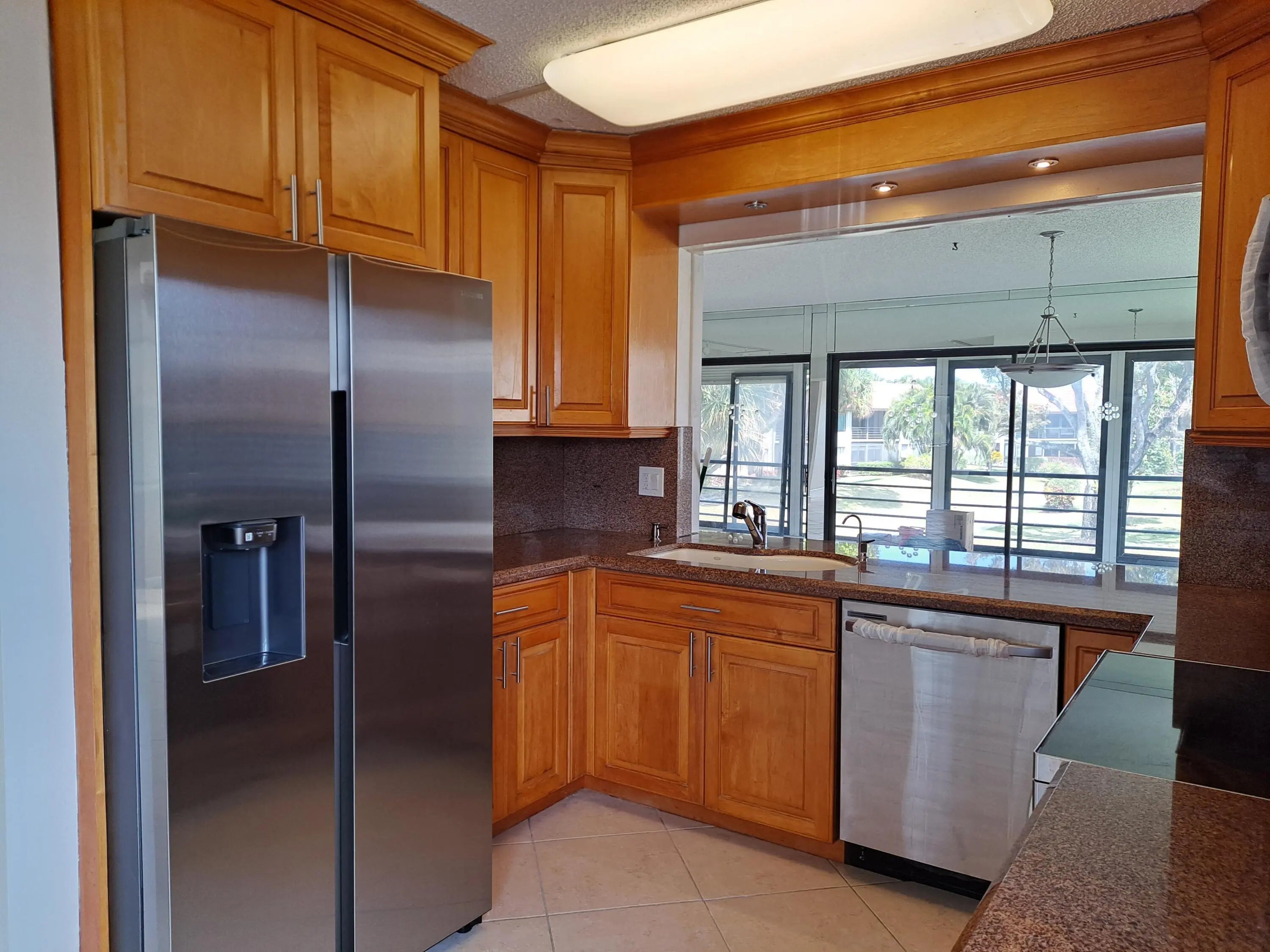 Located in the desirable Indian Spring community, this spacious end-unit condo offers an ideal blend of comfort, light, and lifestyle. Designed for active 55+ living, the home enjoys expansive east, south, and west exposures, filling the space with natural light and peaceful views from every angle. This immaculate, move-in-ready residence features a custom eat-in kitchen with granite countertops, pull-out shelving, and matching stainless steel appliances. The cohesive design continues throughout with tile flooring in every room, including closets and bathrooms, along with beautifully coordinated cabinetry. The current layout includes a generously opened living area, where the third bedroom has been thoughtfully expanded to create a bright, airy space perfect for entertaining, or hobbies.