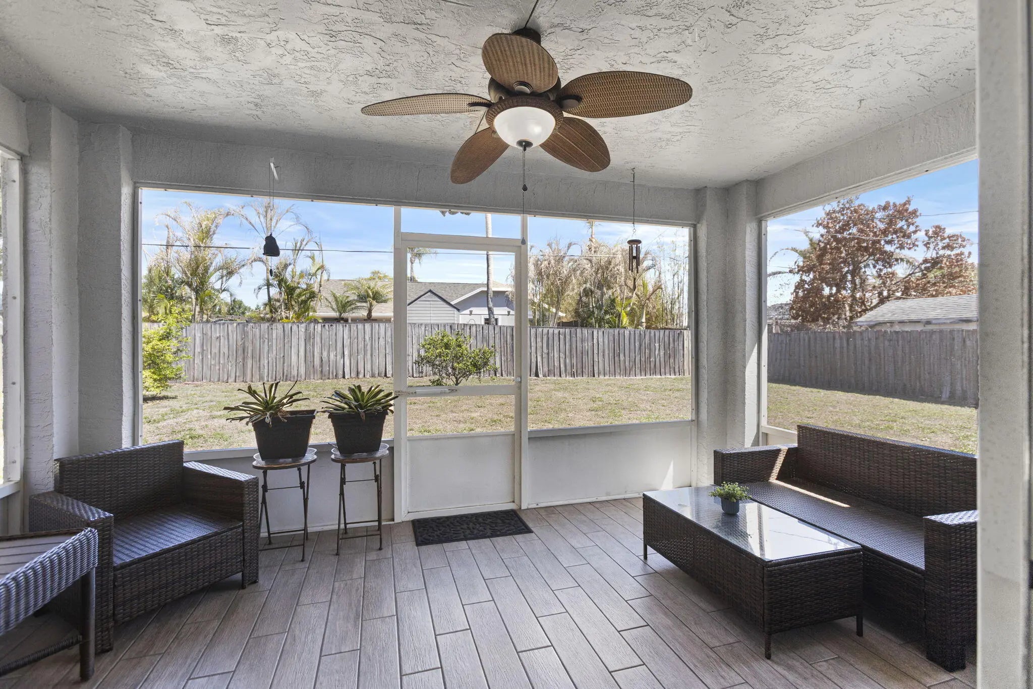 No HOA! Beautiful 4BR/2BA Port Saint Lucie home with updates throughout. Features include 2025 luxury vinyl flooring in main living areas, tile in bedrooms and baths, granite countertops in kitchen and bathrooms, upgraded appliances, and updated mirrors and fixtures. Relax on the tiled screened-in porch with updated screens and kick plates, overlooking a fully fenced yard with fruit trees, perfect for entertaining. Additional upgrades include full gutters, fenced in A/C condenser, HVAC (2023), roof (2025), and exterior painted (2026). Refrigerator, dining room light fixture, and exterior cameras do not convey. Some furniture is negotiable.