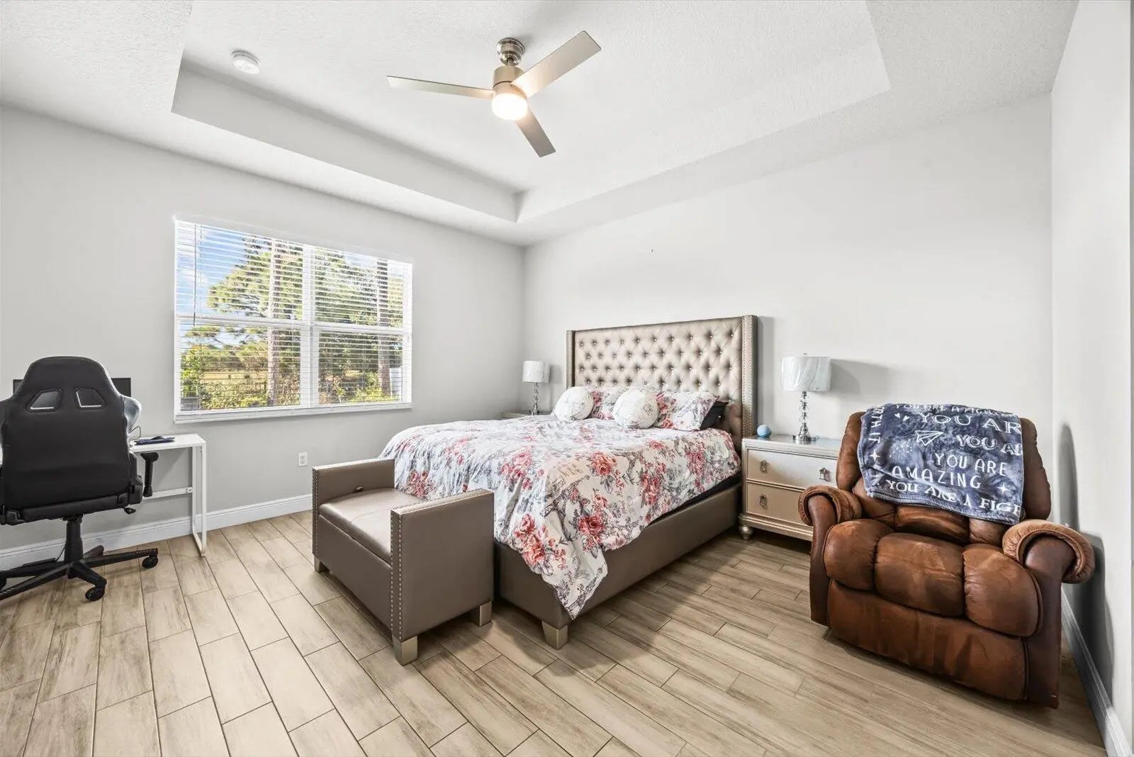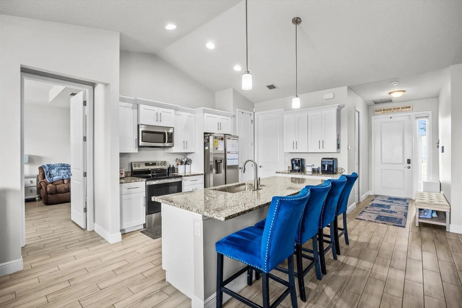Welcome to this stunning 1st Story 2020-built home that offers 4 Bdrm/ 2.5 Bath/ 2 CGarage, a near 2200 Living SqFt, and a Beautiful Modern Design, Energy Efficiency, and Peace of Mind! This home features full Hurricane-rated Impact Glass and doors! Enjoy tile flooring throughout, high ceilings, and a bright open layout. The split-bedroom design provides privacy, while the designer kitchen boasts granite counters and stainless steel appliances. The Primary Suite has a Spa-Like Bathroom w/soaker tub, separate shower & 2 Vanities. No HOA, Located in a Quiet & Desirable neighborhood; Backyard is Fully Fenced & close to I-95. This Green Home includes Solar Panels, keeping electric bills around $25-$70 mo. (Seller would like to split the cost of solar panels at closing.) Call Today For an Appt!