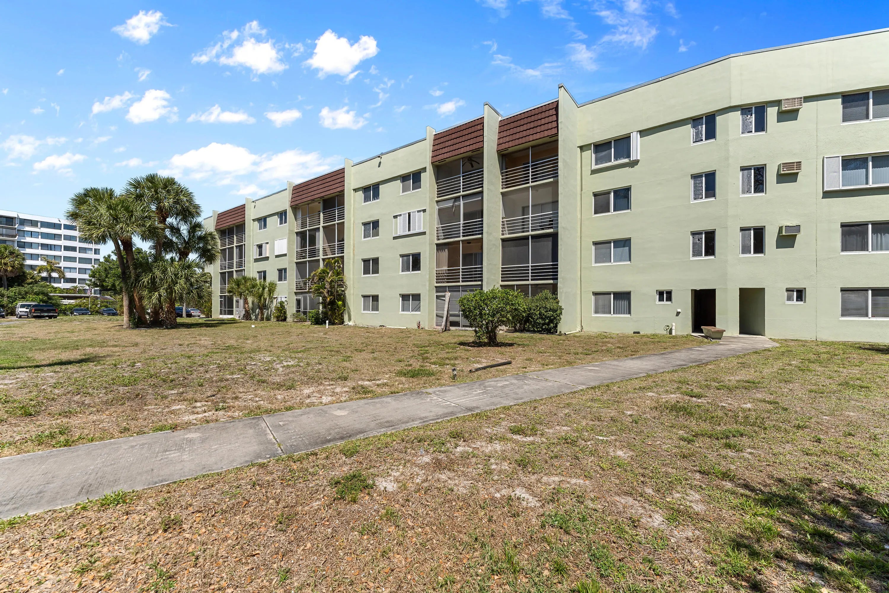 Well maintained 2-bedroom, 2-bath condo located on the second floor of a 4-story building. The unit features updated flooring, fresh interior paint, and refreshed kitchen cabinetry. Bathrooms are in original condition. Screened balcony and hurricane shutters included. Community with no age restrictions. Building amenities include elevator access and shared laundry facilities. Association fee covers water, sewer, and trash. Centrally located with convenient access to shopping, dining, major highways, Palm Beach Outlets, Tri-Rail Station, CityPlace, Palm Beach International Airport, and a short drive to the beaches Partially updated interior. Bright unit with functional layout. Convenient location near major roadways and local amenities