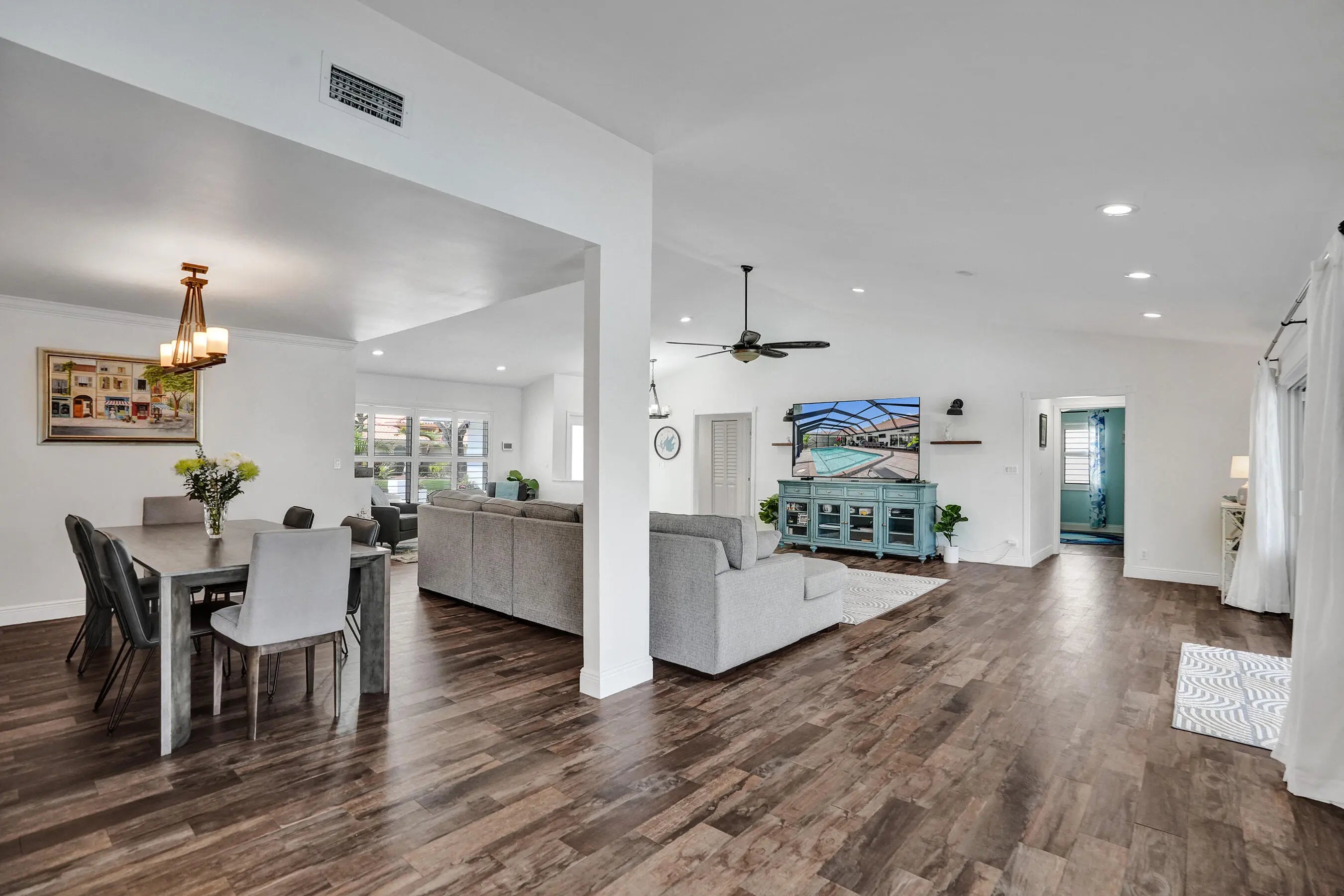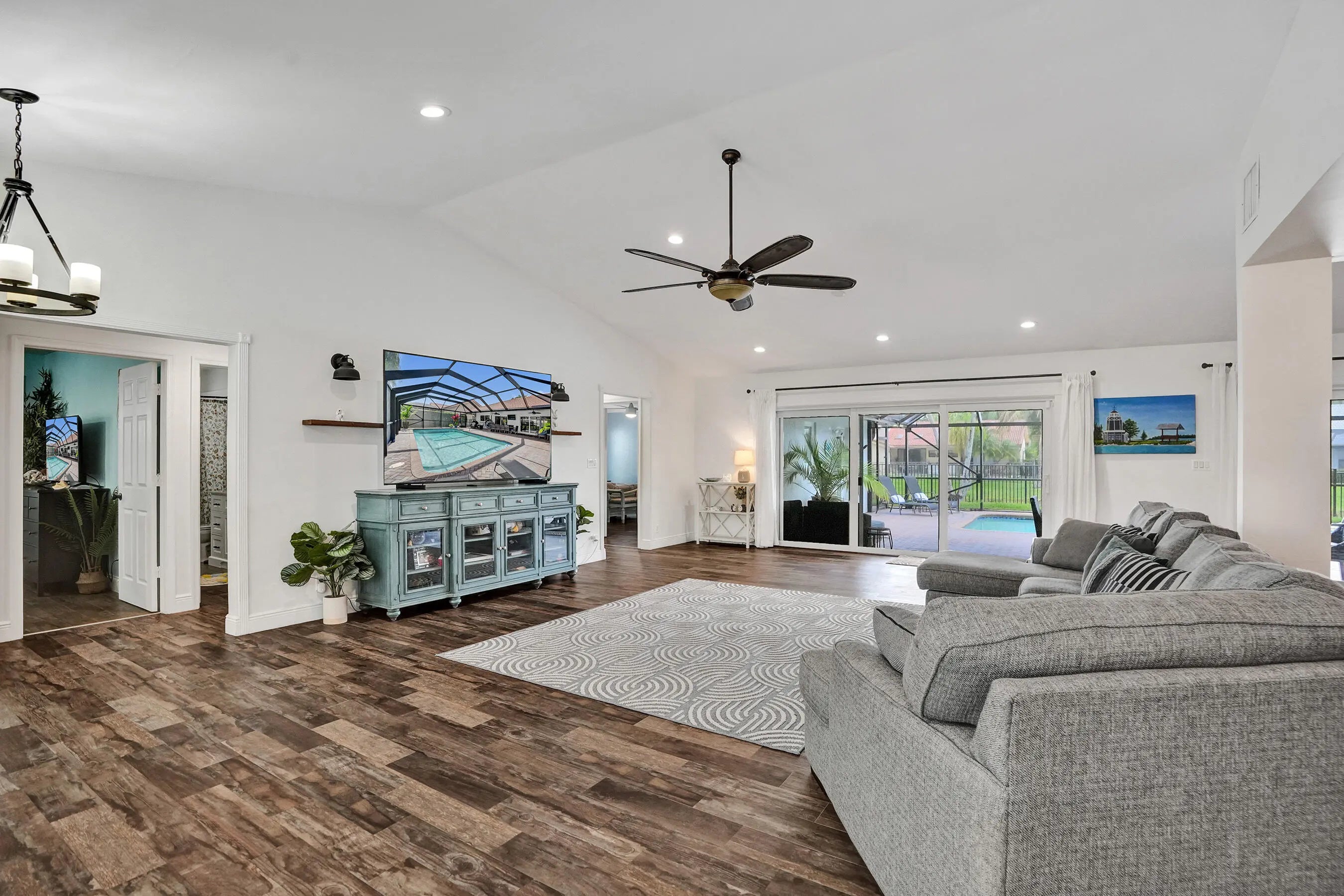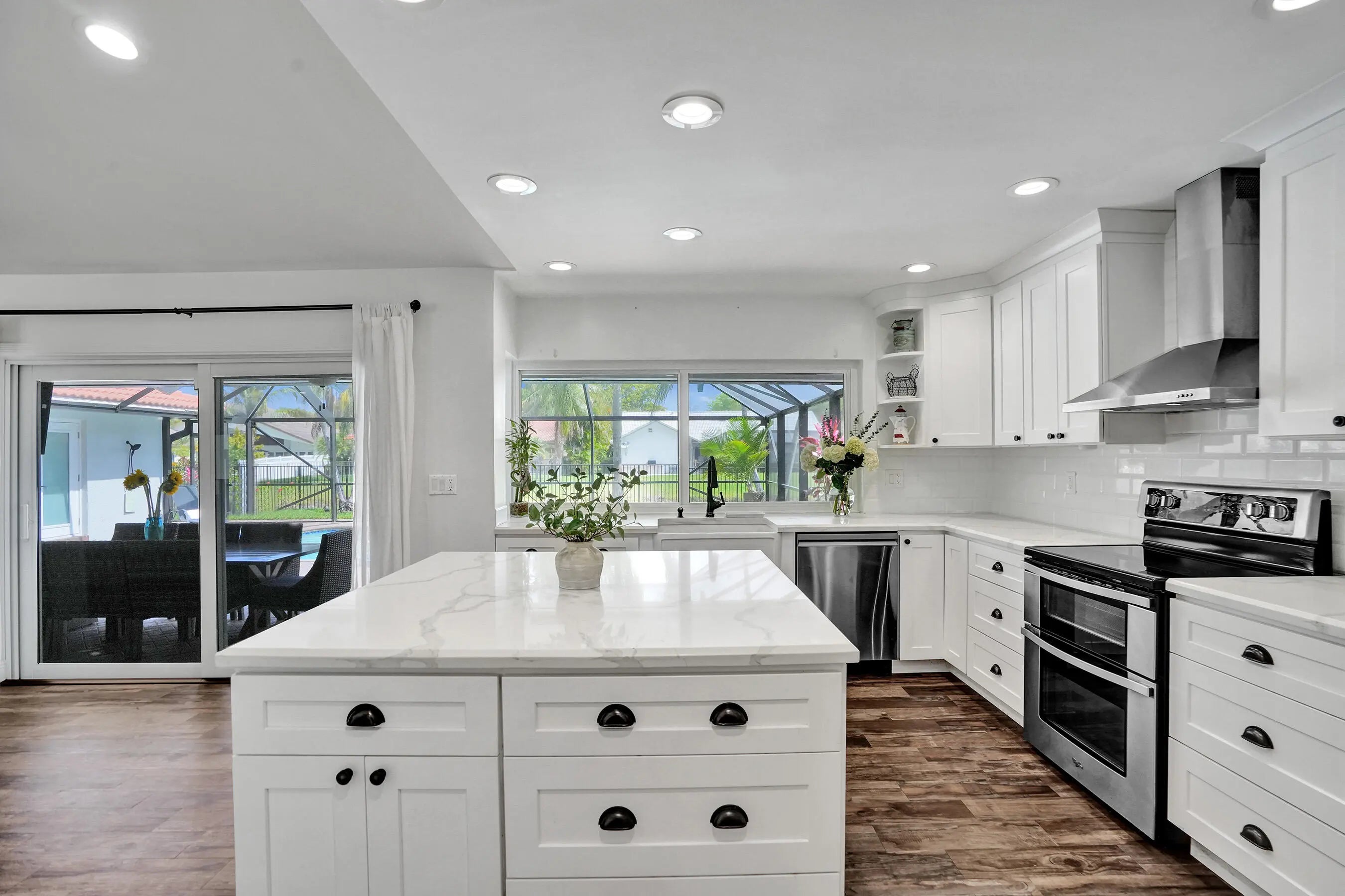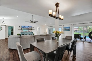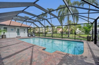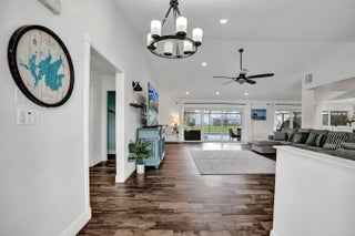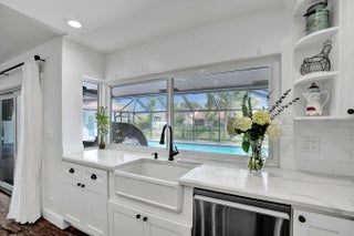 Set within the gated community of Ridgeview, this renovated single story waterfront home offers space, privacy, and modern design. With no rear neighbors, the backyard features a heated saltwater pool, outdoor shower, and water views. Inside offers four spacious bedrooms and a flowing layout with a light coastal feel. The kitchen includes a quartz island with a beveled edge, updated appliances, and modern finishes. The primary suite offers cabana access and a spacious en suite bath. Impact windows and doors, along with a newer AC, water heater, and extensive updates, enhance the home's move in ready appeal. Join Us for a Twilight Open House on April 3 from 5-7 pm & Open House on April 4 from 12:00-3:00 pm Impact windows/doors 2024,New Salt System Pool 2025, Pool heater 2025, Aqua IQ & led lights 2025,AC 2020,Water Heater 2025,Plantation Shutters throughout 2025,Gutters 2025,Washer/Dryer
