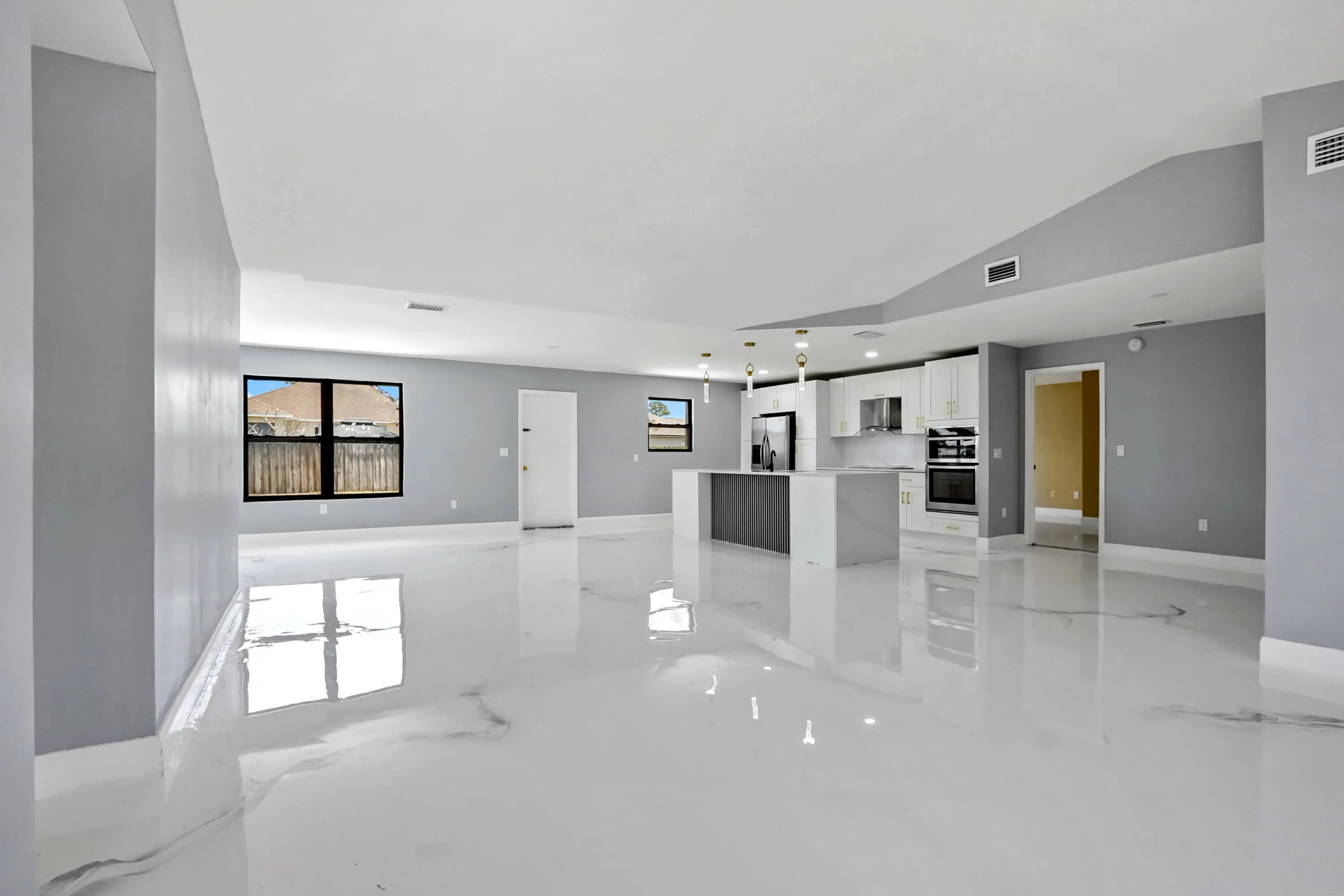 Welcome to this beautifully updated 3-bedroom, 2-bathroom home offering over 1,700 sq ft of move-in ready living space in a convenient Port St. Lucie location. Situated on a spacious lot, the property features a large backyard with plenty of room to relax, entertain, or customize to your liking. The interior has been fully updated, showcasing a modern design throughout. The kitchen features sleek quartz countertops, updated cabinetry, and a clean, contemporary feel that flows seamlessly into the main living areas. Both bathrooms have been tastefully renovated, and new flooring runs throughout the home, creating a cohesive and stylish look. Additional features full impact windows, along with a 220-volt outlet suitable for electric vehicle charging. This home offers the perfect blend of comfort, style, and functionality—truly move-in ready. Schedule your showing today!