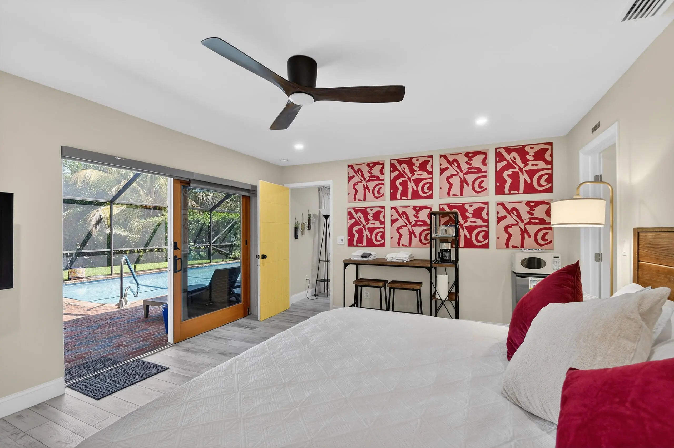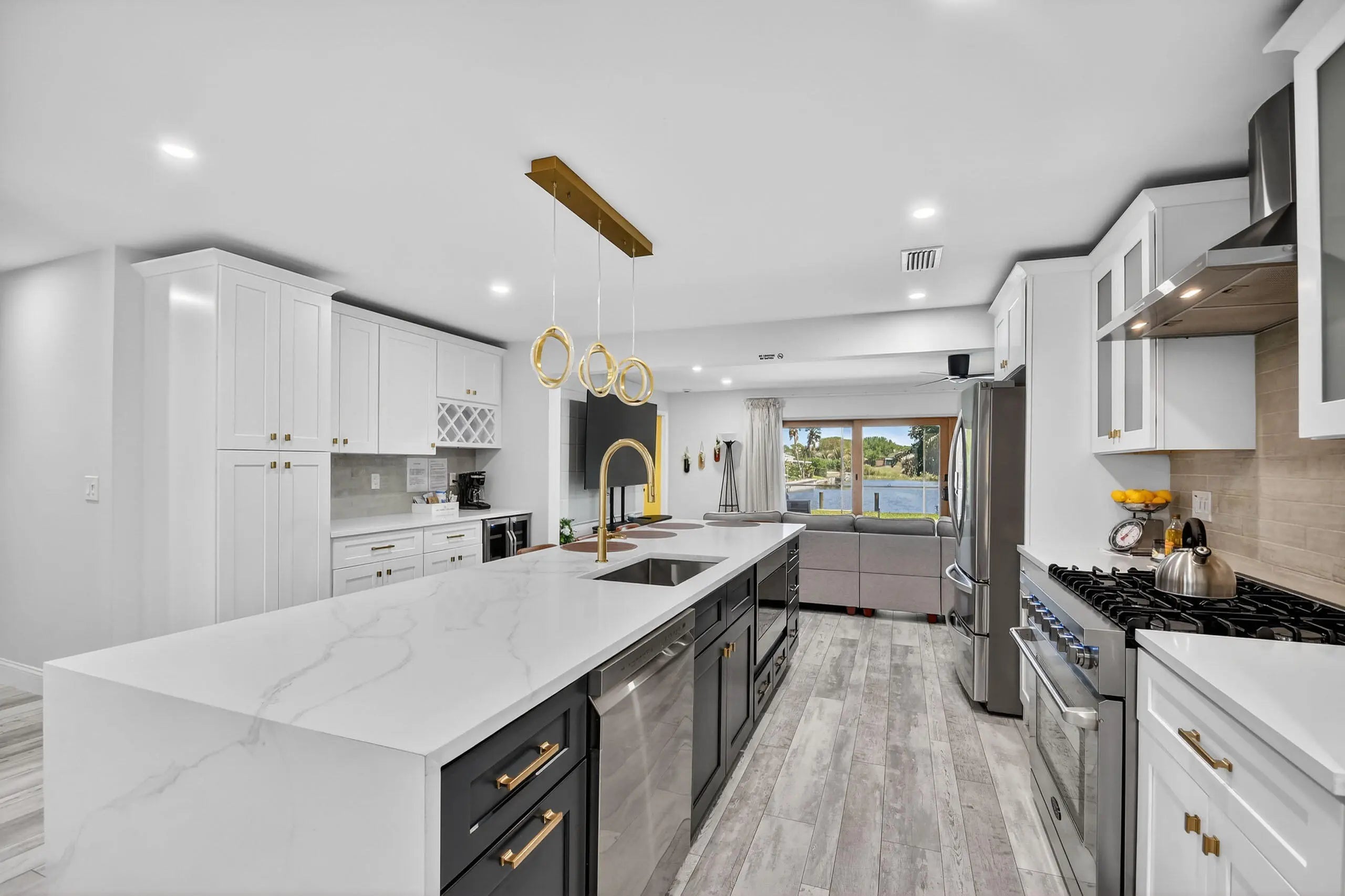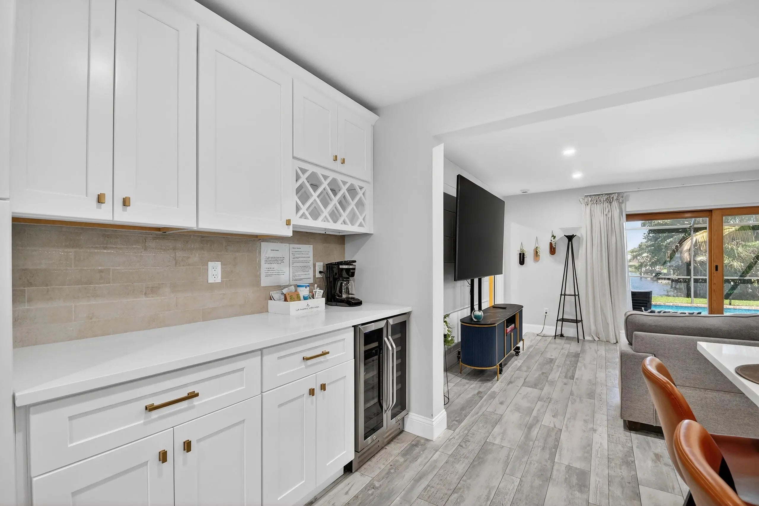 4-bedroom, 3.5-bath recently remodeled waterfront home in Lake Clarke Shores with NO HOA, offering over 2,100 sqft on a 0.26-acre lot. Enjoy canal and lake views with direct navigable access, plus a heated saltwater pool, screened patio, and inviting outdoor space for true South Florida living. The modern kitchen features a large island, gas stove, and dedicated coffee/bar station. A private 4th bedroom with its own bath and separate exterior entrance sits by the pool—ideal for guests or a mother-in-law suite. Separate driveway for boat/RV parking, 1-car garage, and sprinkler system. Located in a close-knit community of approximately 1,500 homes, known for its natural beauty, bird sanctuary, parks, trails, boat ramp access, and year-round events including BBQs, movie nights, and parades!