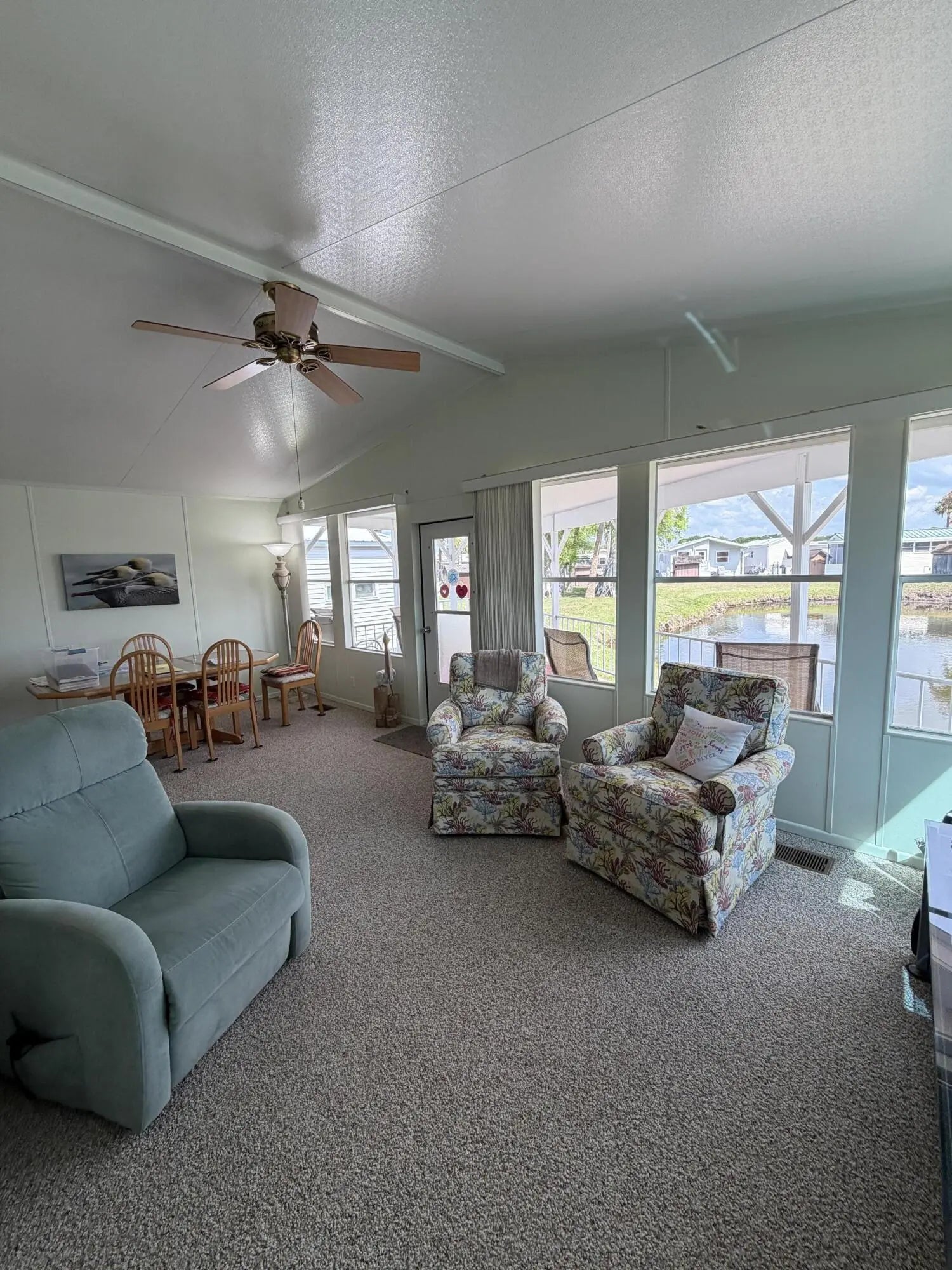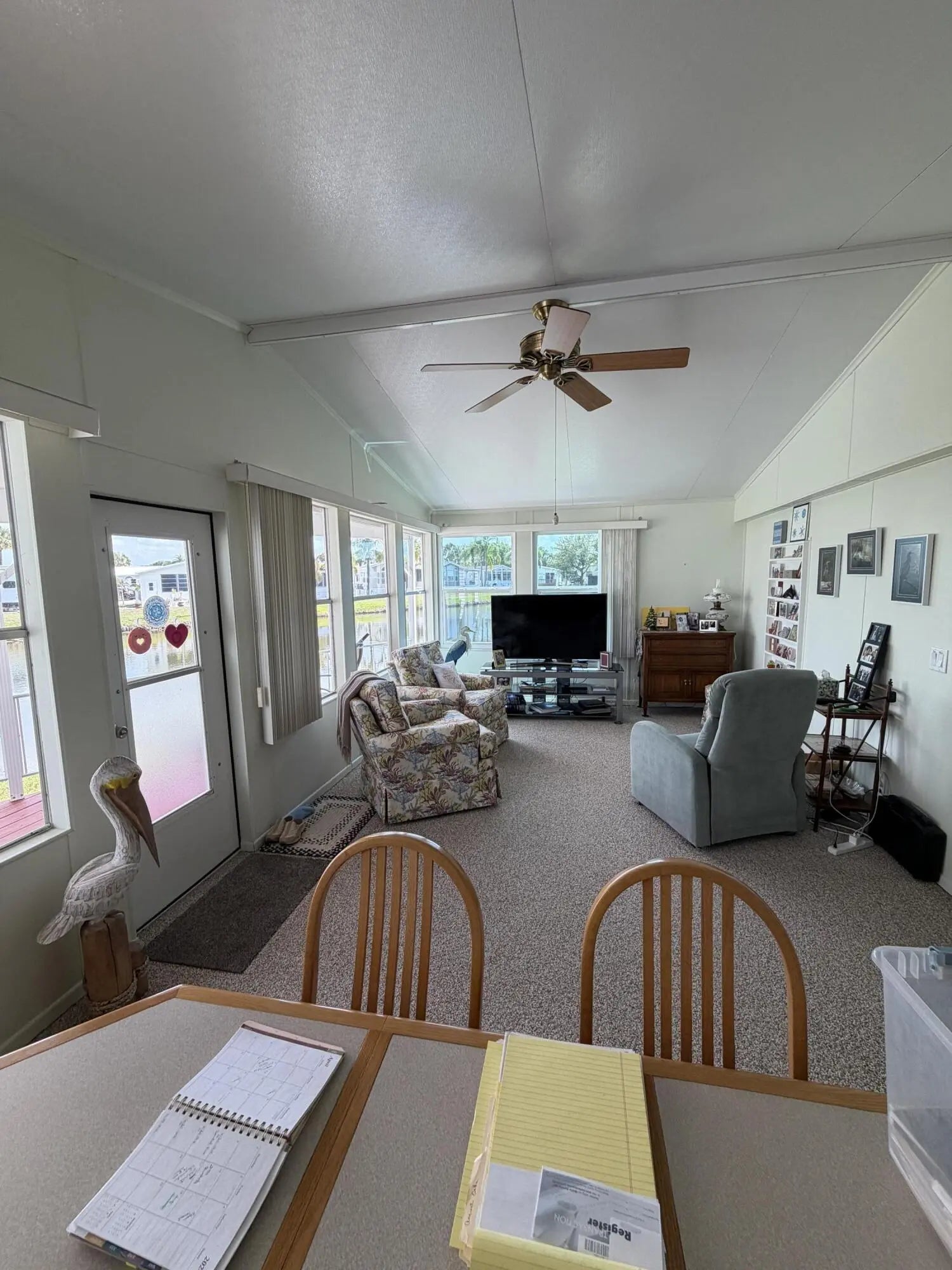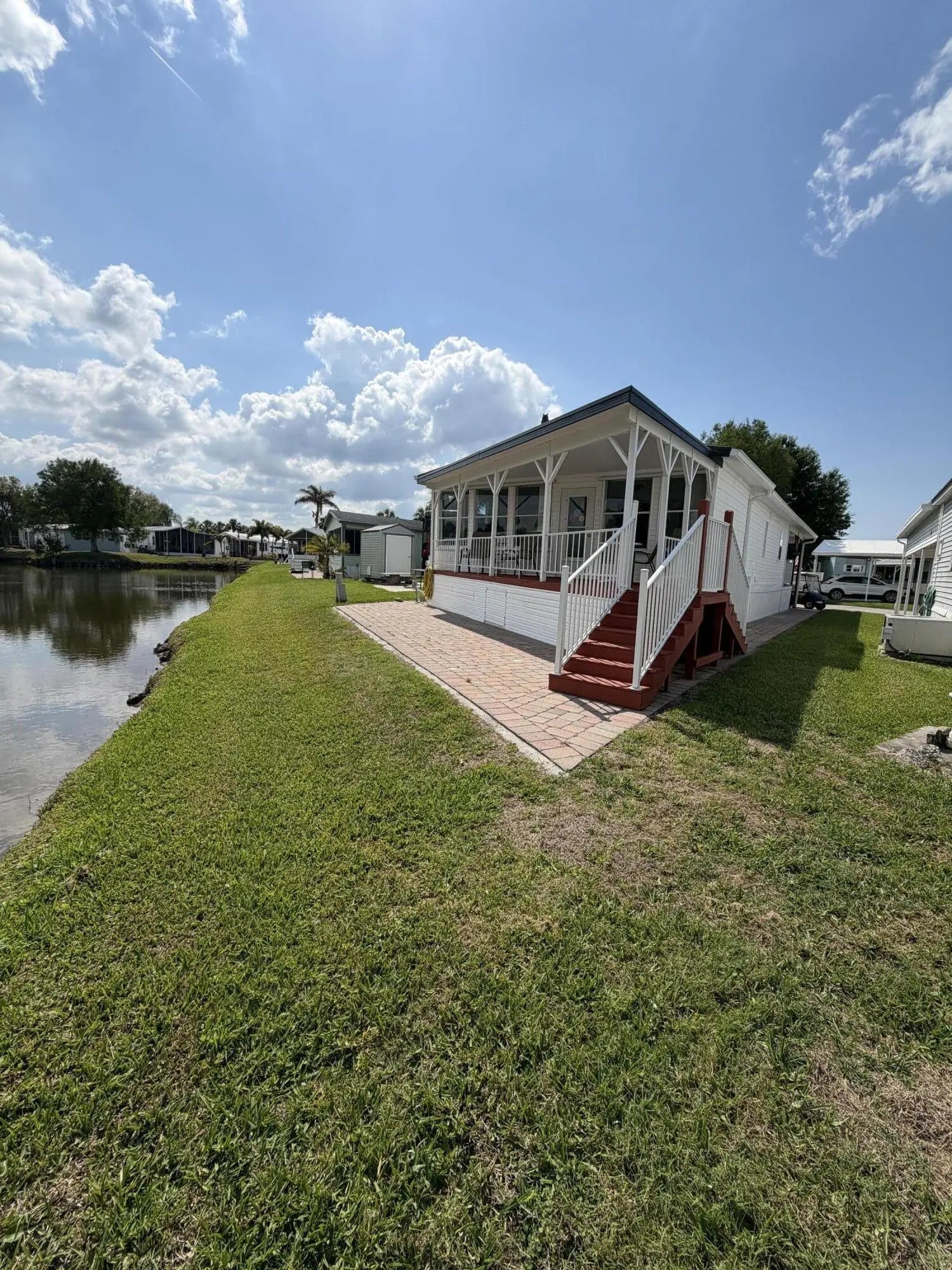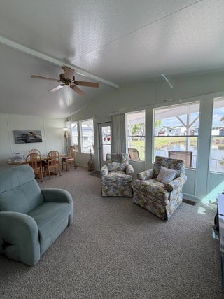 Ancient Oaks RV Resort- Waterfront Living! 55+ Community- Welcome to this pristine 2 Bed 2 Bath MH situated on the pond. This well-maintained home offers comfort, space, and resort living all in one. Enjoy relaxing mornings and evenings on the covered back porch overlooking the water with beautiful pavers. This spacious layout has carpet throughout, ample storage and upgrades including two hot water heaters, reverse osmosis system, and a water softener. New front porch in 2022- covered and has composite deck for easy maintenance and a metal roof. Resort amenities include a heated pool, pickleball courts, shuffleboard, and a marina with a fish cleaning station for the fishermen. Fur babies welcome!