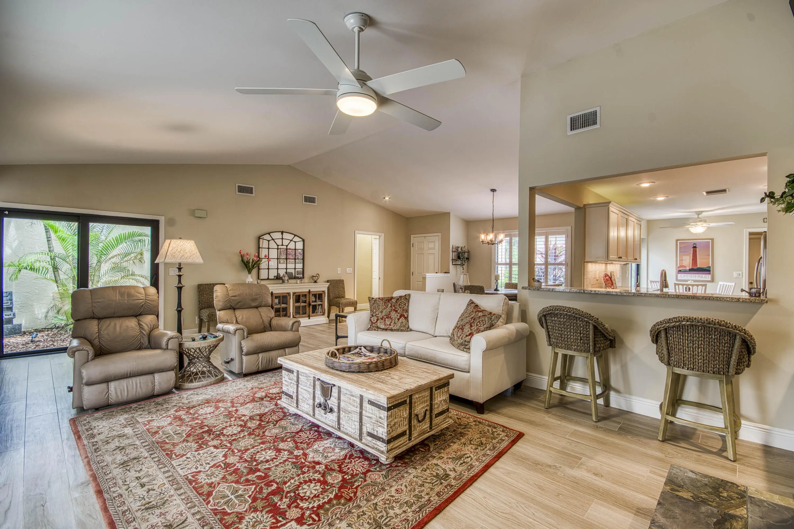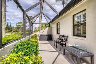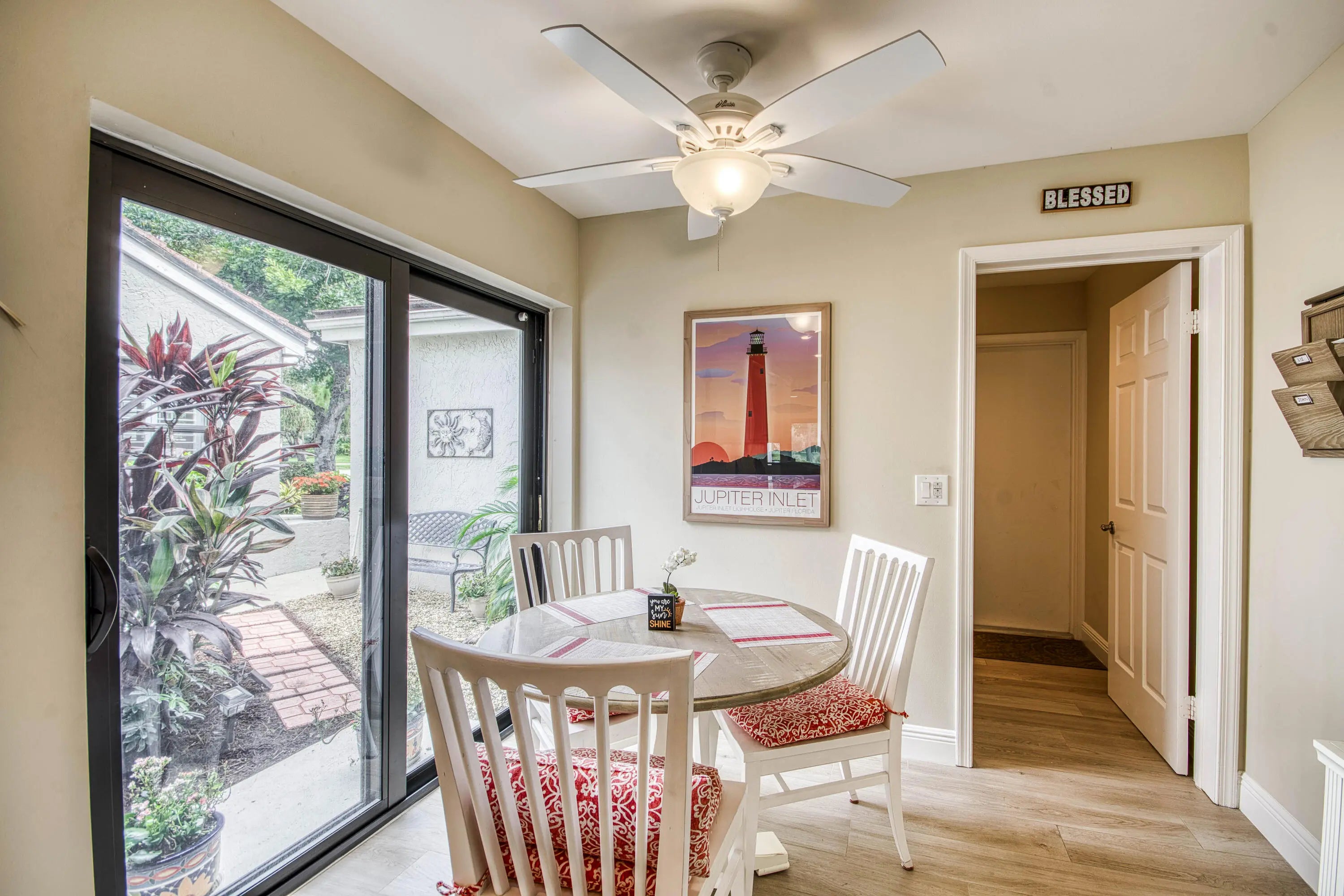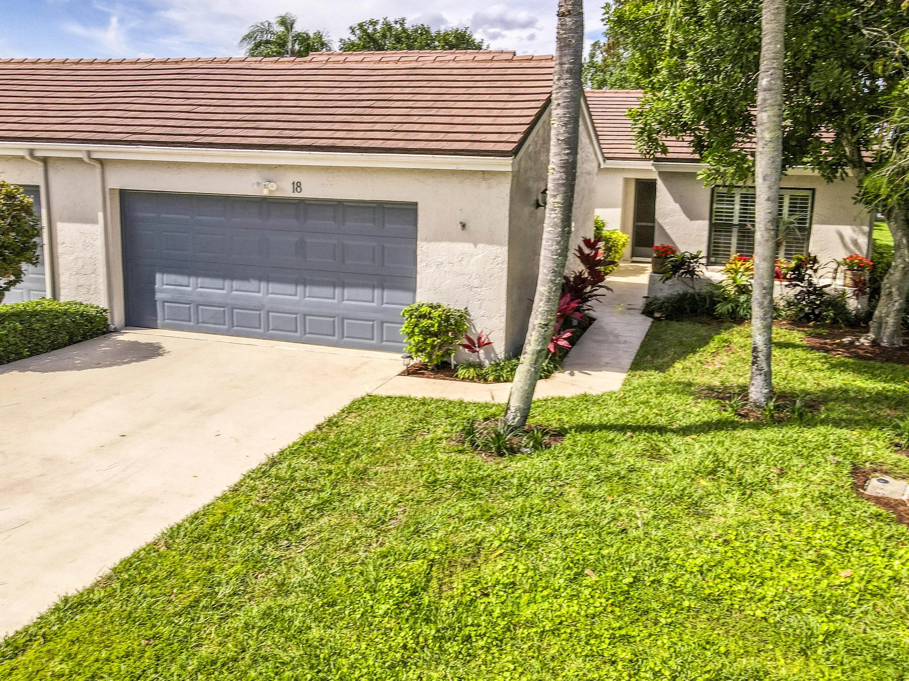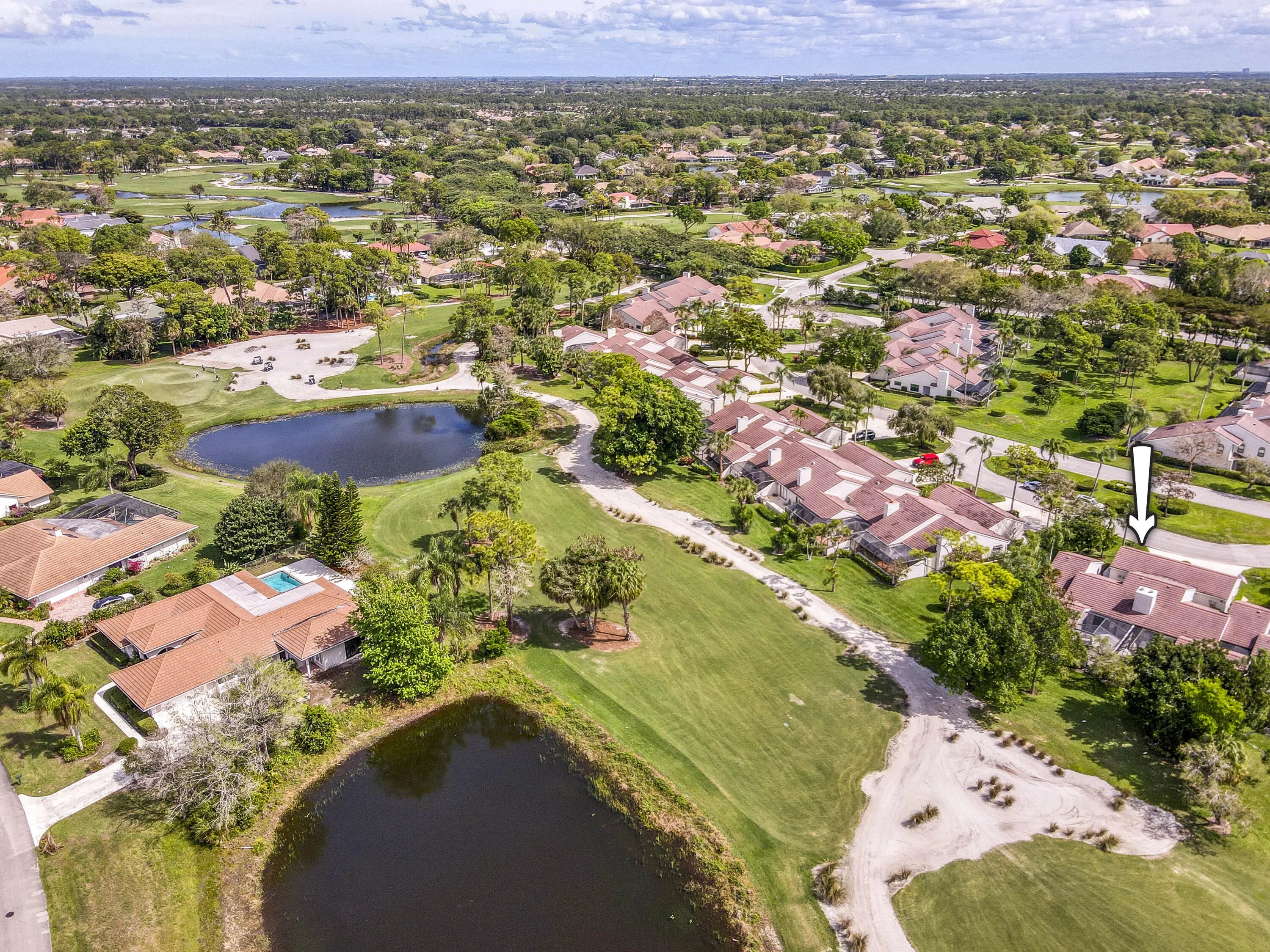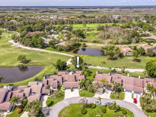 Located in the Townhomes of Marlwood community of PGA National, this well-appointed 3-bedroom, 2-bathroom end-unit townhome offers 1,876 square feet of living space and a 2-car garage, all set against the scenic backdrop of Hole #3 of The Match Golf Course. Designed for comfortable living and effortless entertaining, the open-concept layout seamlessly connects the living, dining, and kitchen areas. Wood-look tile flooring in a light white oak finish and a neutral buff-toned palette create a bright, cohesive feel throughout. The living room is both inviting and functional, featuring a fireplace and custom built-in shelving with additional storage. The kitchen is thoughtfully designed with linen-toned wood cabinetry, granite countertops, and a white-washed brick-style subway tile backsplash, complemented by a suite of stainless steel appliances. A pass-through opening and pull-up seating enhance the connection to the living area, while an adjacent eat-in kitchen space opens to a charming front porch through sliding glass doors. The spacious primary suite offers room for a seating area, along with a walk-in closet and a beautifully updated en-suite bathroom featuring a dual sink vanity with marble-look quartz countertops and a large walk-in shower complete with a rainfall showerhead, handheld fixture, built-in bench, and frosted window for natural light and privacy. Two additional guest bedrooms are generously sized with ample closet space and large windows, ideal for family, guests, or flexible use as a home office. The guest bathroom has also been updated with a glass-enclosed shower featuring floor-to-ceiling tile, a built-in bench, and both rainfall and handheld shower fixtures. Outdoor living is a highlight, with a screened-in patio overlooking the golf course, offering space for both dining and lounging. The back patio is accessible from both the living room and primary bedroom, enhancing indoor-outdoor flow. In addition, a central atrium/patio off the living room, complete with a palm tree, creates a unique and tranquil space ideal for plants or a fountain. Additional outdoor areas include a front entry porch and a private side patio, providing multiple options to enjoy the Florida lifestyle. Notable updates include impact windows (2021), as well as a new A/C system and water heater (2024), providing added value and peace of mind. Additional features include a whole-house water system with reverse osmosis filtration in the kitchen, plantation shutters on all windows and most sliding doors, and an epoxy-coated garage floor. With its desirable location, thoughtful updates, and flexible layout, this property is an excellent opportunity for full-time living, seasonal enjoyment, or investment potential.
