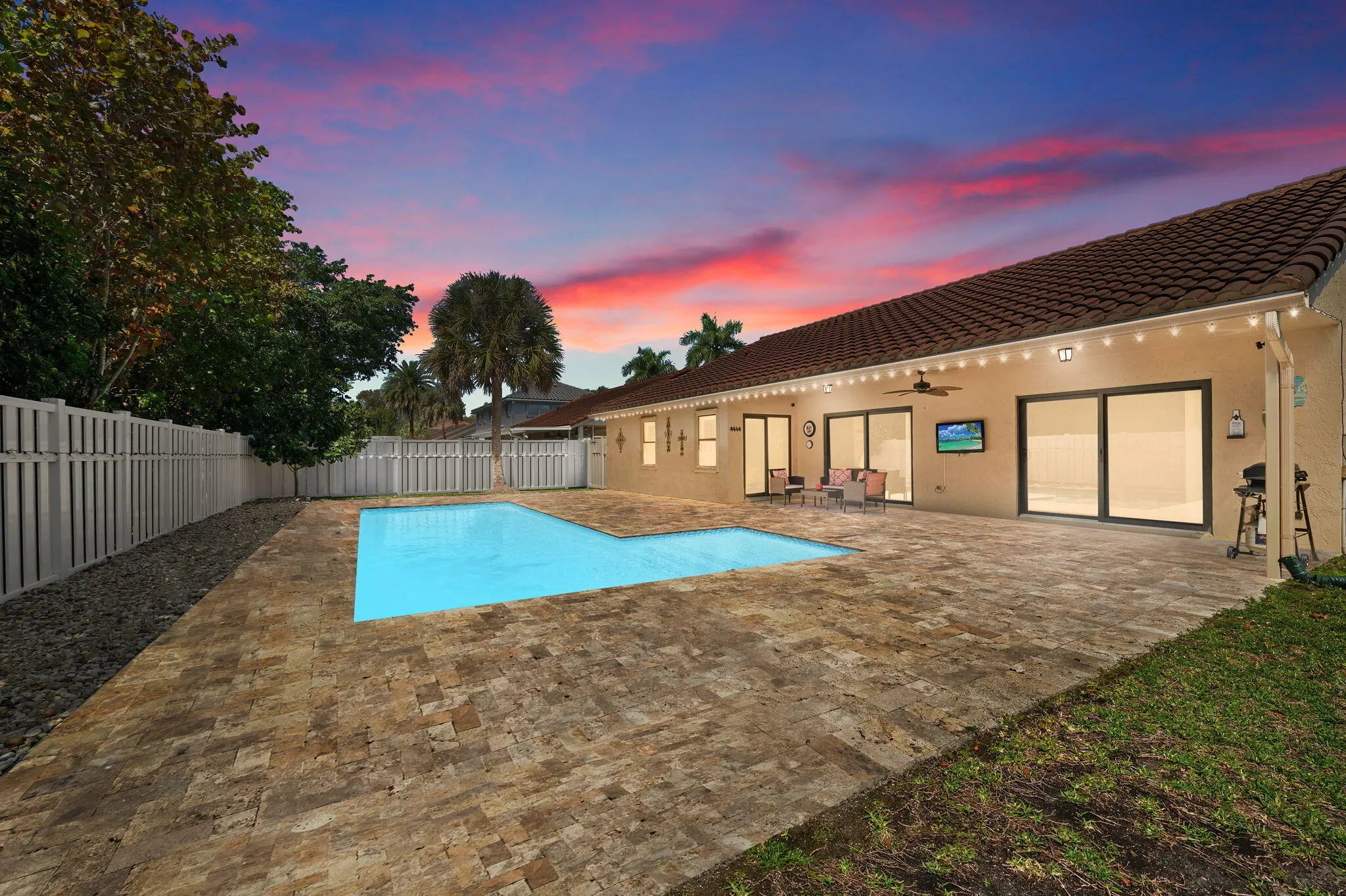 Rarely available 3/2 single family pool home located in the sought after neighborhood of TALL TREES. This home features a new build pool and decking (2023). Large backyard w new white composite fencing ensuring privacy. All Impact windows and sliding glass doors. Roof 2013, AC 2022, water heater 2018. Kitchen opens to family room and features new stainless steel appliances 2025 and granite countertops. Great neighborhood with only 99 homes and low HOA fee of $65.00 per month! Located across the street from prestigious North Broward Preparatory School. Minutes to I-95, Fl Turnpike, Boca Raton and the award winning Deerfield Beach and pier. "A" rated schools.