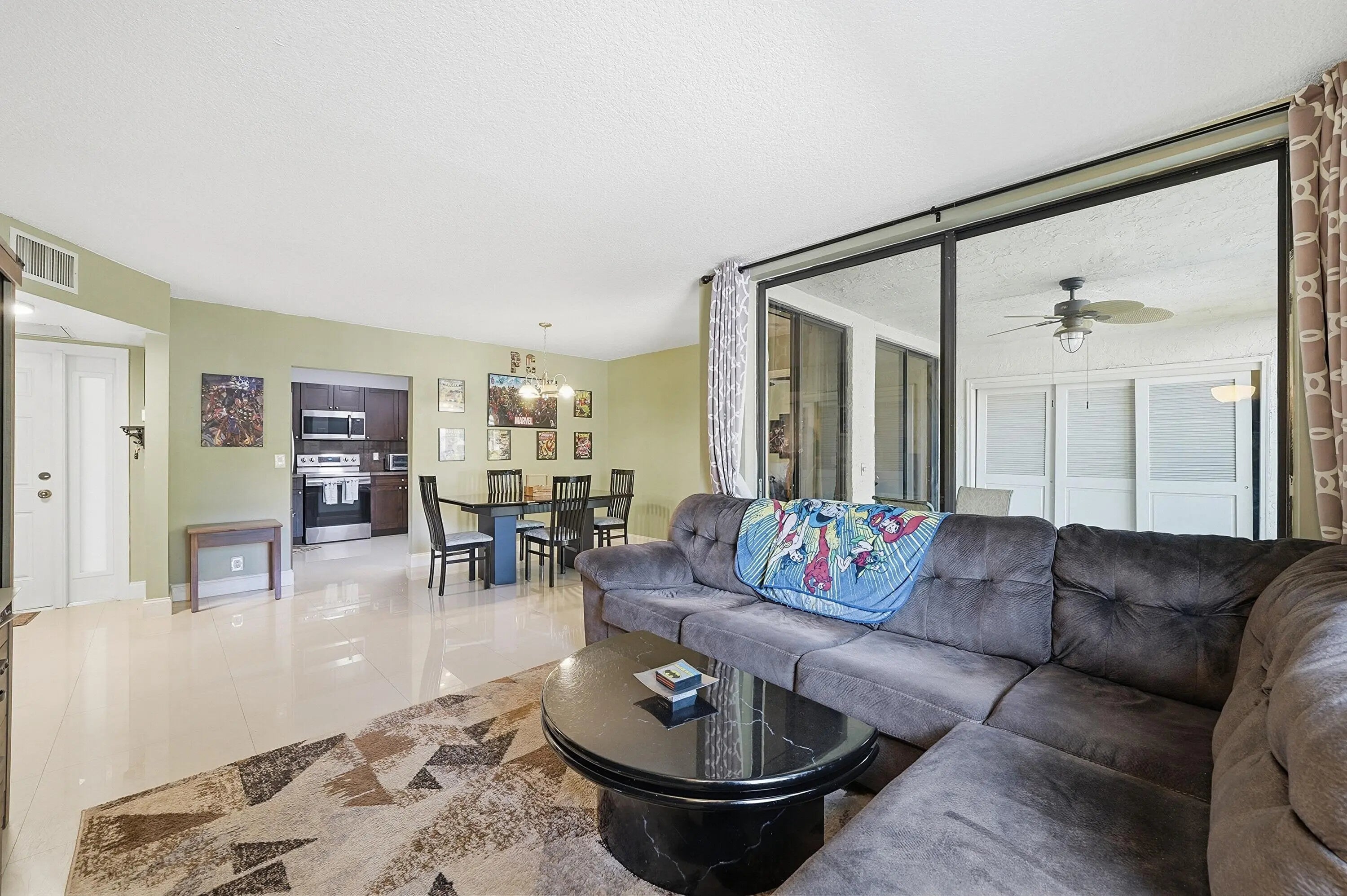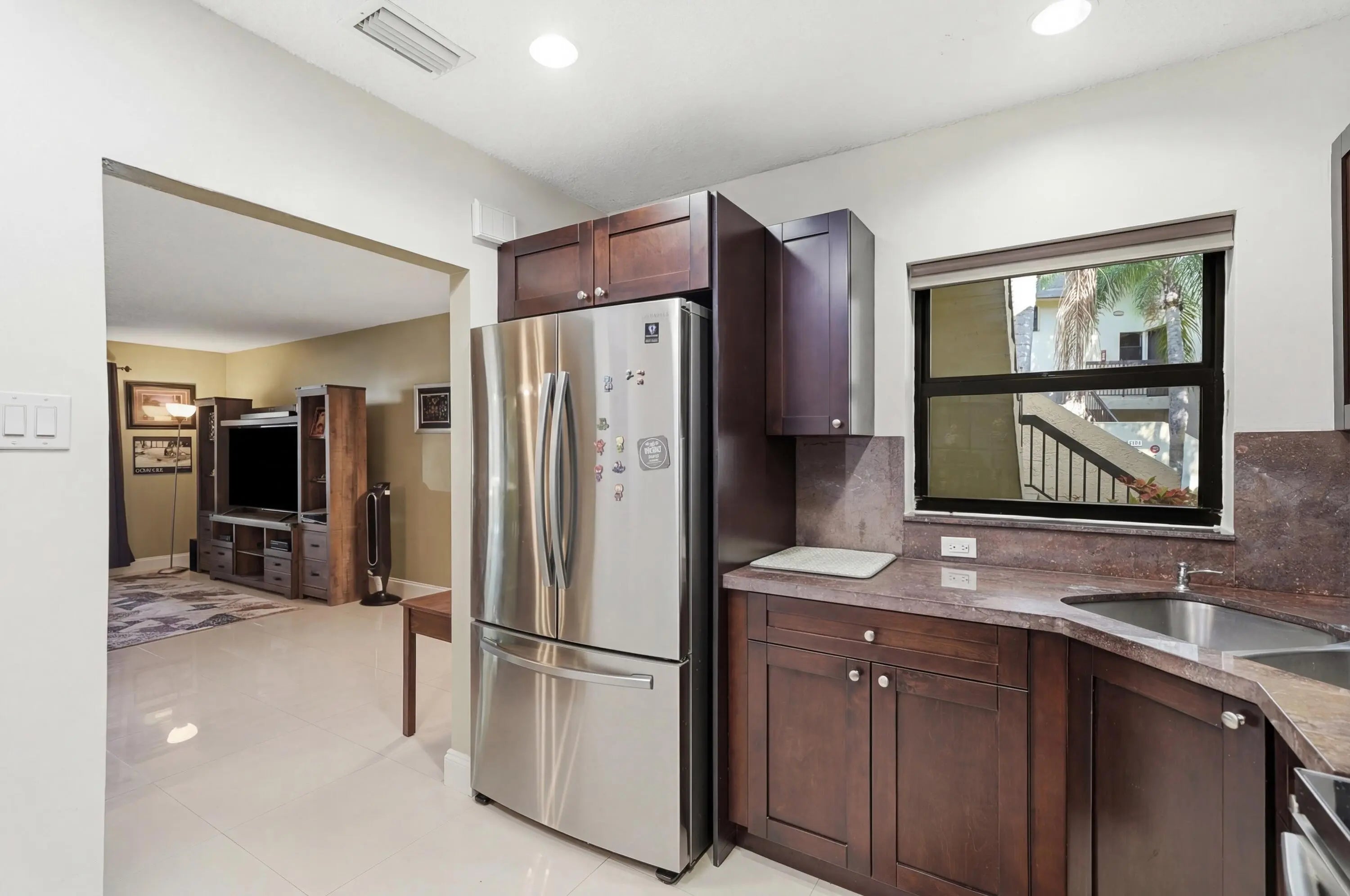 Beautifully updated unit featuring a clean, modern finish with no popcorn ceilings and elegant 24x24 tile flooring throughout. The kitchen is appointed with rich mahogany shaker cabinets, granite countertops, and stainless steel appliances, offering both style and functionality. Major upgrades completed in 2021 include all hurricane impact doors and windows, a new electrical panel, as well as a new A/C system and water heater for peace of mind. This well-maintained, owner-occupied community does not allow rentals and requires a minimum of 12% down per HOA guidelines, with a solid budget in place. The unit also comes with a conveniently located parking space nearby, adding to the overall ease and comfort of living.