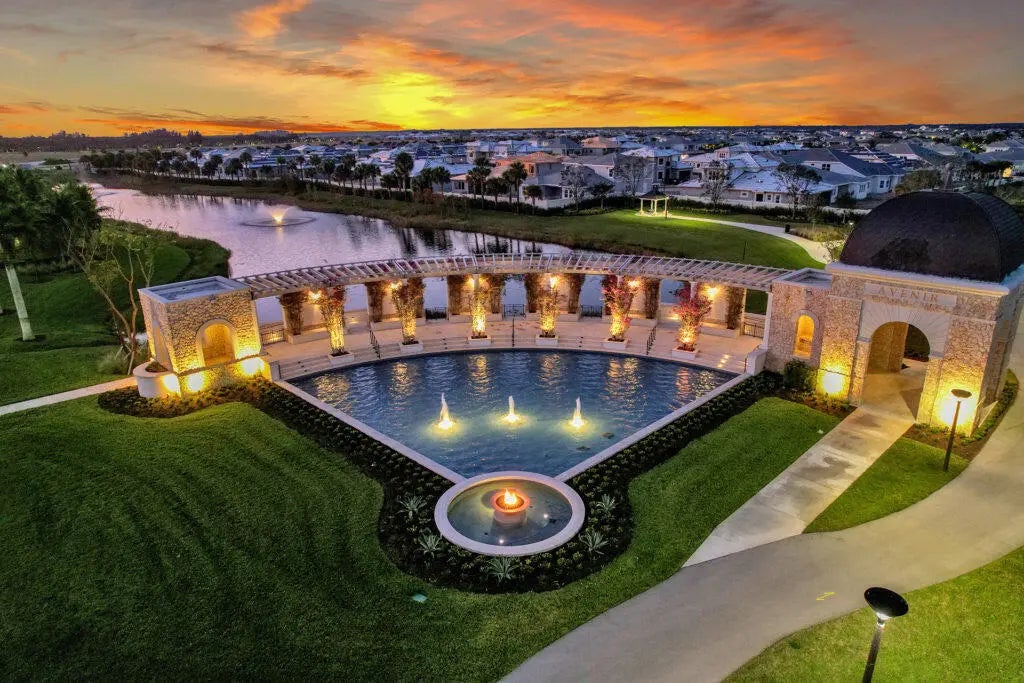 Pack your bags—this stunning Isabella Model is move-in ready and loaded with high-end designer upgrades. Offered furnished for a nominal additional cost, this home is truly turnkey. A grand foyer with a coffered ceiling and wood-look porcelain tile flooring sets the tone, flowing throughout the open-concept layout. The great room features a custom built-in wall unit and gas fireplace, while the gourmet kitchen offers stacked cabinetry, ample workspace, and a custom walk-in pantry—perfect for entertaining. Guest bedrooms share a dual-access bath with separate vanities for added comfort and privacy. The expanded primary suite is a private retreat with double-door entry, dual custom closets, and a spa-like bath with soaking tub, walk-in shower, and private water closet. Enjoy outdoor living on the extended covered lanai with a built-in bar, kegerator, and pre-plumbing for a future kitchen. The backyard oasis boasts a resort-style lap pool, spa, and fire pit—ideal for relaxing or entertaining.
