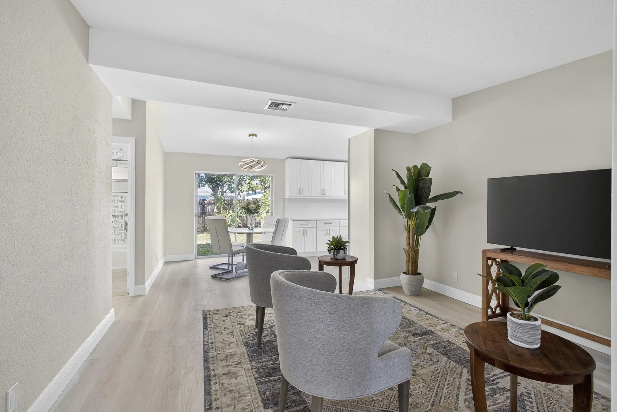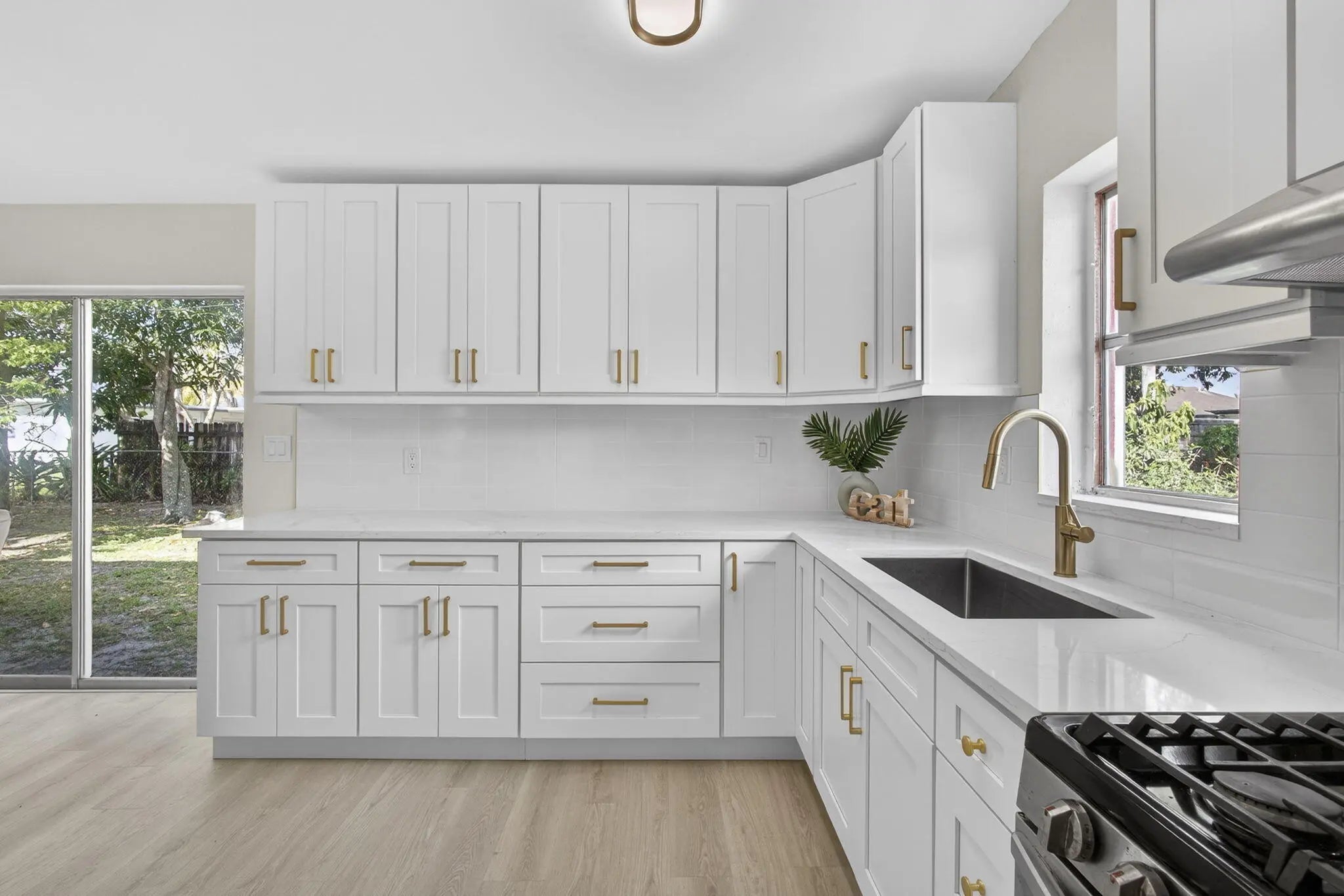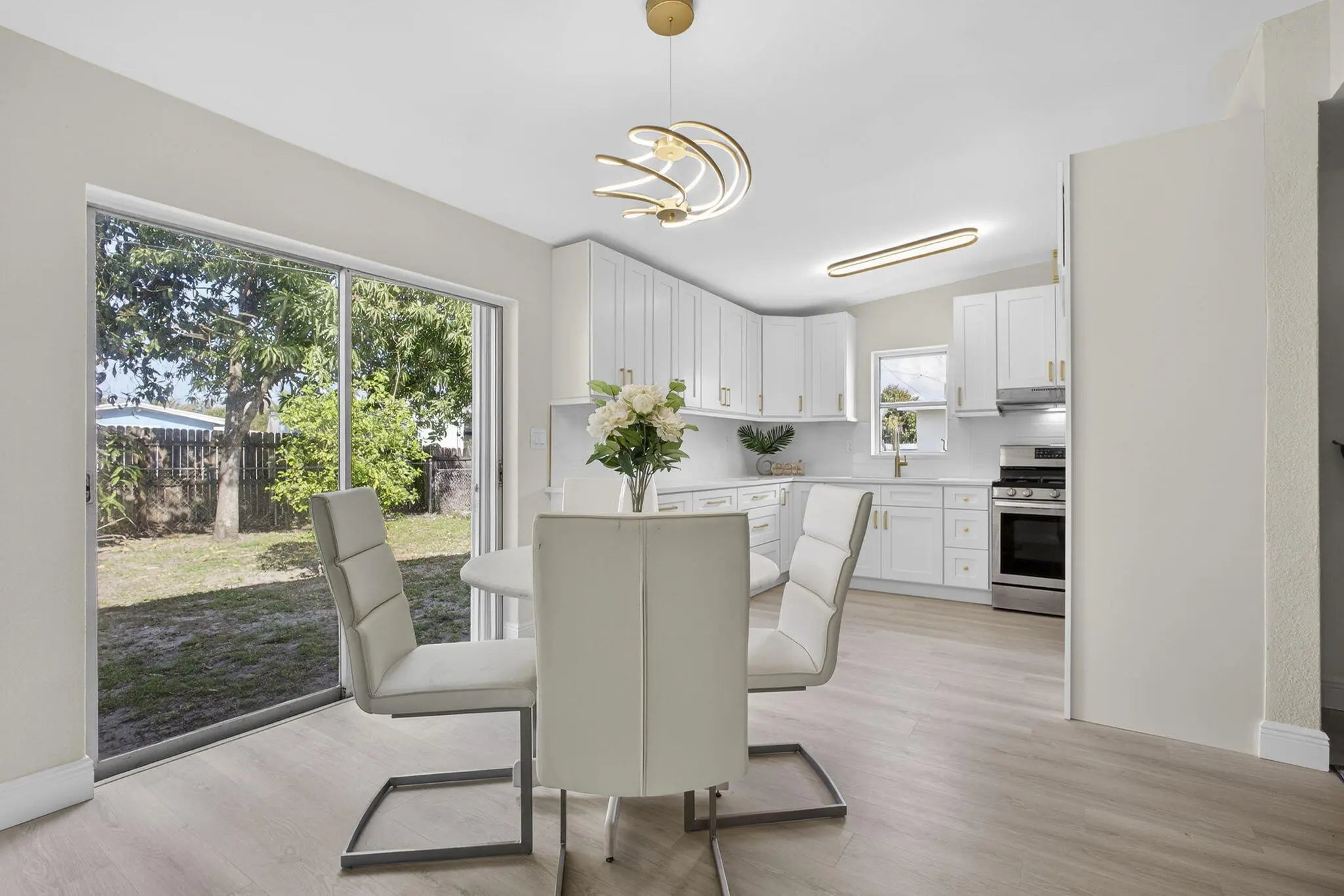 Renovated single-family home located in a desirable West Palm Beach neighborhood with no HOA. 3 bed 2 bath and a covered screened porch with large driveway. Recent upgrades include brand new kitchen with quartz, new fridge (arriving soon), a newer A/C system, accordion shutters, new flooring and just freshly painted. Large backyard for all your toys like a boat, trailer, RV. Gas in the houe Conveniently located near major roads and i95, shopping, dining, and schools, close to PBI.
