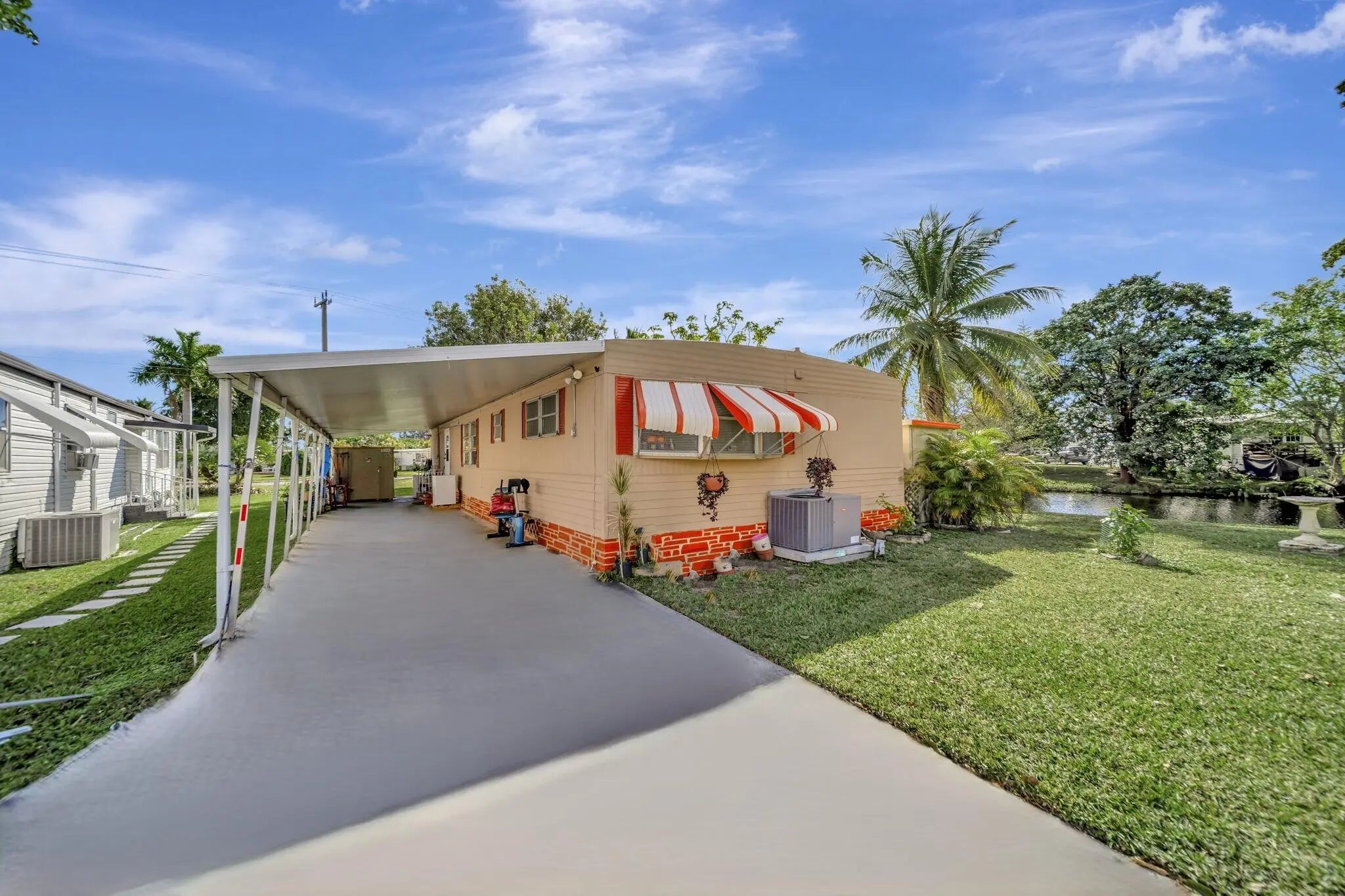 Beautiful 2-bedroom, 2-bath manufactured home located in the desirable Everglades Lakes community. This freshly painted residence offers a very spacious layout filled with natural light. Enjoy breathtaking canal views with grand fountain—views truly make this home special. Start your mornings and unwind in the evenings listening to the soothing sound of the fountain, surrounded by lush, tropical landscaping that creates a peaceful getaway oas. The home features a two-car carport, storage shed, ample storage space, and a screened-in patio perfect for relaxing or entertaining. Ideally located close to restaurants and shopping, and just 5 minutes from Airport, making commuting and travel effortless. Community amenities include a clubhouse with billiard room, fitness center, Bocci