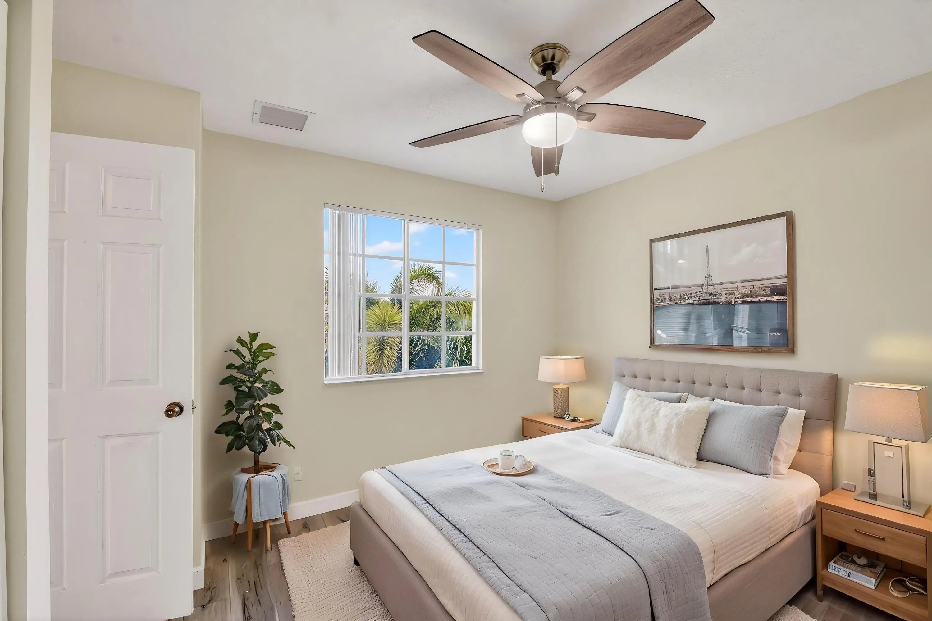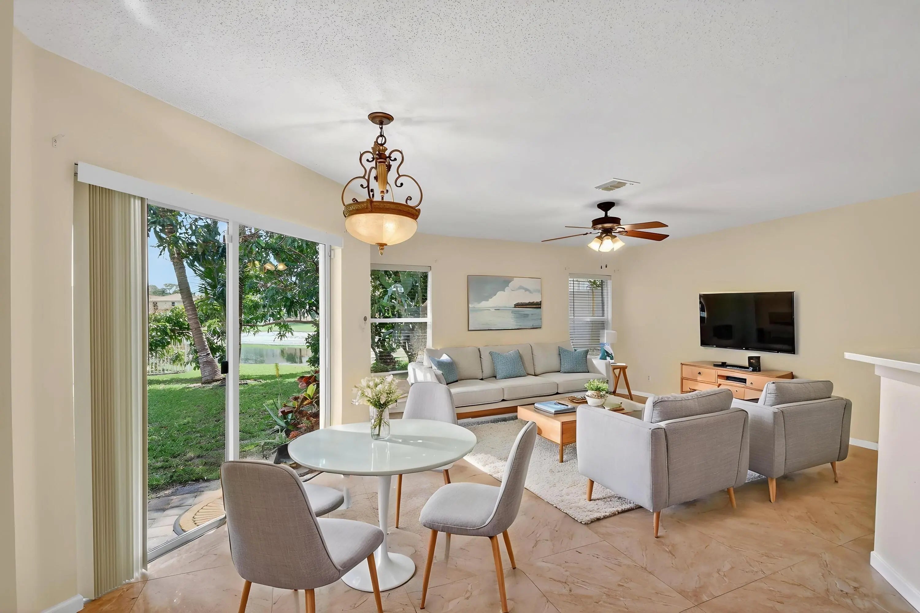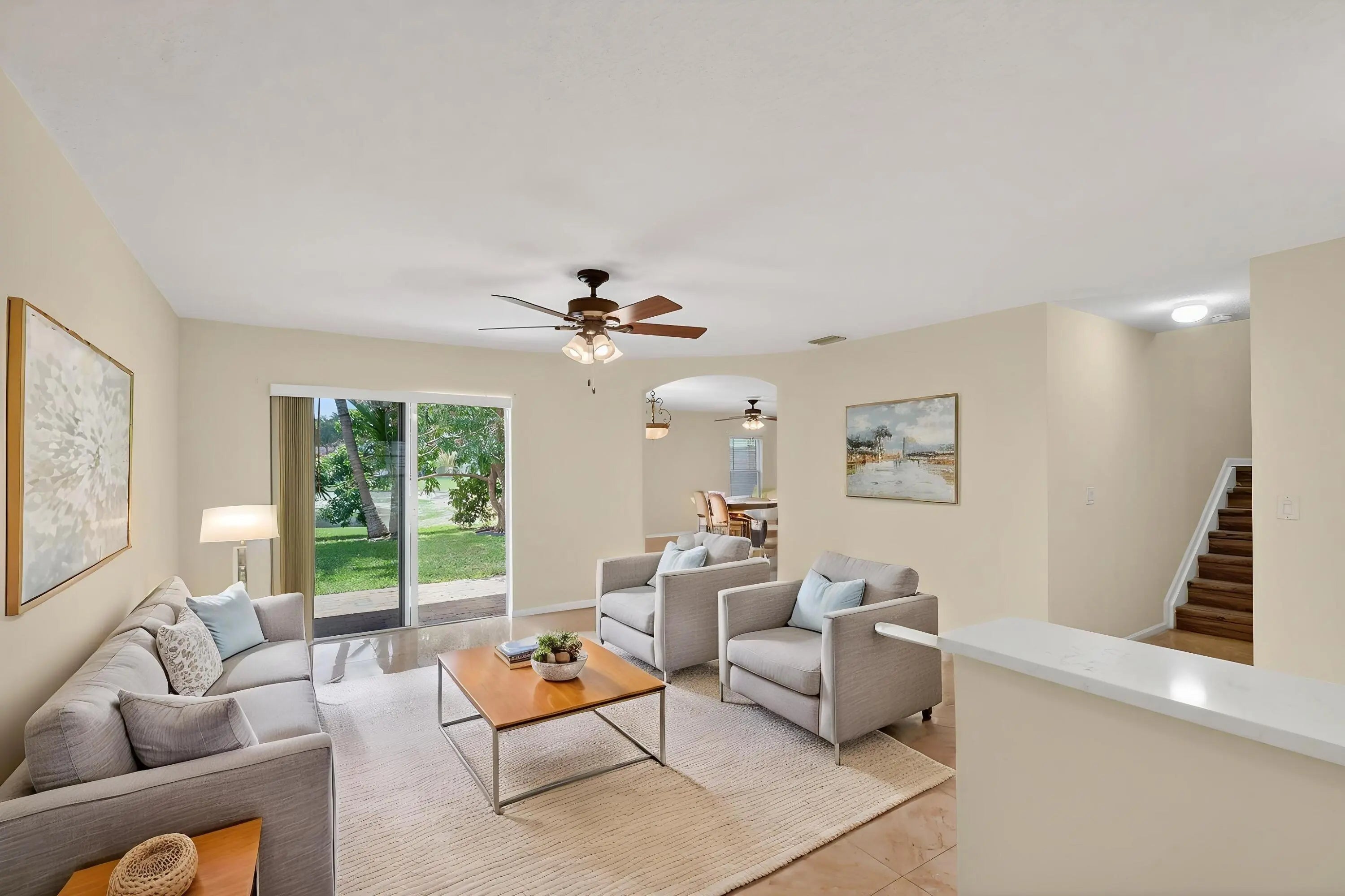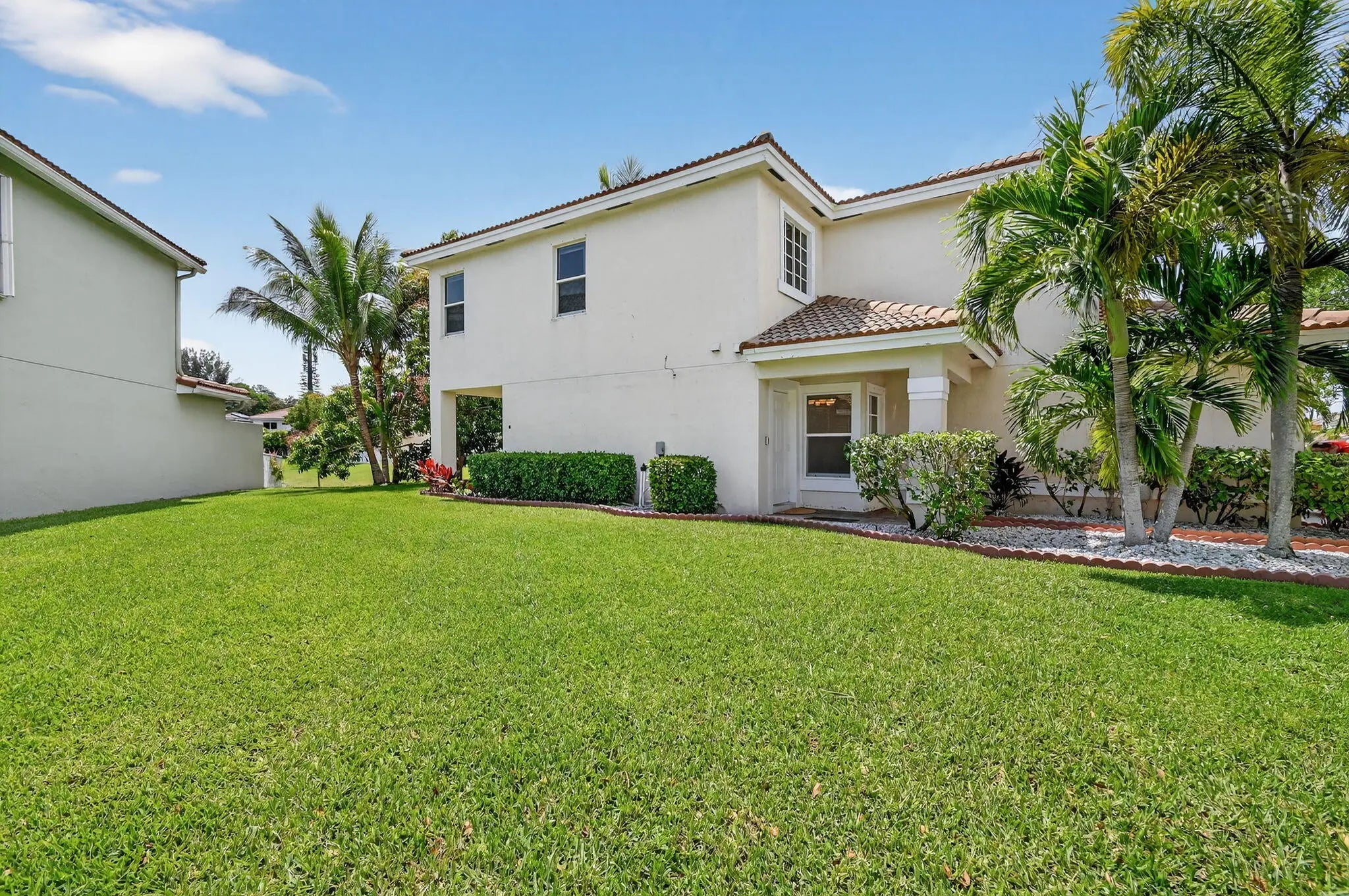 Beautiful 2 Story, 4-bedroom, 2.1-bath home on a desirable corner lot with serene lake views from the living areas and primary bedroom. The open-concept kitchen features new quartz countertops, stainless steel appliances, and a pantry—perfect for everyday living and entertaining. Tile flooring runs throughout the first level, with new laminate flooring on the staircase and entire second floor, including all bedrooms. The primary suite offers a spa-like bath with a separate shower and soaking tub. Quartz countertops have also been added to the second full bath and half bath for a clean, modern feel. Enjoy a private backyard with mature avocado, coconut, and mango trees. Landscaping, basic cable, and internet are included for added convenience!